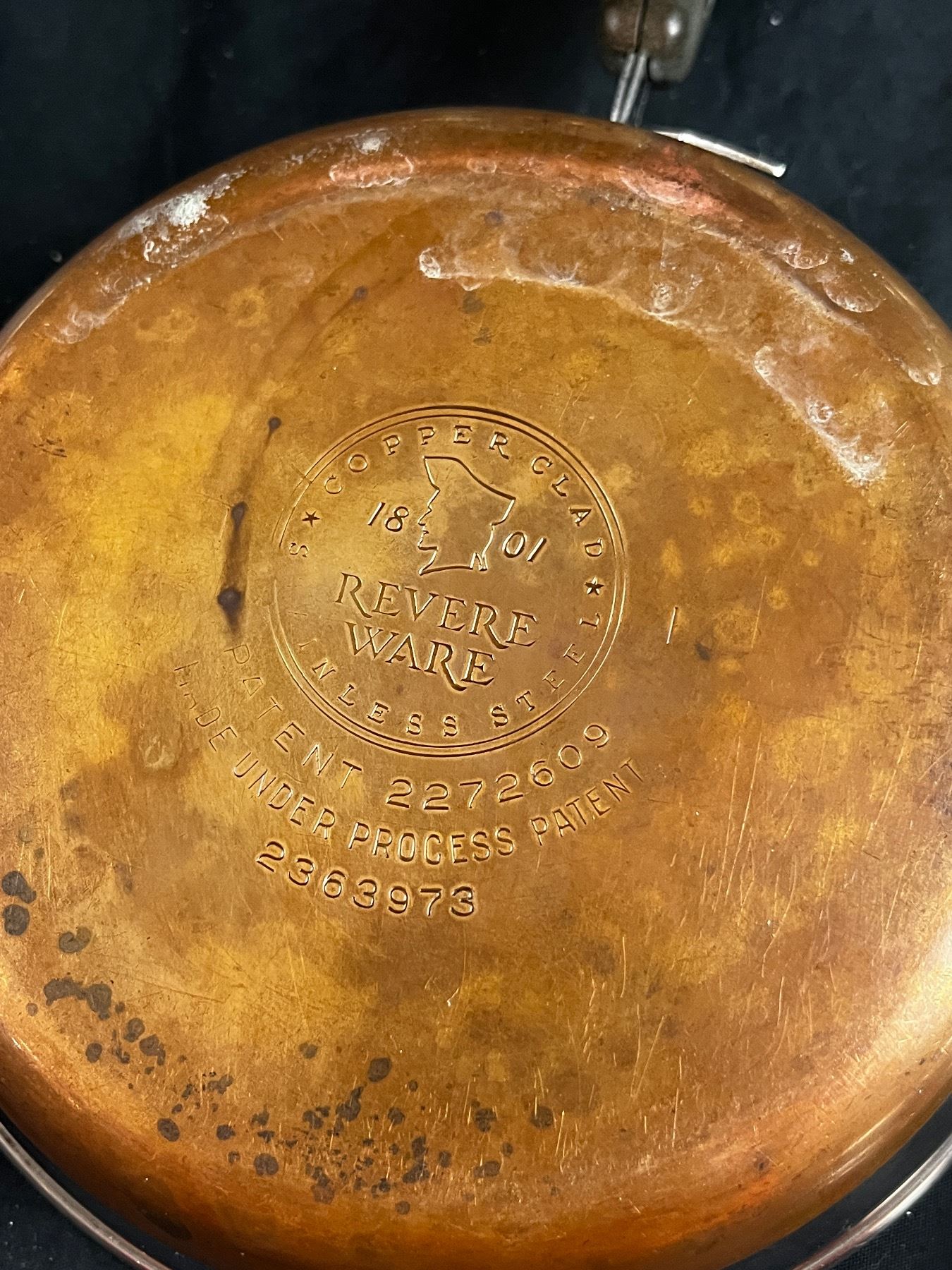 7 total inc. 1 Revere Ware Copper Clad, used condition