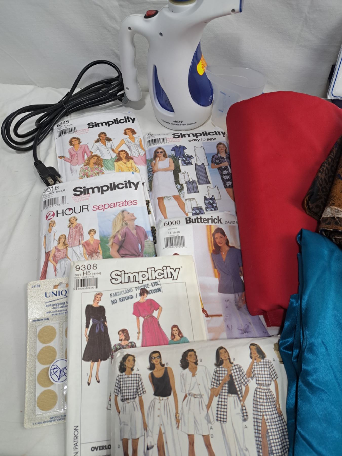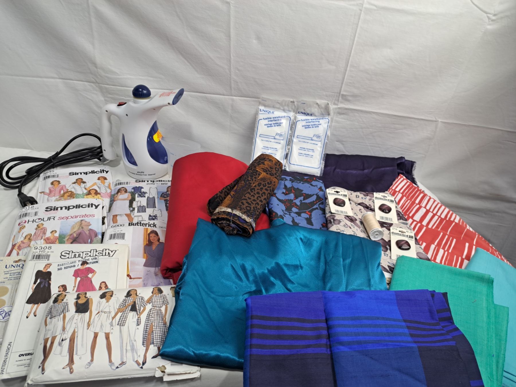 Includes Shift Portable Steamer, Assorted Fabrics (Sizes Unknown) Patterns & More