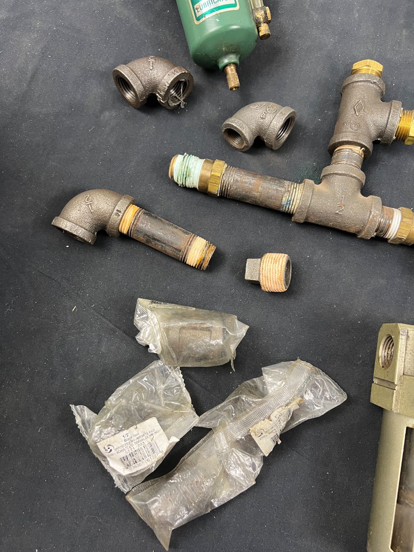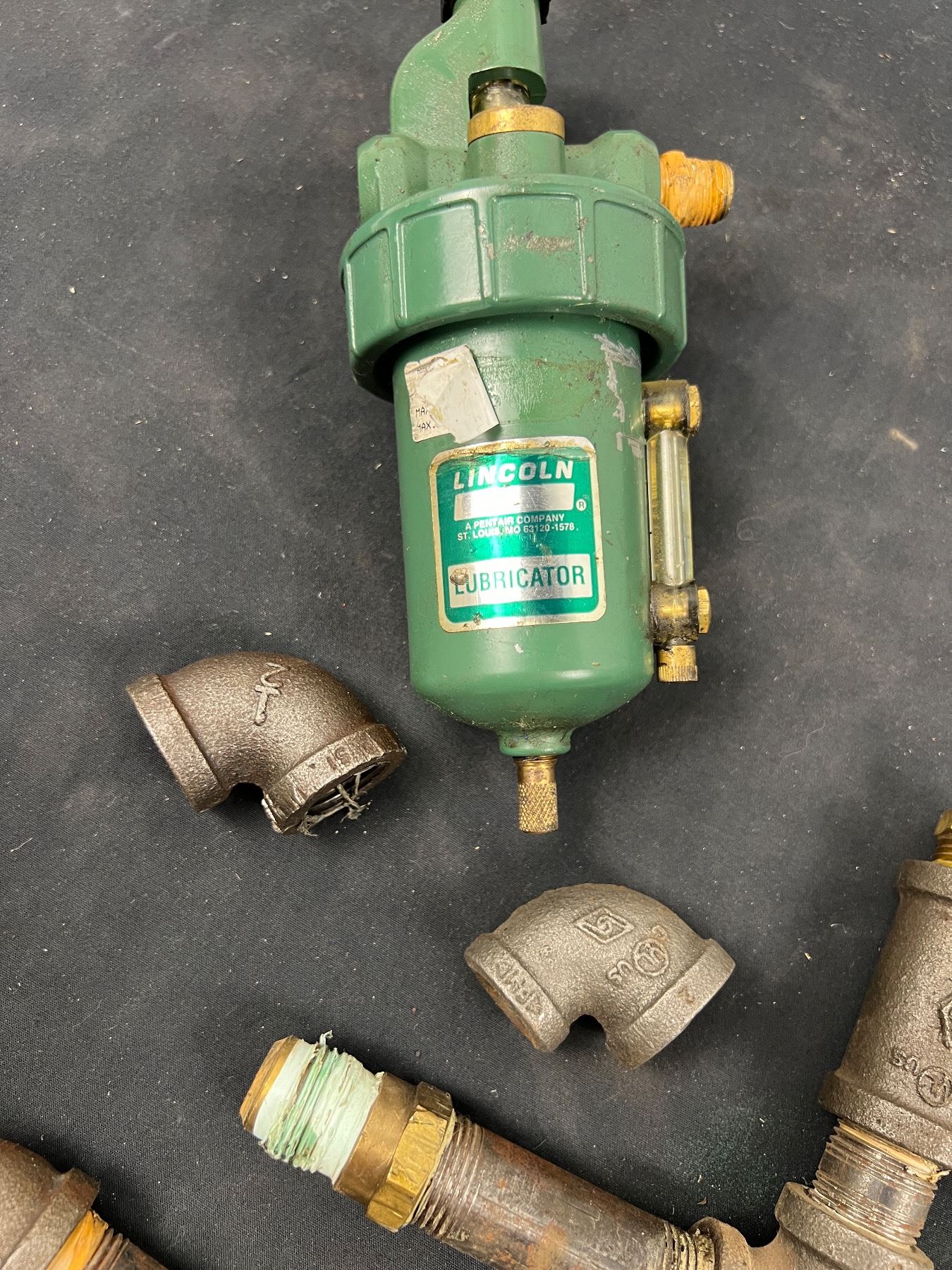 Includes 1/2" Black Pipe Tees, Nipples, Coupling, Air Filter, Lincoln Lubricator & Air Regulators
