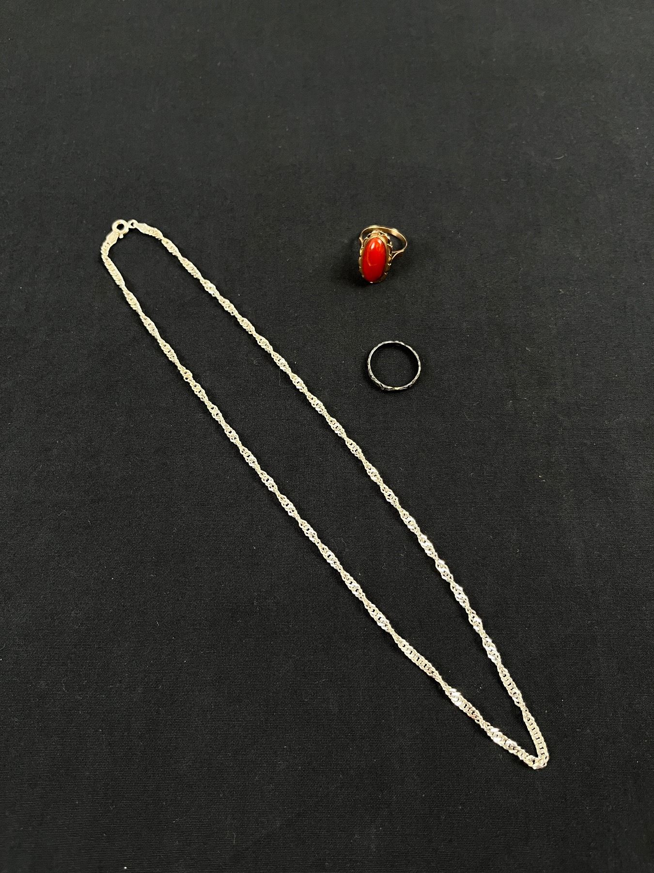 Includes 1 Ladies 8k Gold Ring with Stone (2.9g with Stone) Size US 5.5, Sterling Silver Necklace 5.9g & Ladies Sterling Ring (1.3g) Size US 5.5