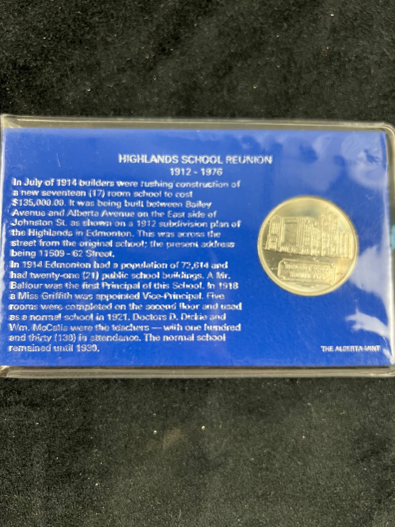 Includes BC Transit Commemorative Tokens, Oil Sands Medallion & 2 Highlands School Reunion Medallions