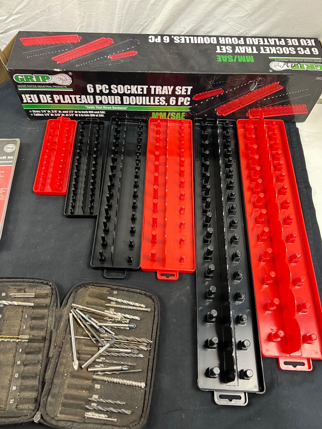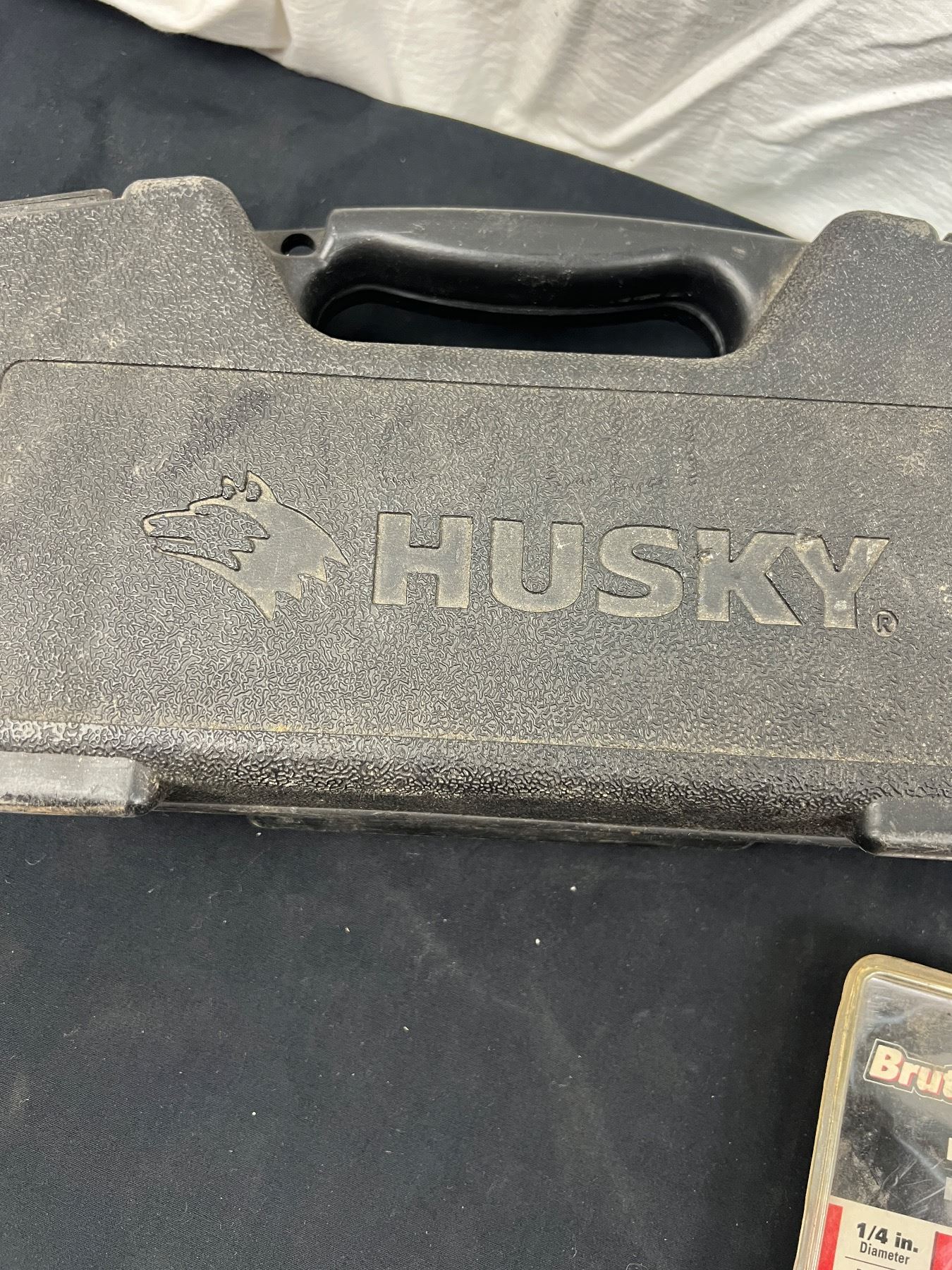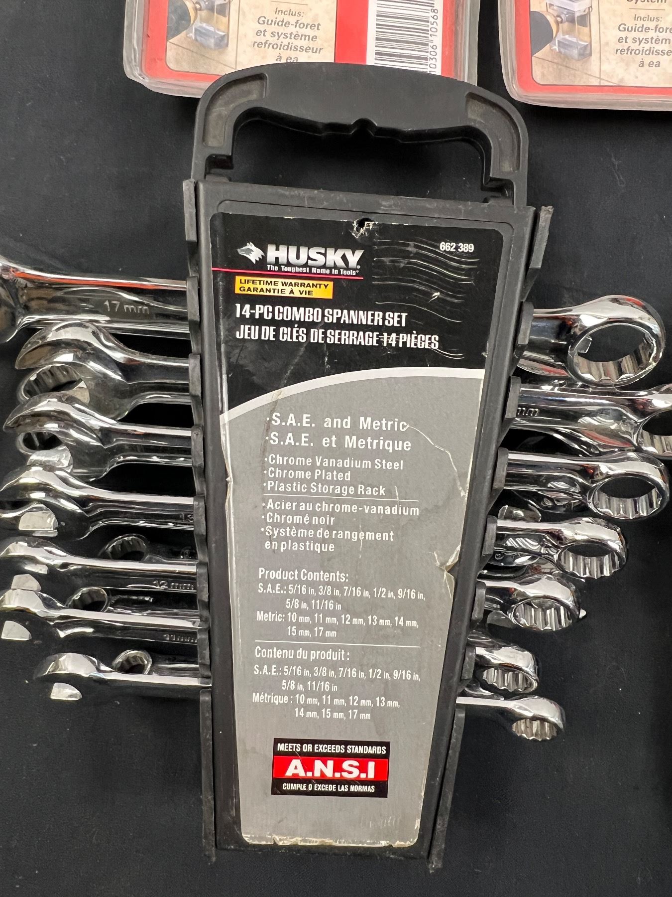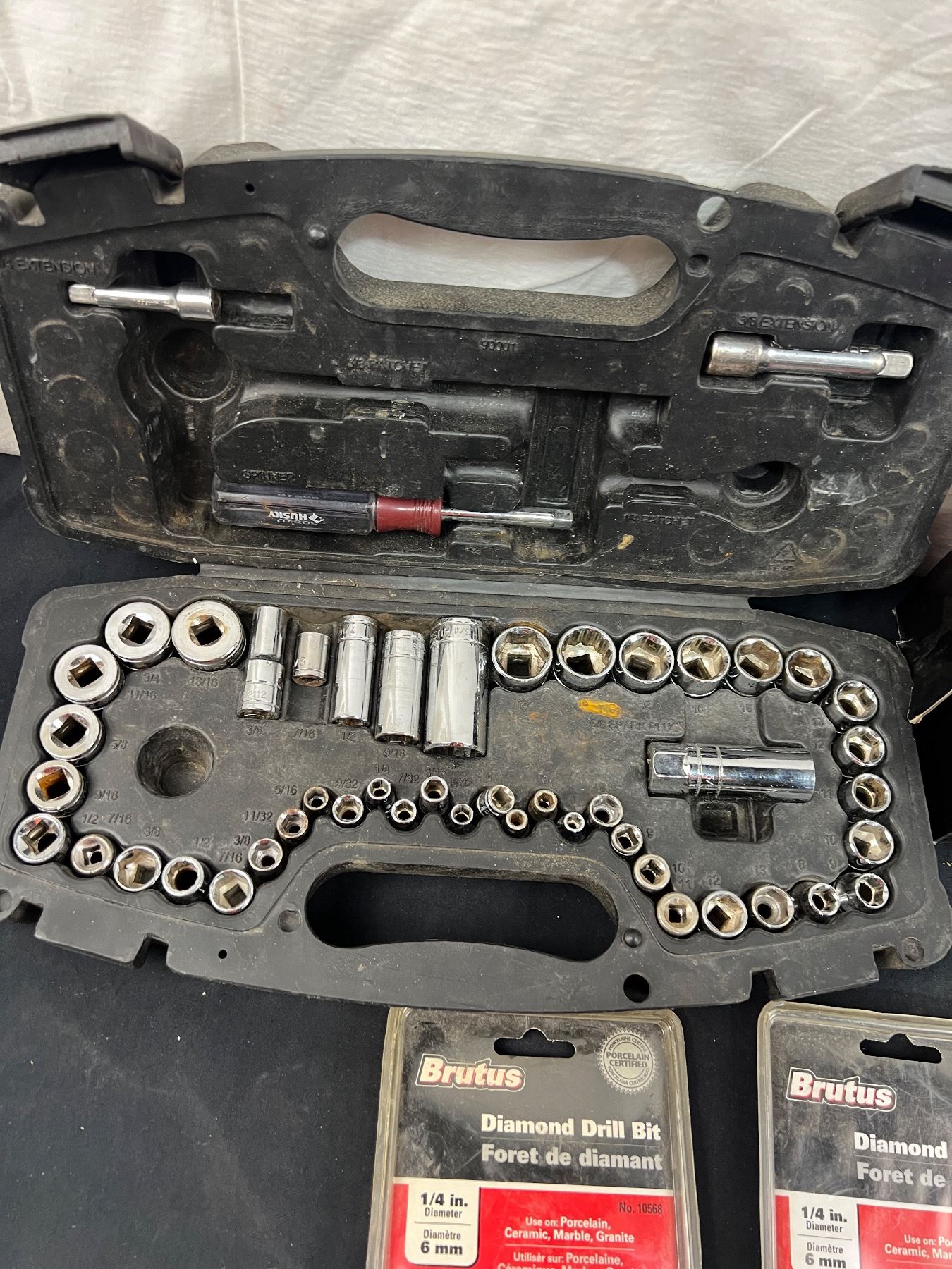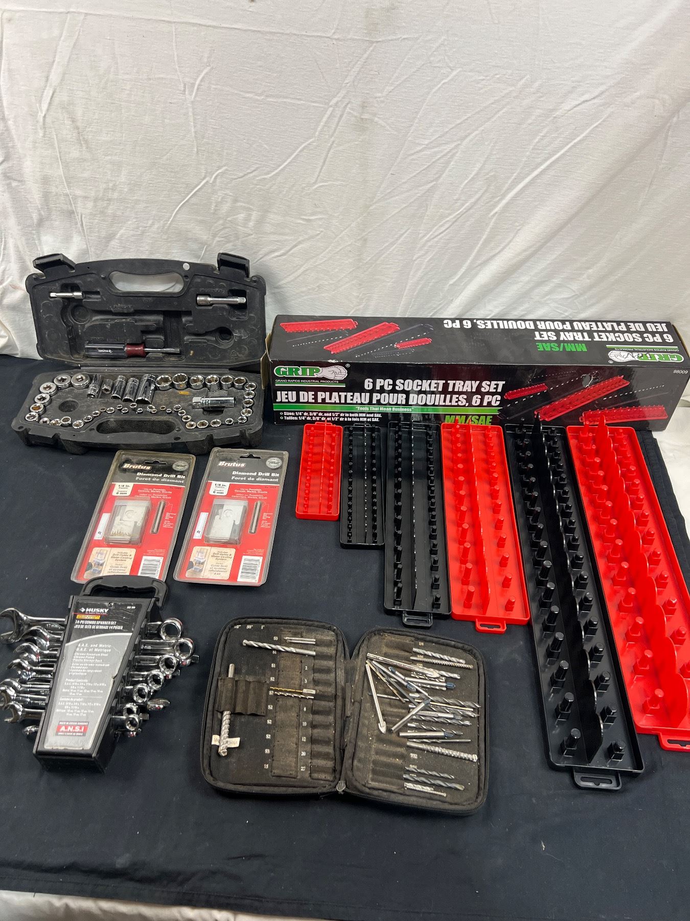 Includes 6 Piece Socket Tray Set, 14 Piece Spanner Set, Husky Socket Set Ass Seen in Pictures, Brutus Diamond Drill Bits