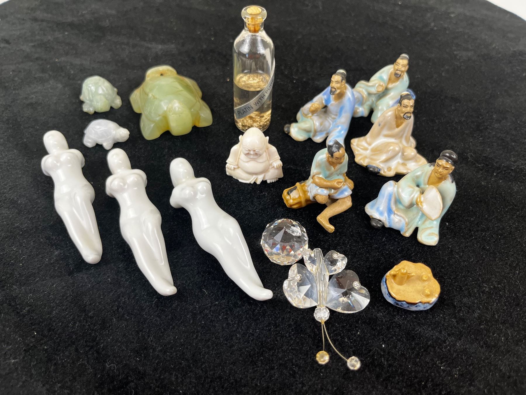 inc. Some ceramic and stone carvings, butterfly is broken off of base, 15pcs
