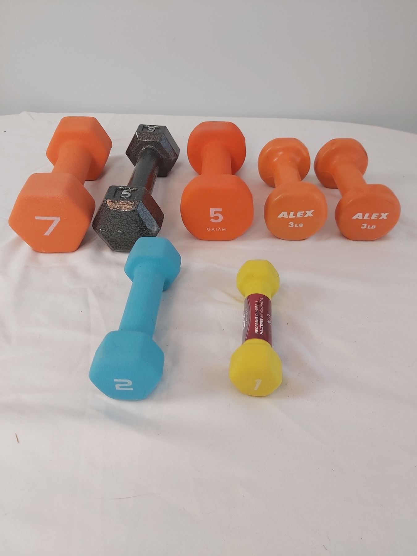 Includes 1-7lbs dumbells