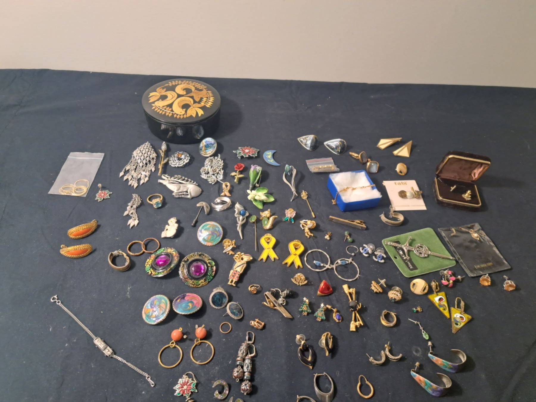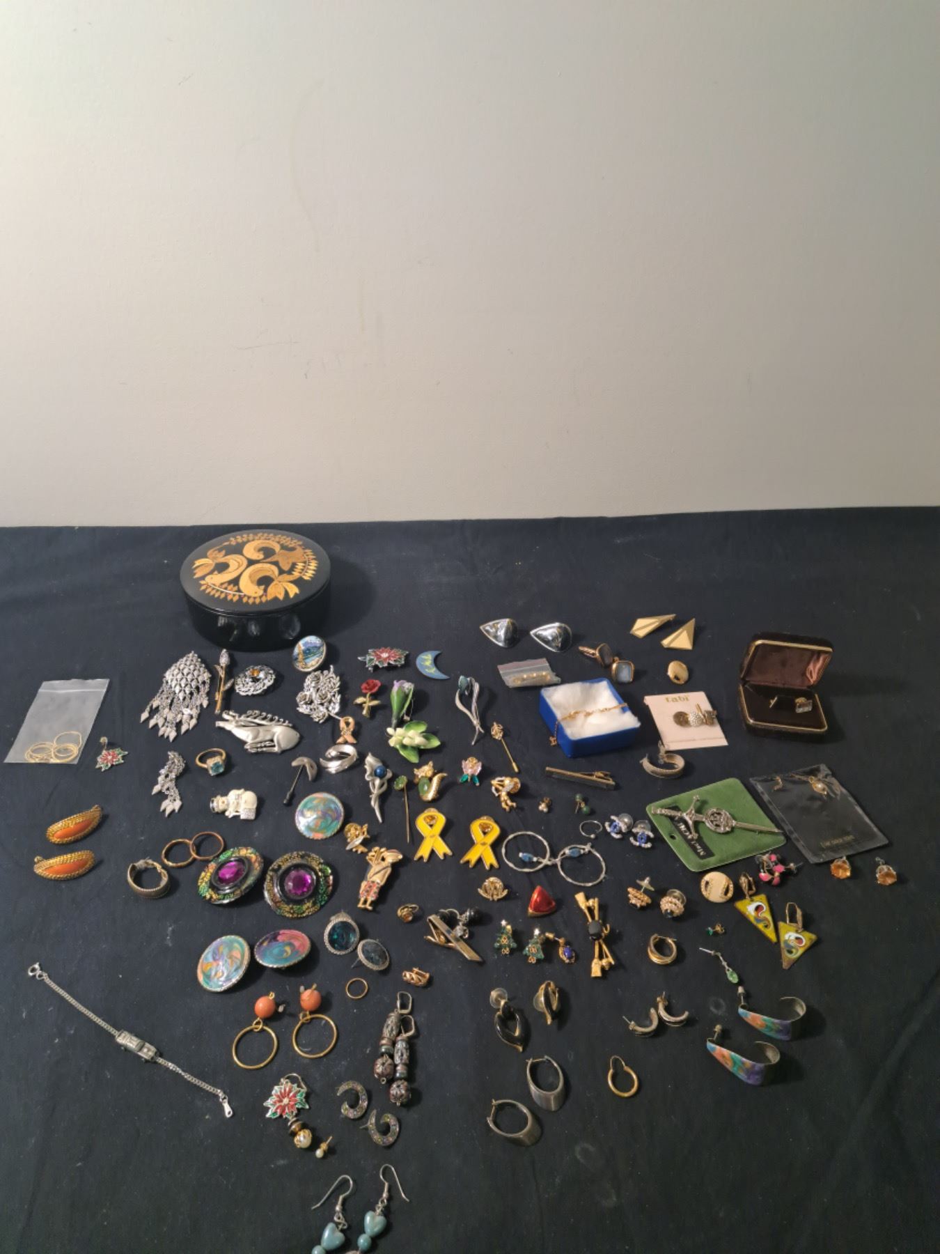 includes broaches, earrings, necklaces tie clips, not all earrings are in pairs