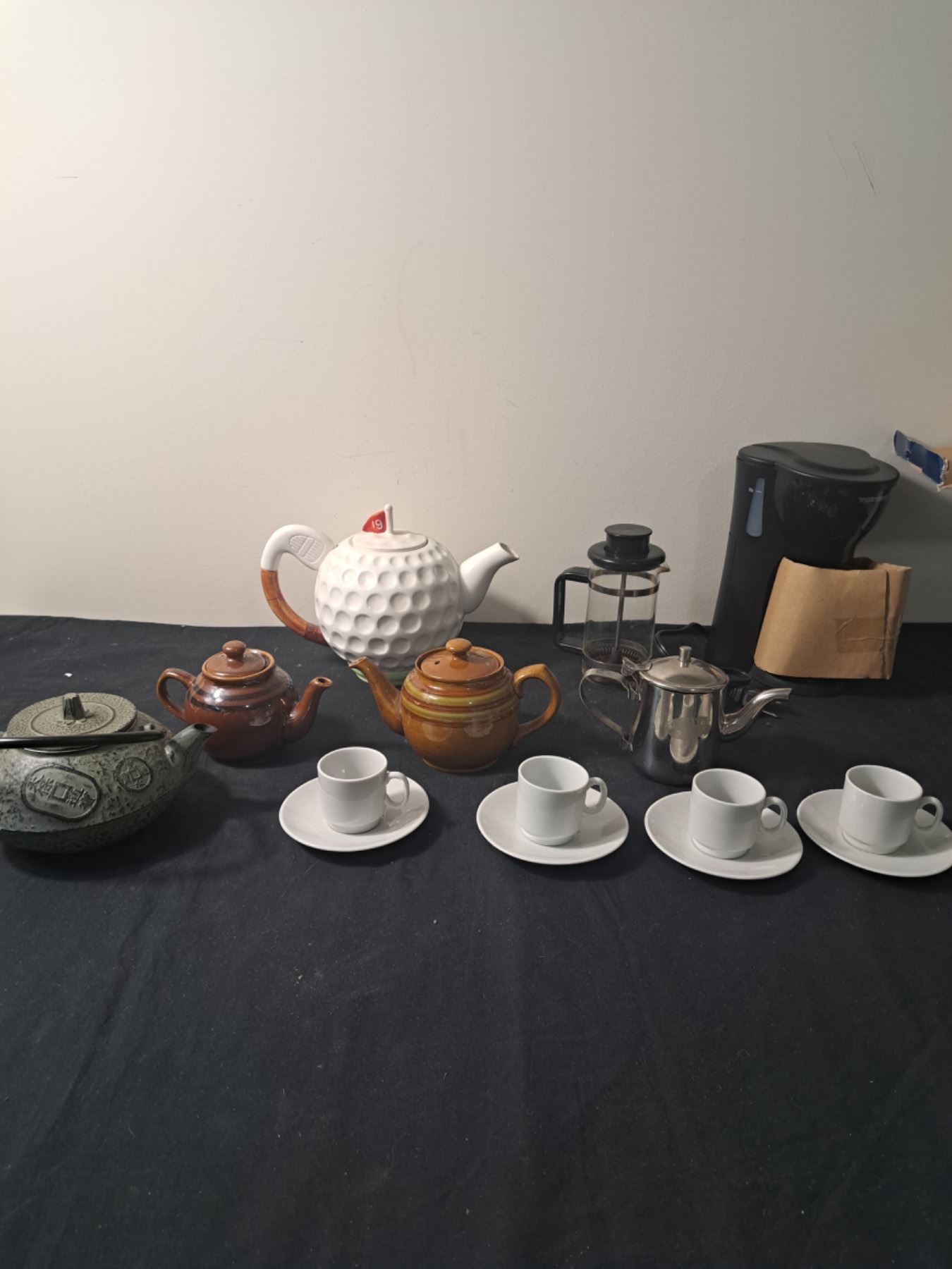 includes toasters coffee maker, expresso cups and saucers and more