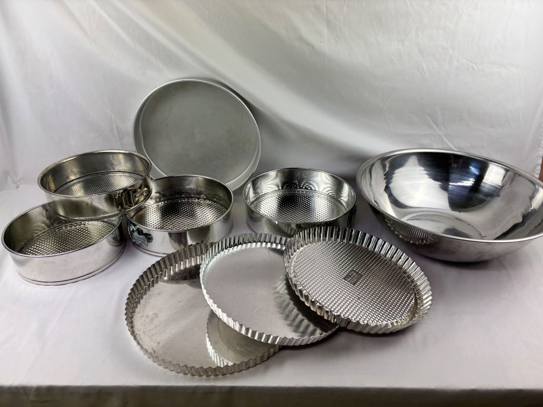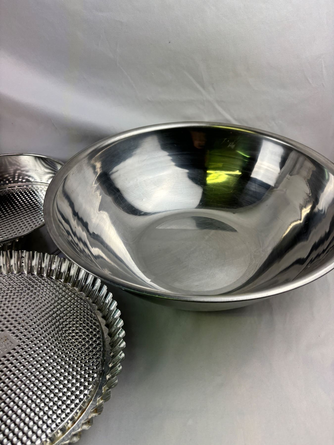 Some pans have scratches and small dents, Large mixing bowl is 16"diameter
