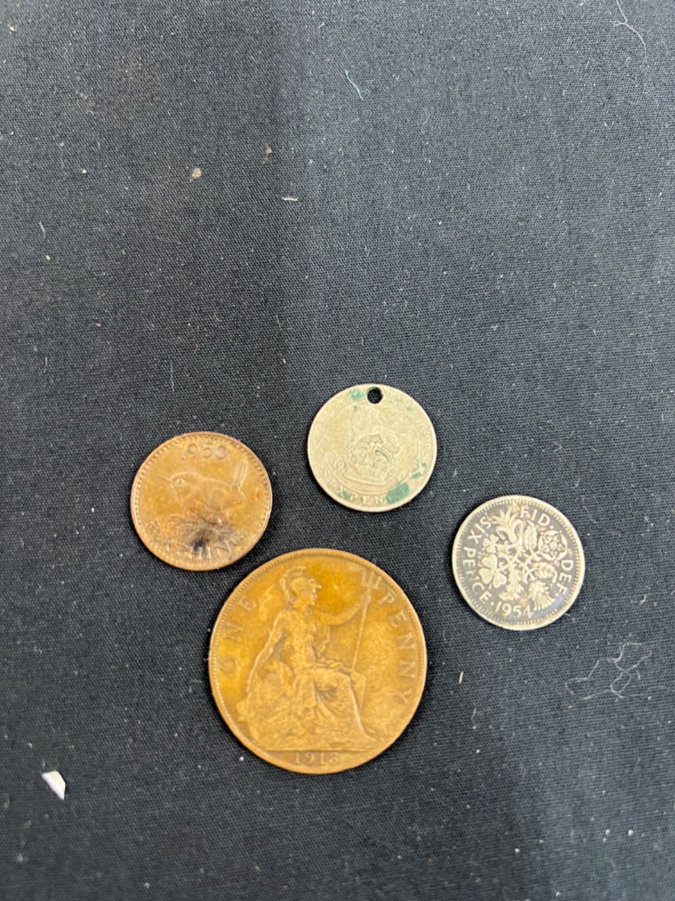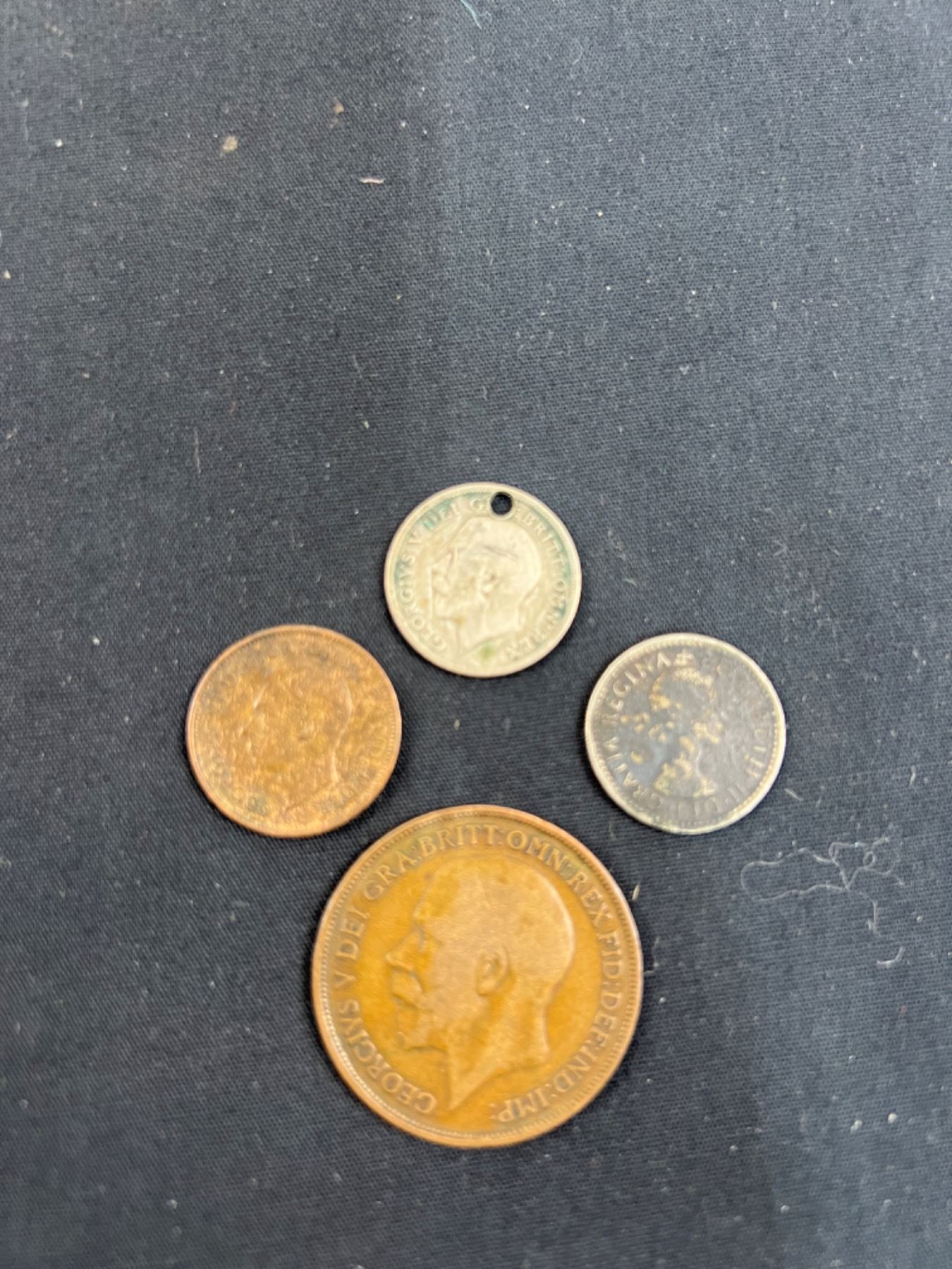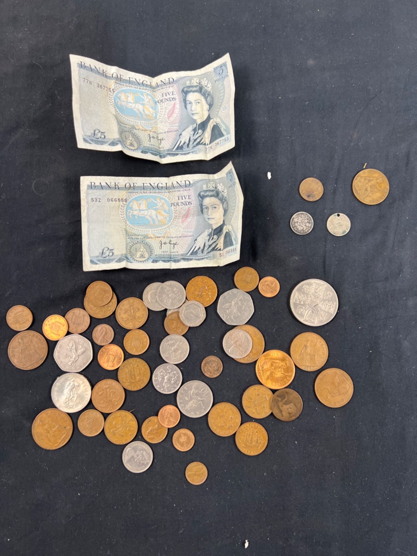 Includes 2 Five Pound Notes, 1913 Penny, 1950 Farthing & 1924 Six Pence