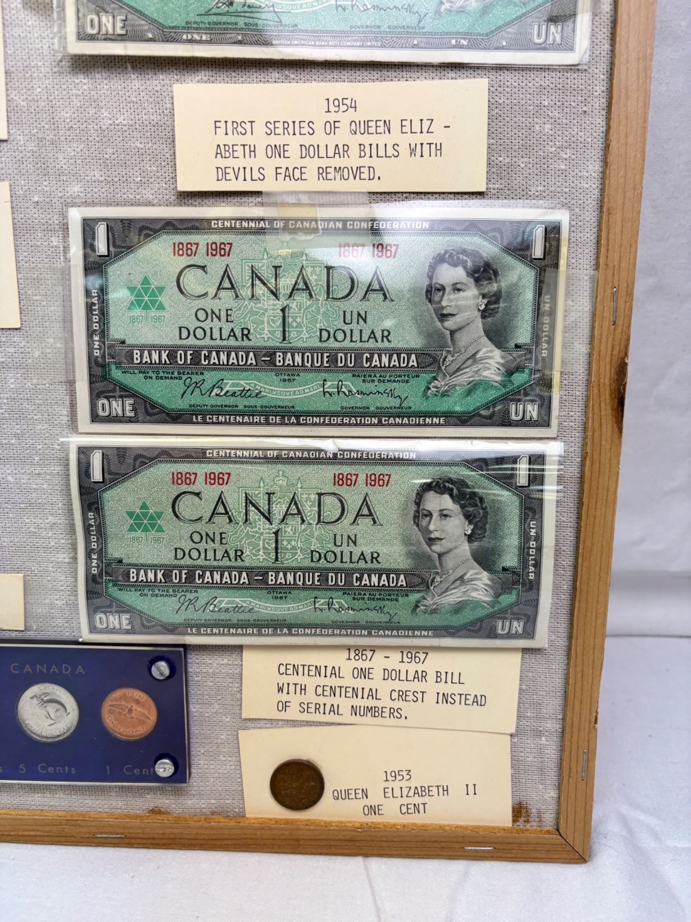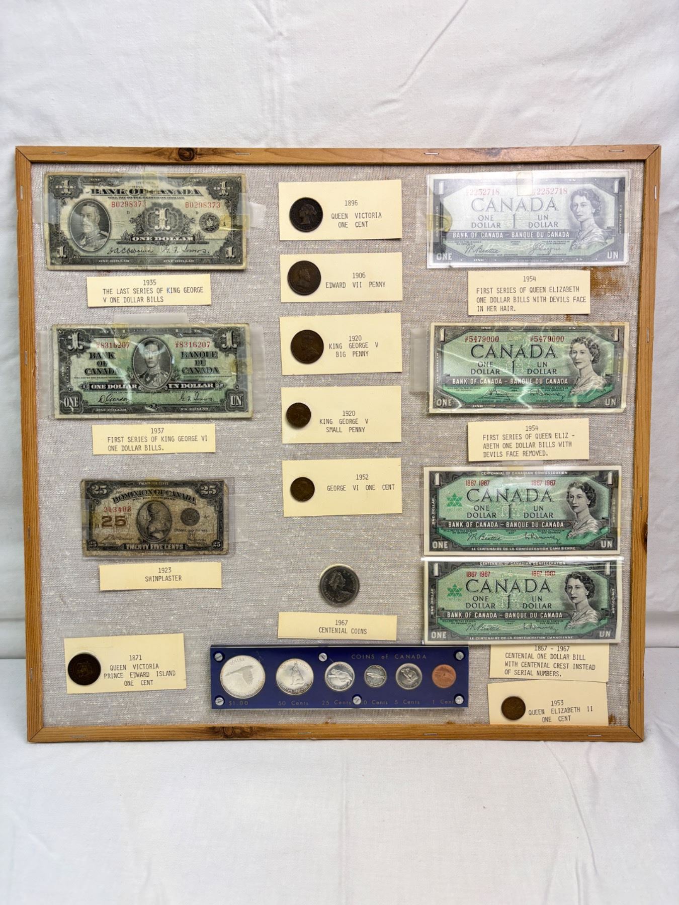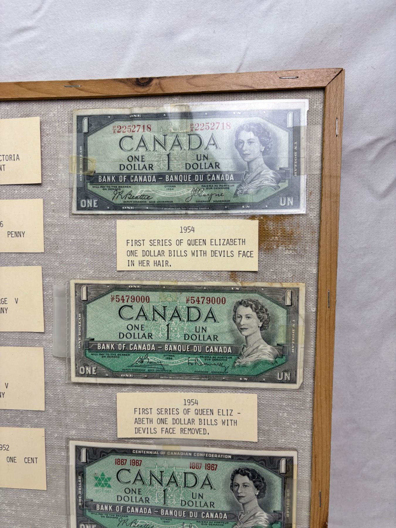 Includes, 1896 Queen Victoria One Cent, Coins of Canada set, Canadian 1 Dollar Bills, etc.