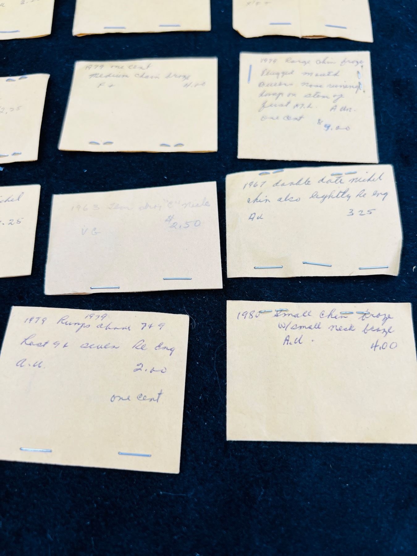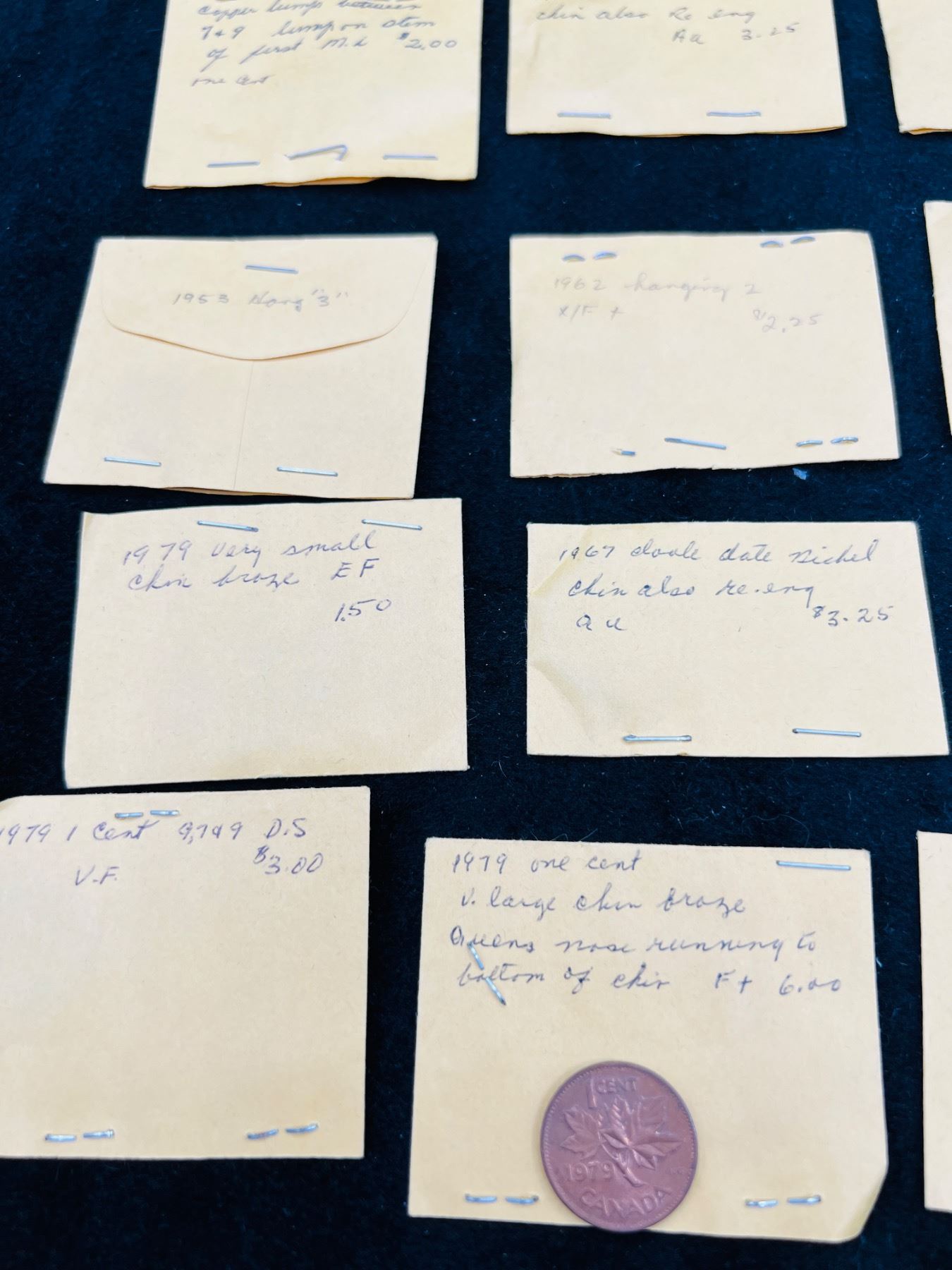 One coin has been removed from packaging for display purposes, dates ranging from 1953-1980