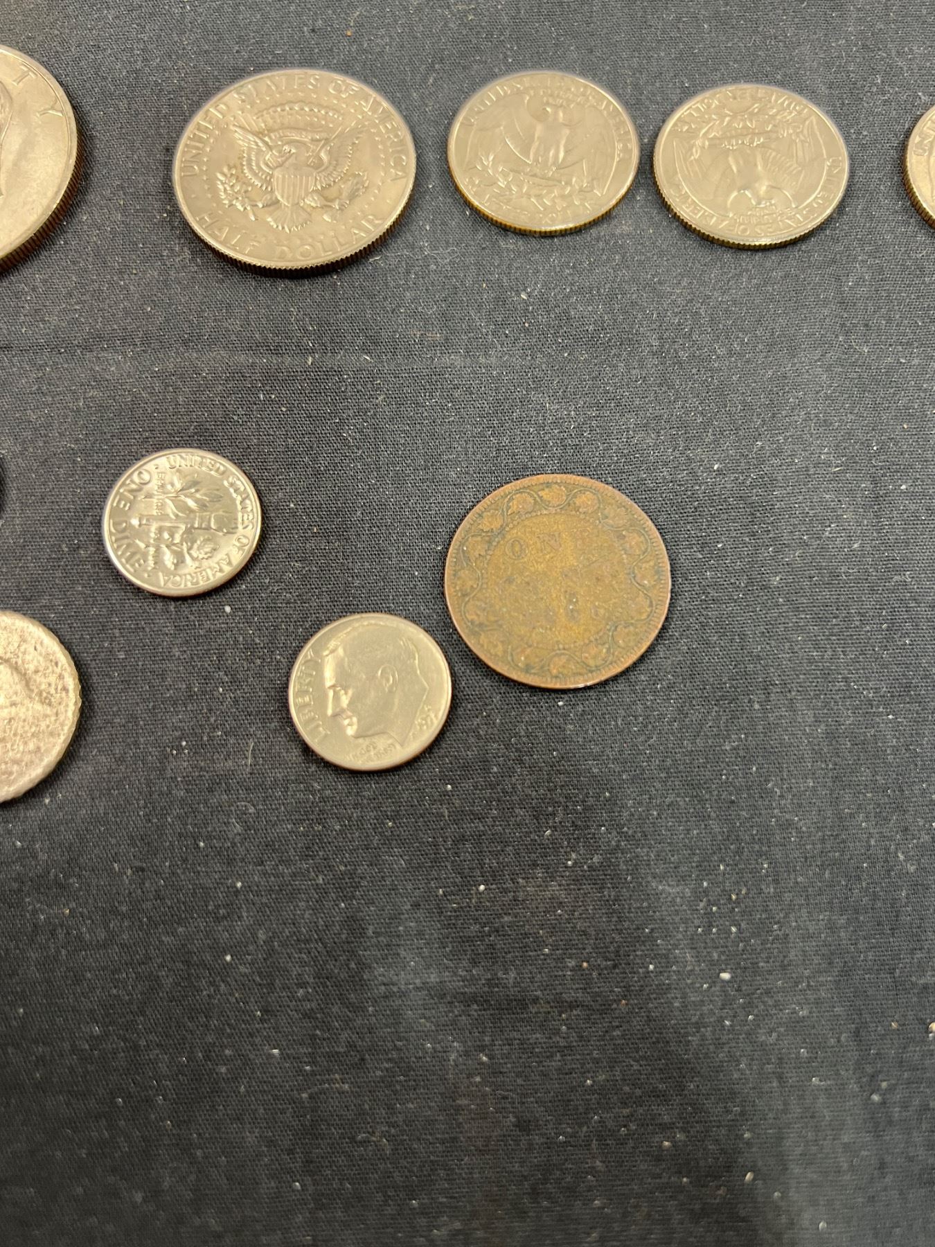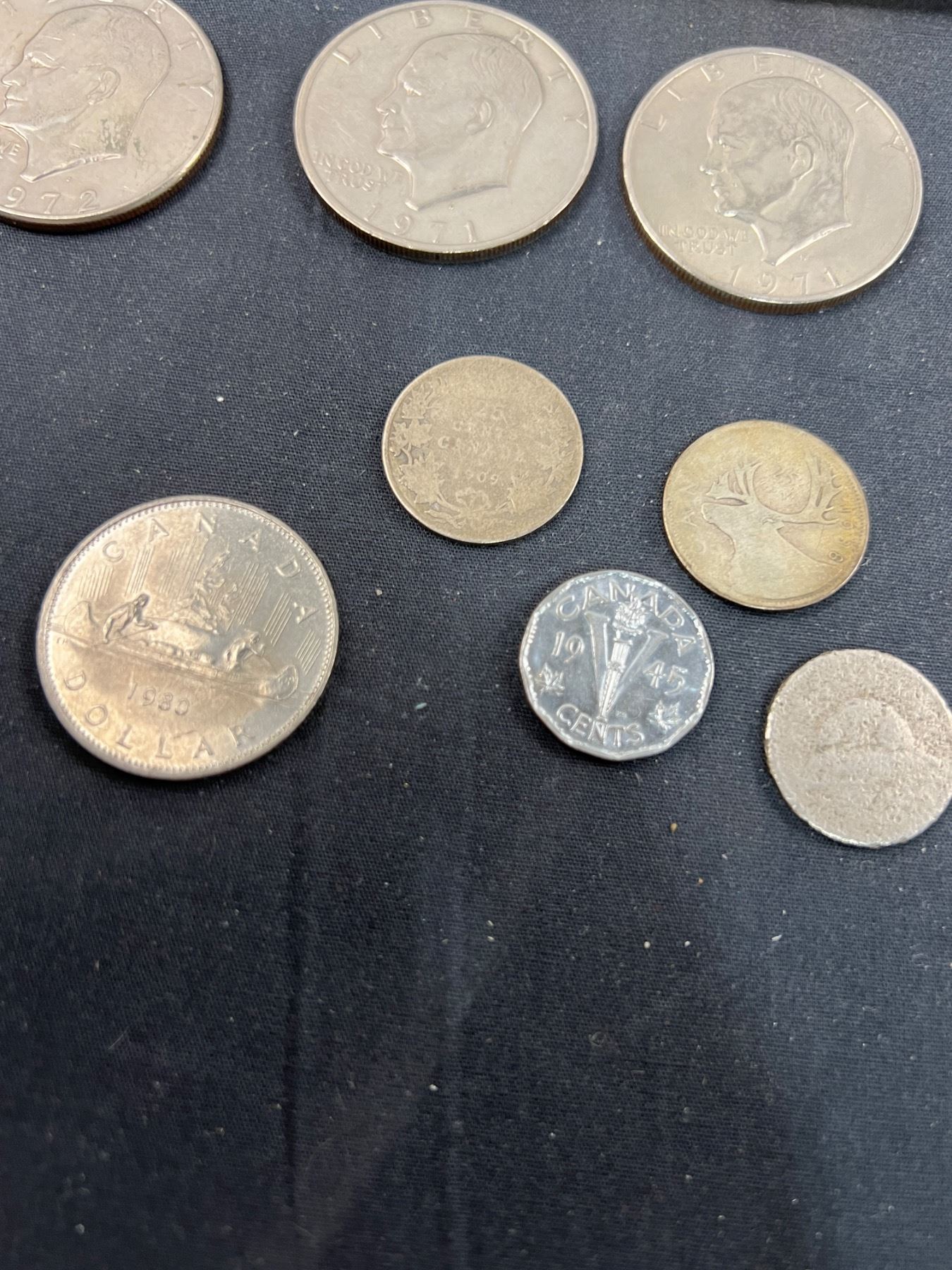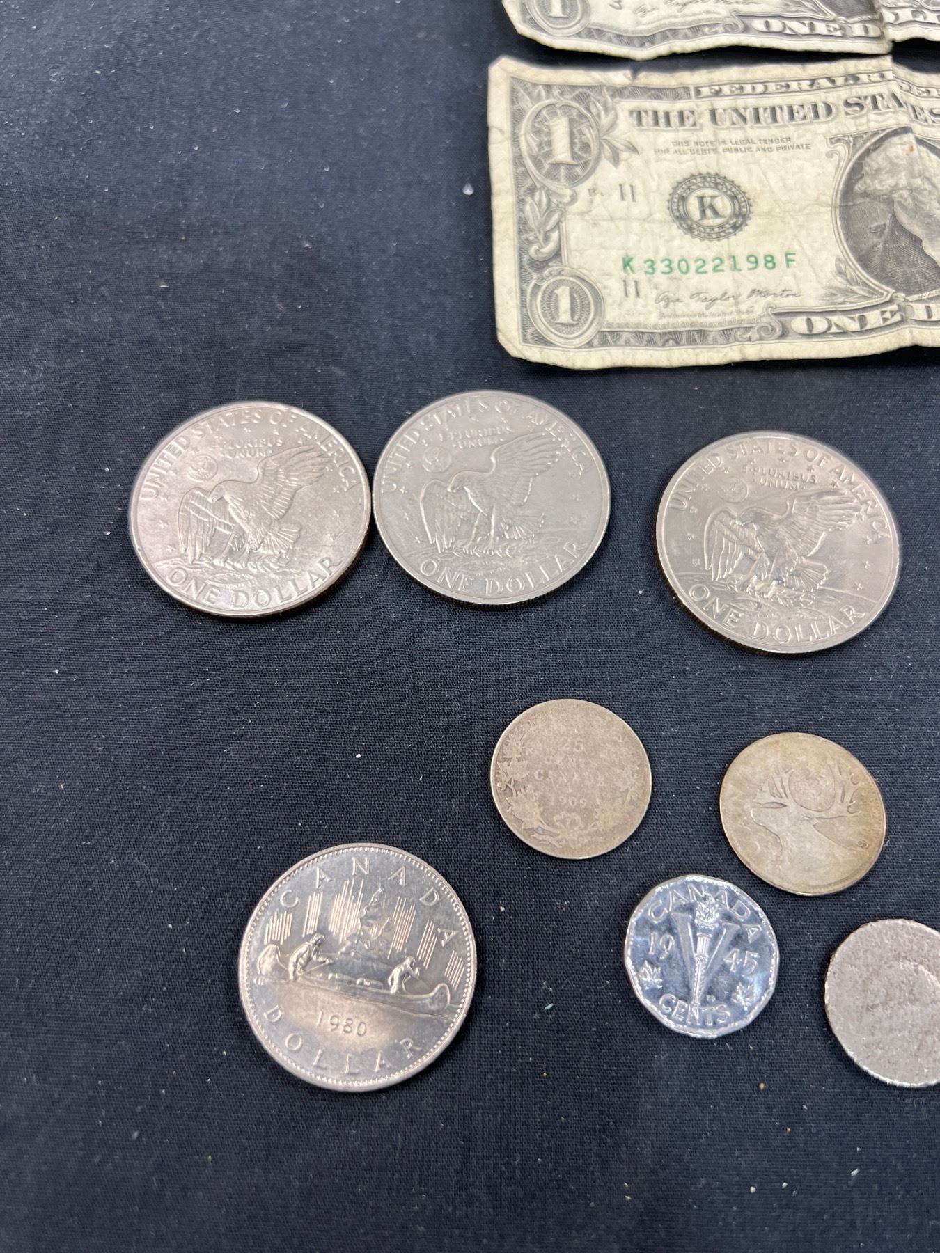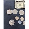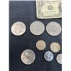 Includes, 3 American dollar coins, 1886 Penny, 1909 Quarter, and more