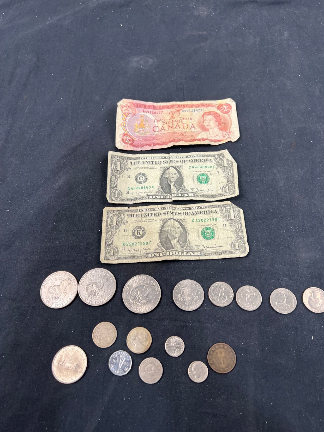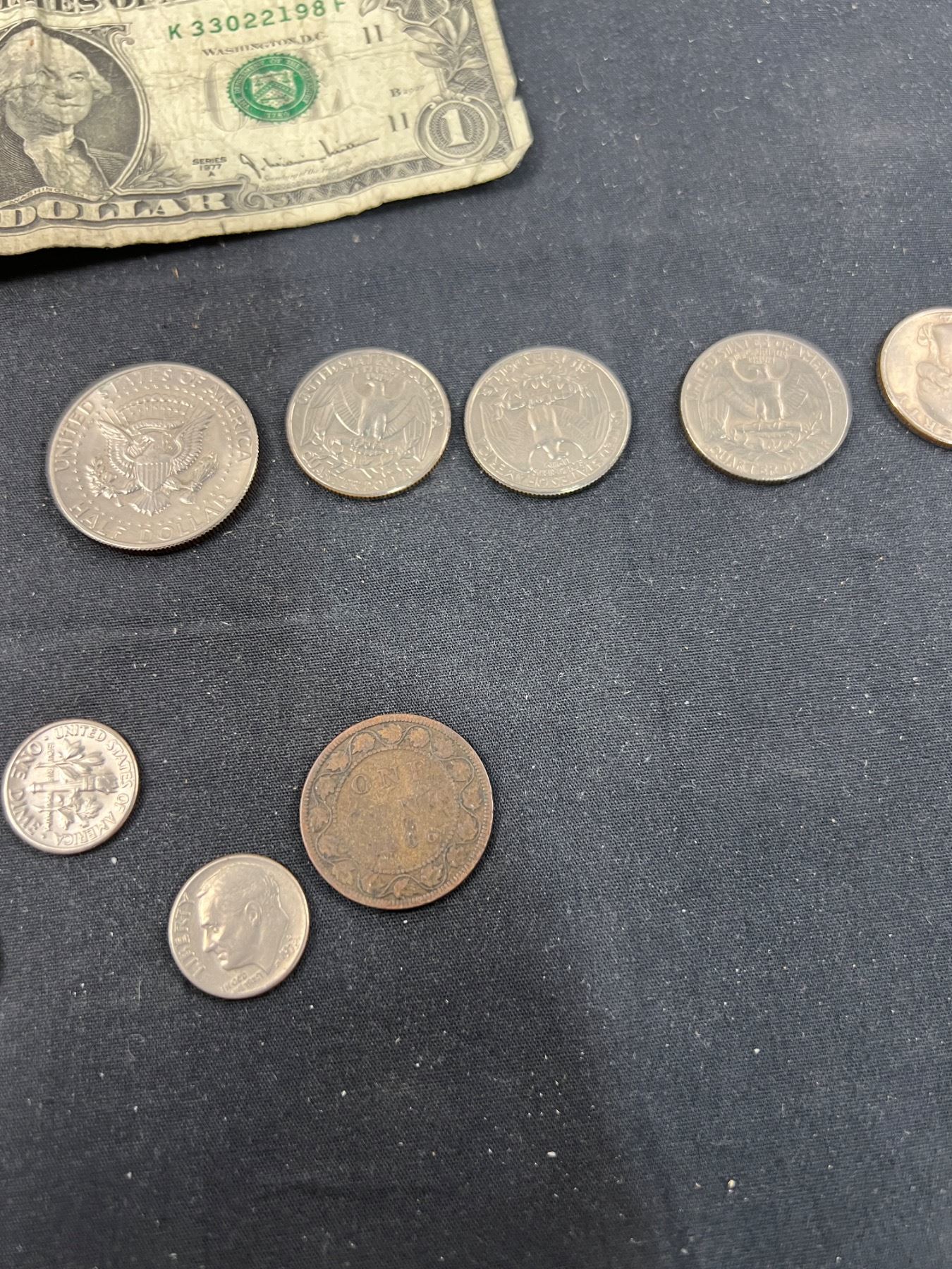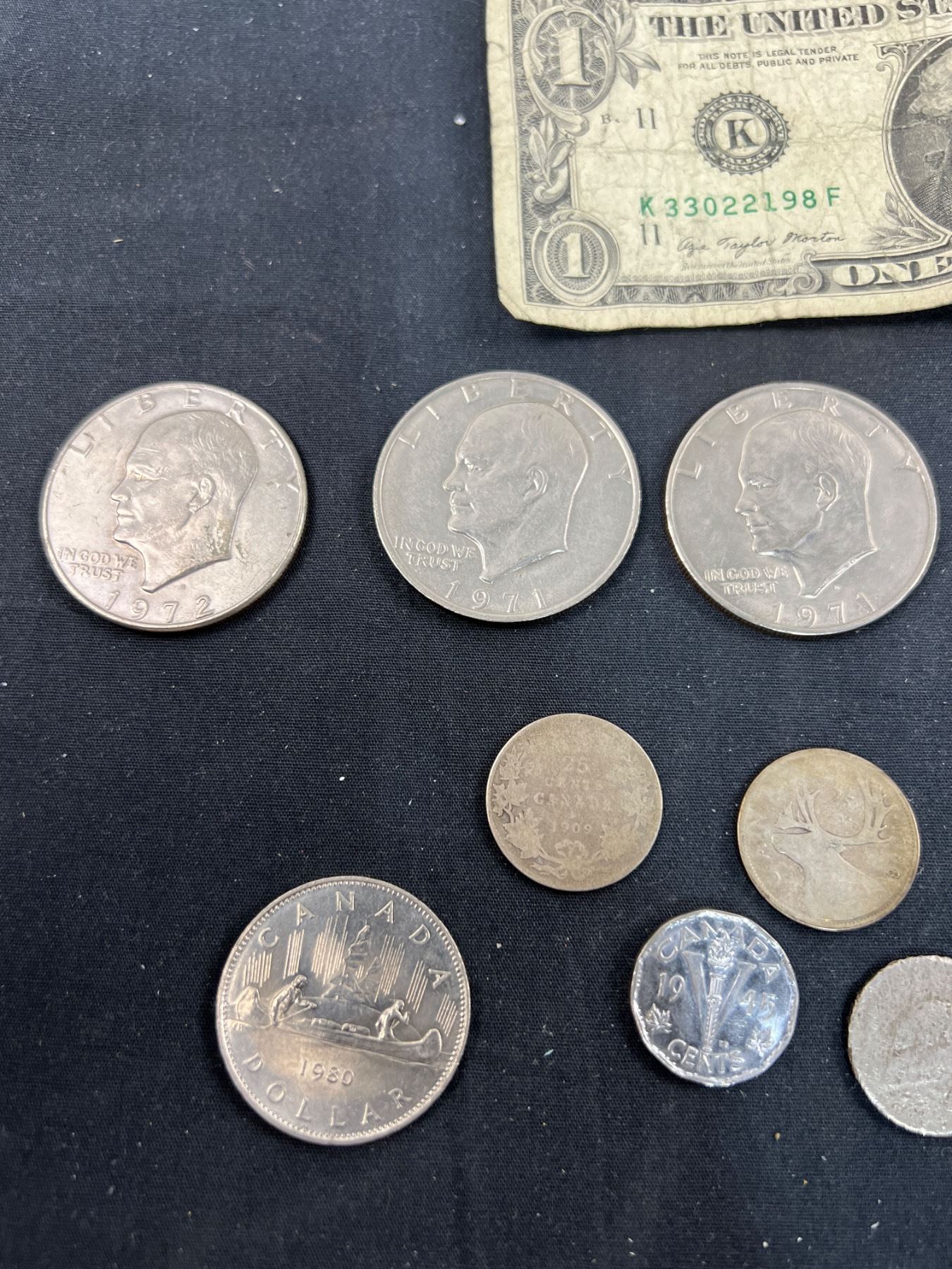 Includes, 3 American dollar coins, 1886 Penny, 1909 Quarter, and more