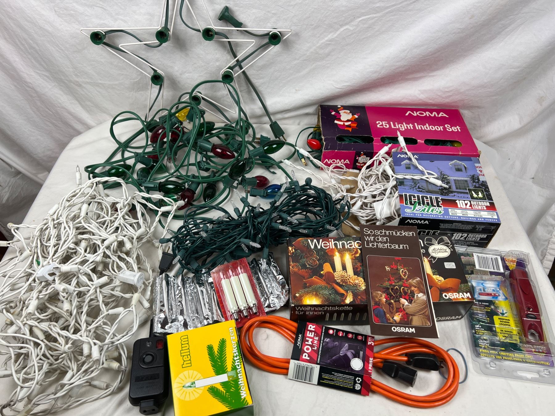 Tested and in working condition, Includes a set of candlelights that have a European plug (not tested), The star is 18"W