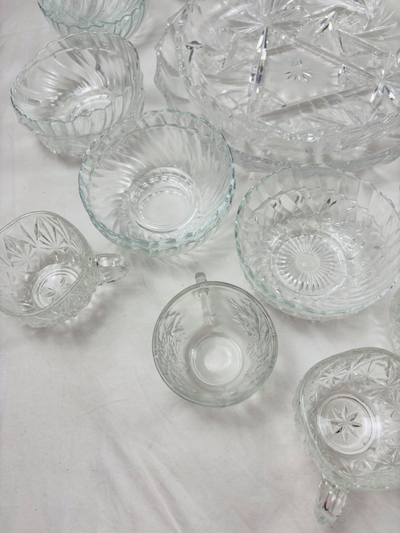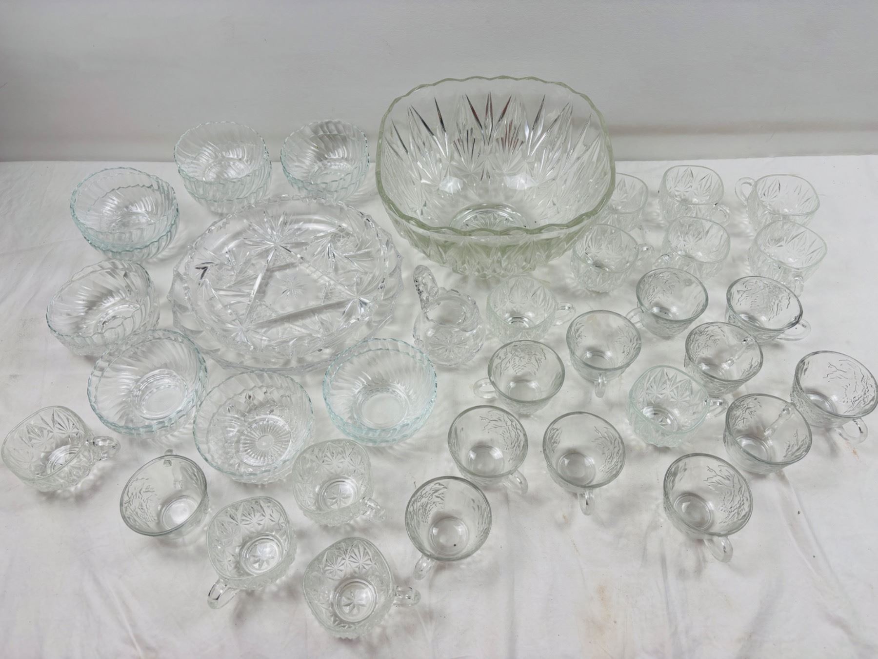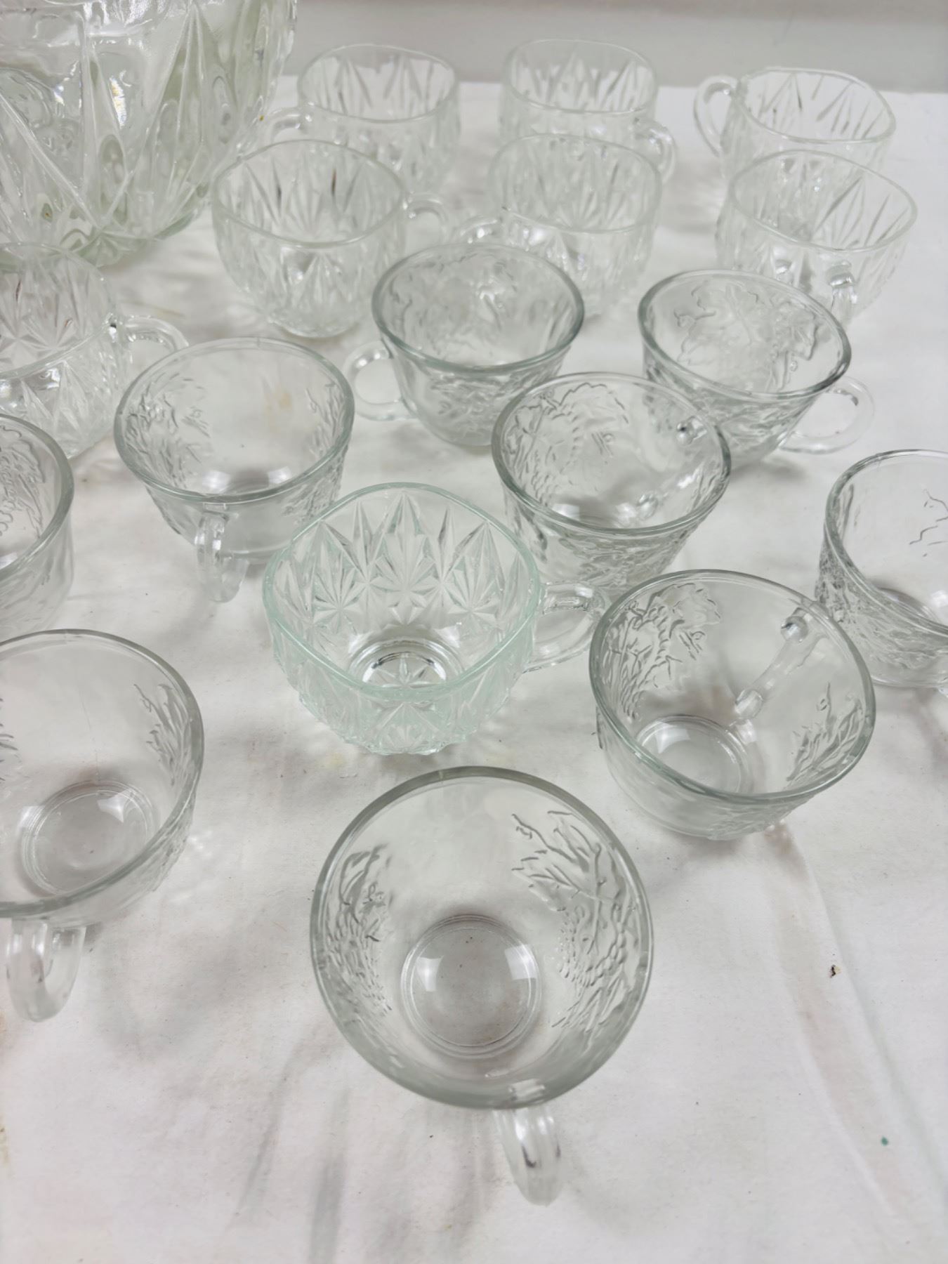 Includes a punch bowl, cream and sugar dishes, various cups, and more