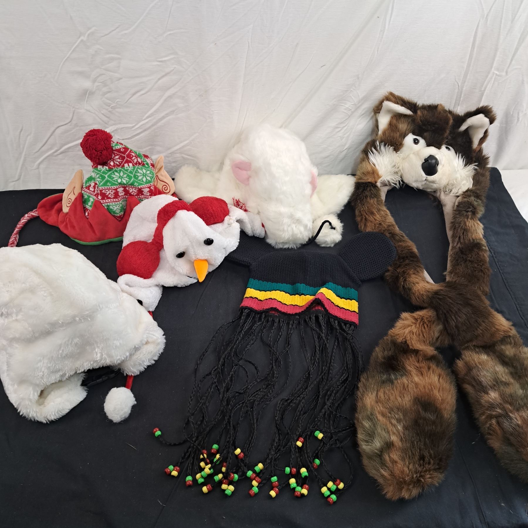 Includes Rasta Mickey, Elf Touque,Wolf Hat with Hand Warmers & More