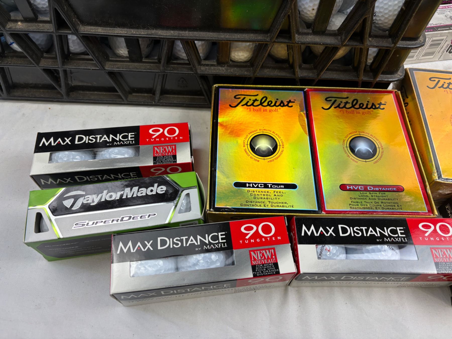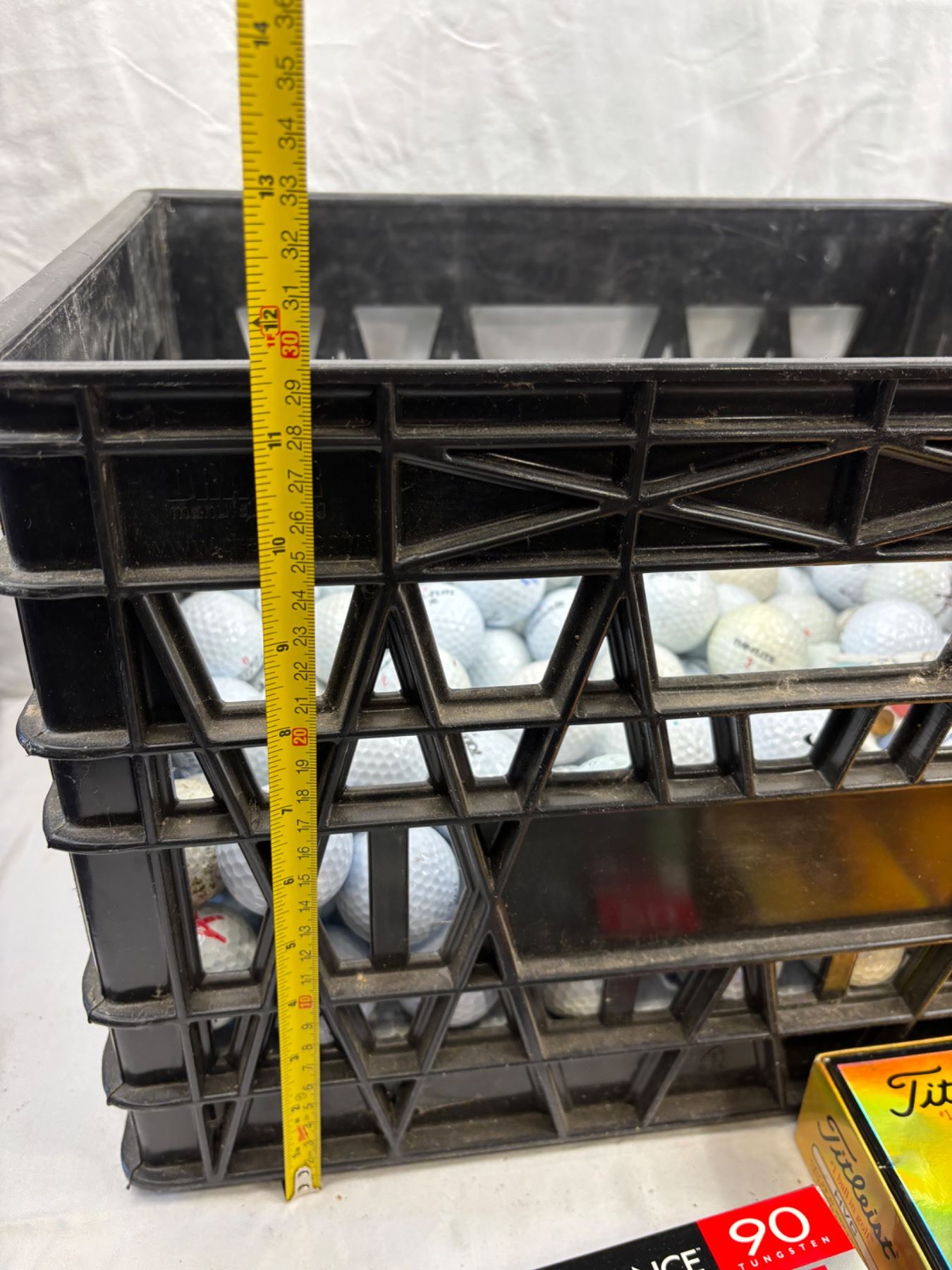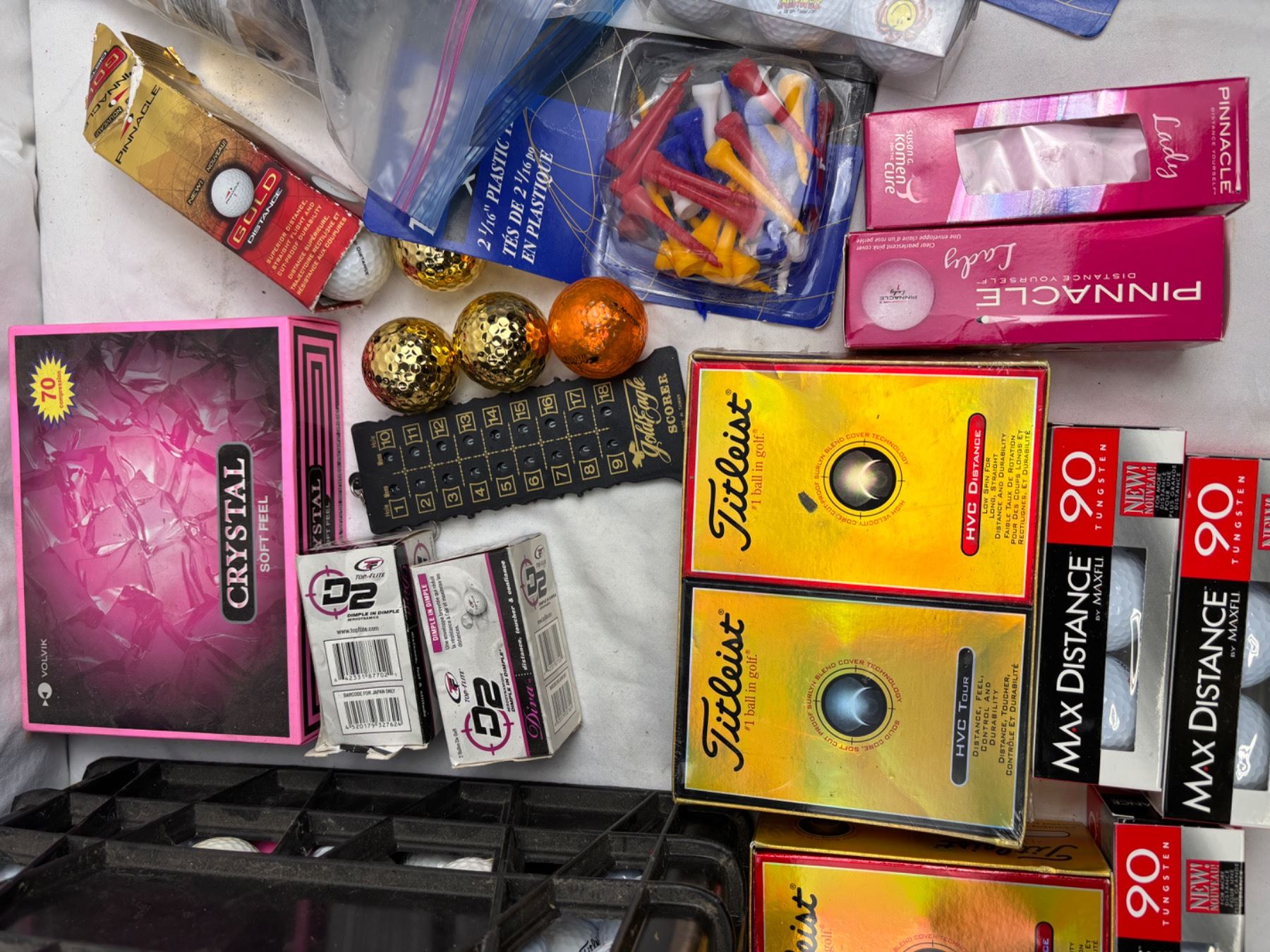 Includes an assortment of new and used golf balls like Pinnacle, Crystal, Max Distance 90, and more