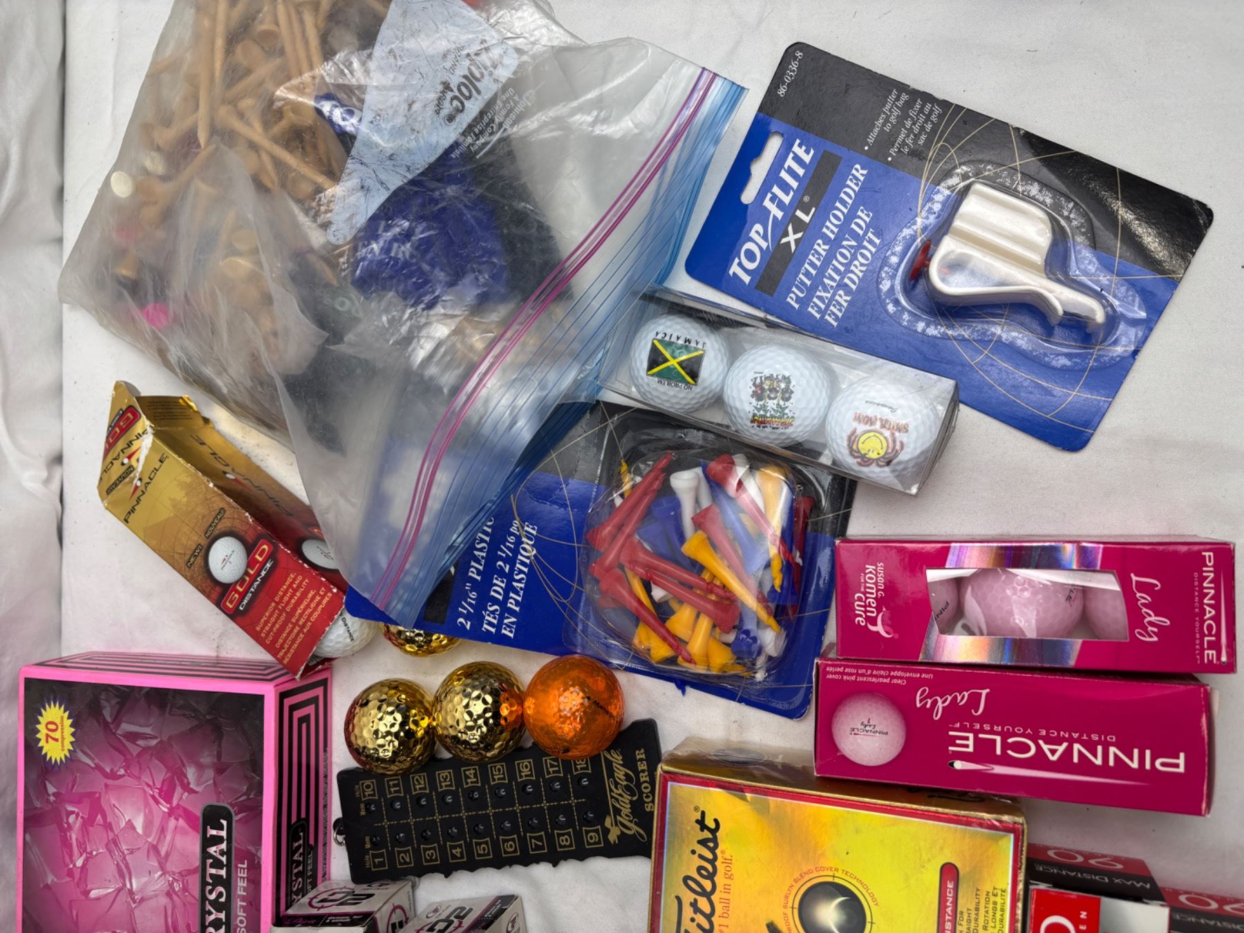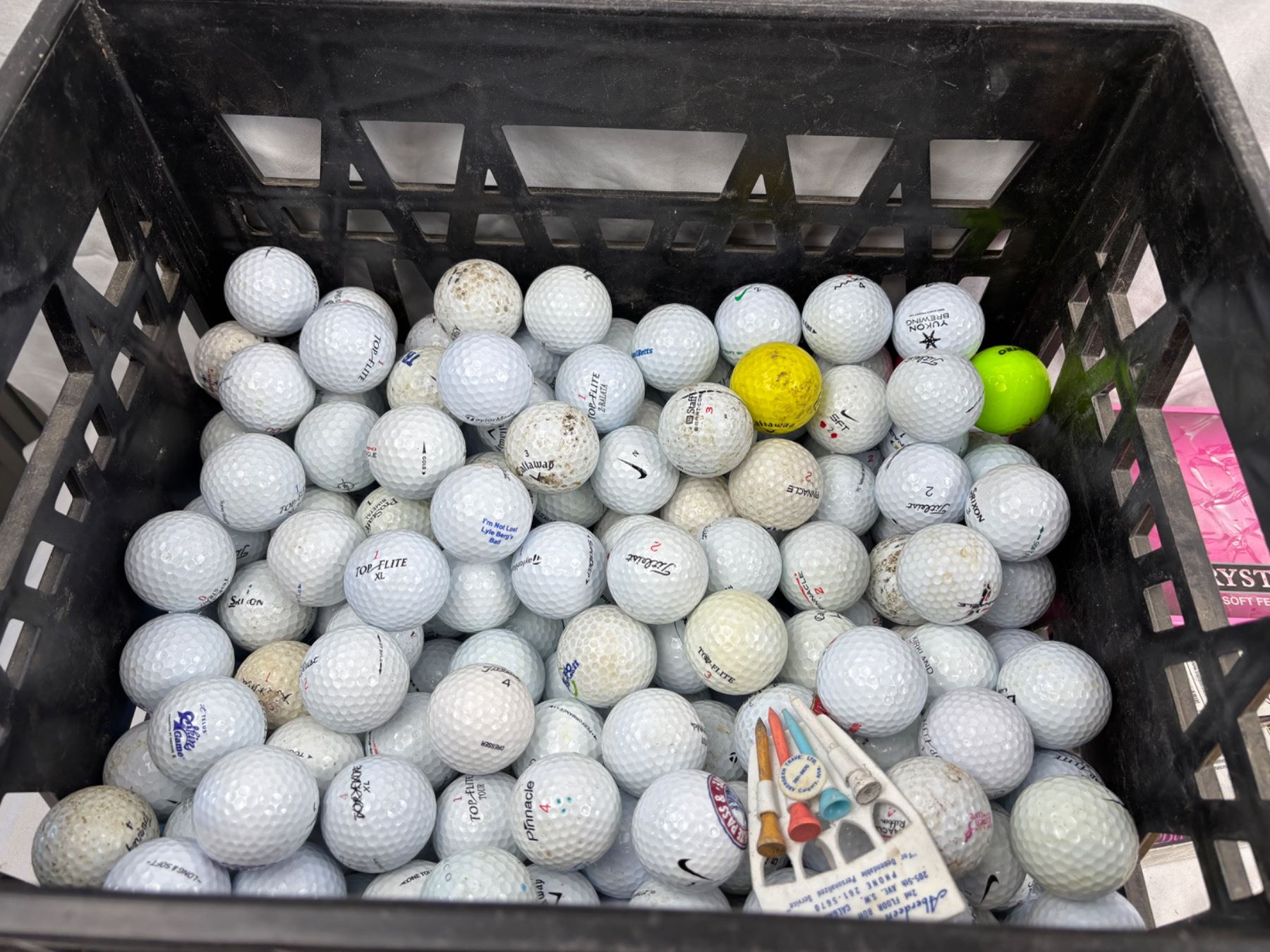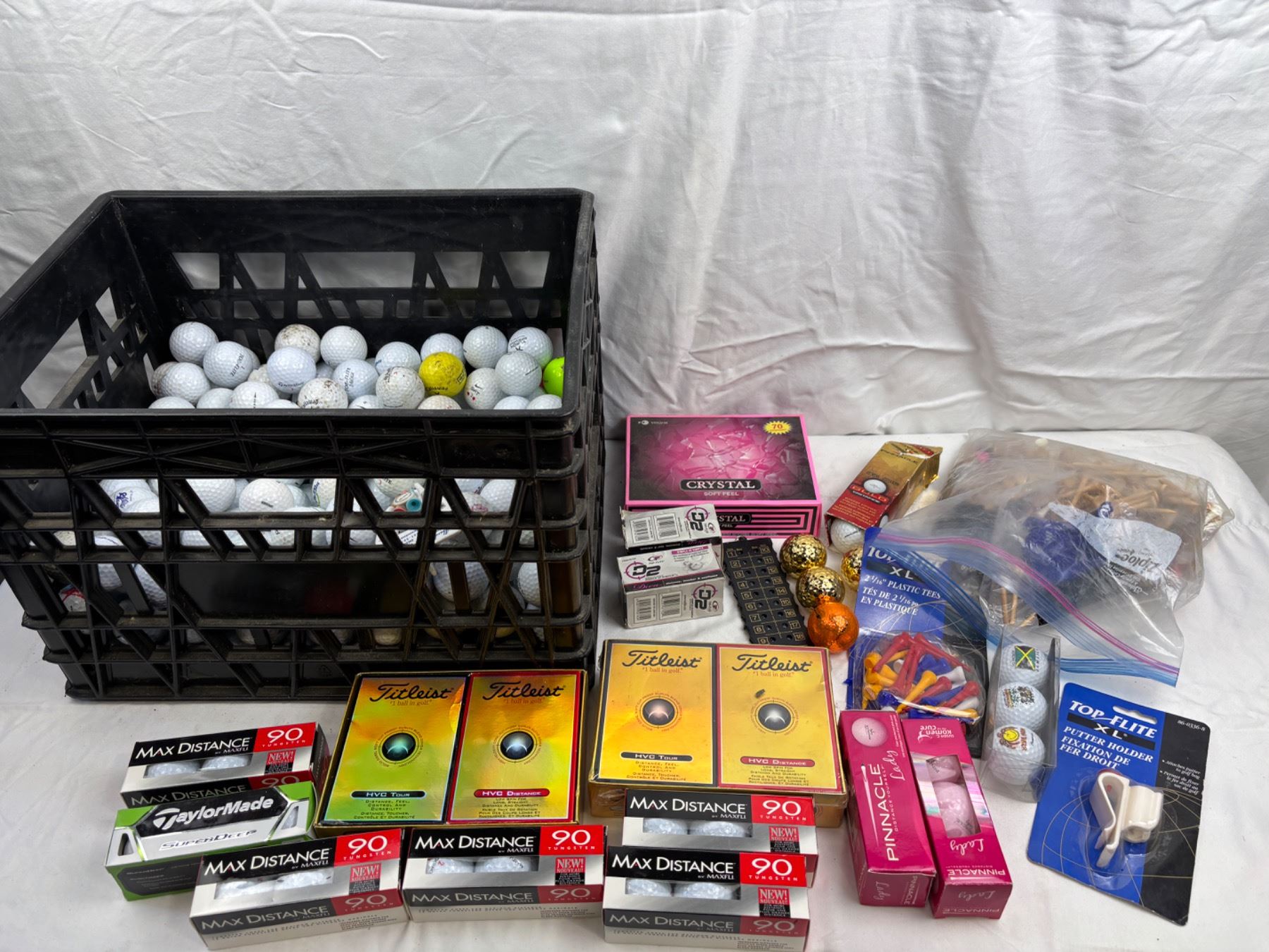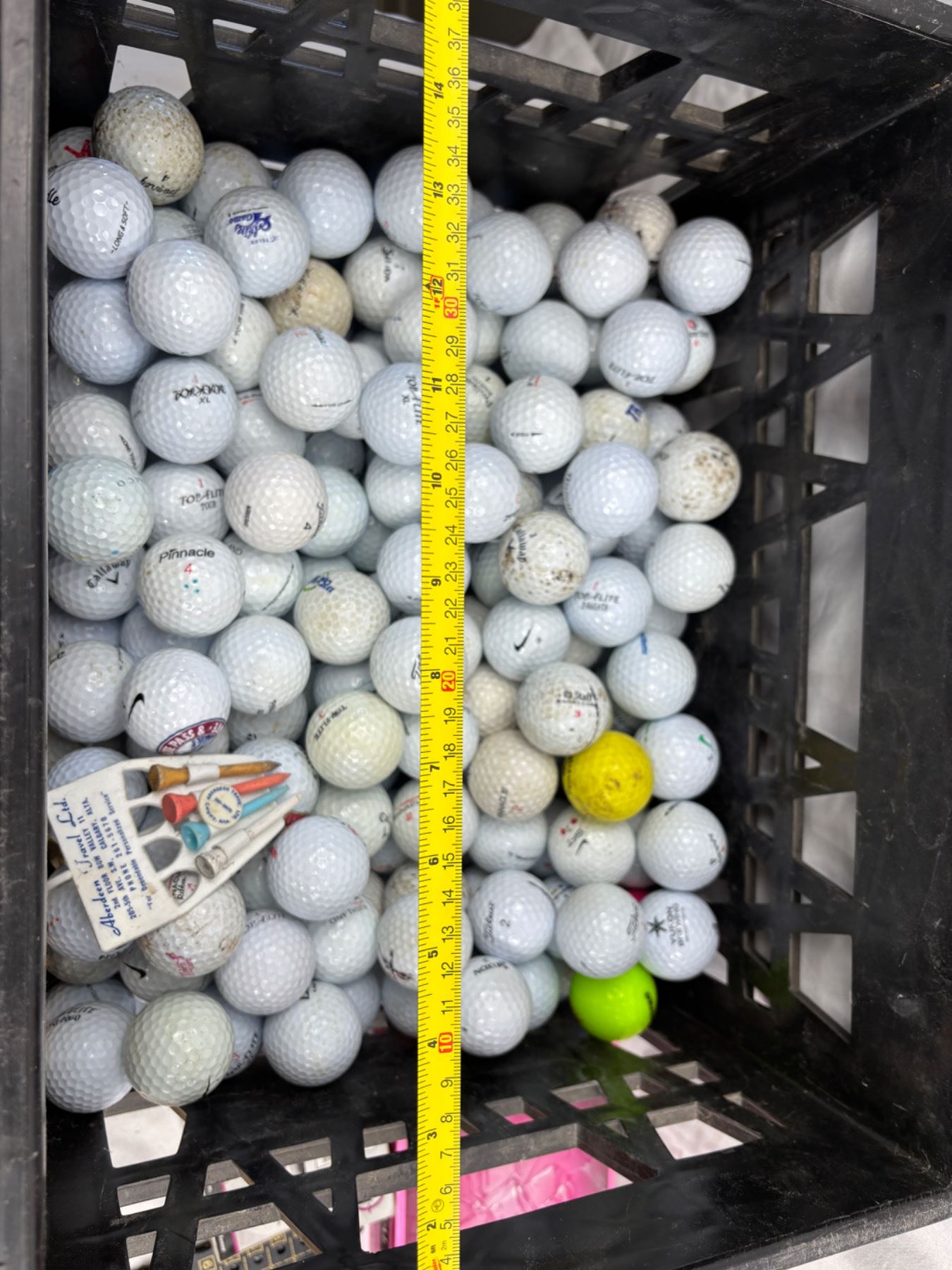 Includes an assortment of new and used golf balls like Pinnacle, Crystal, Max Distance 90, and more
