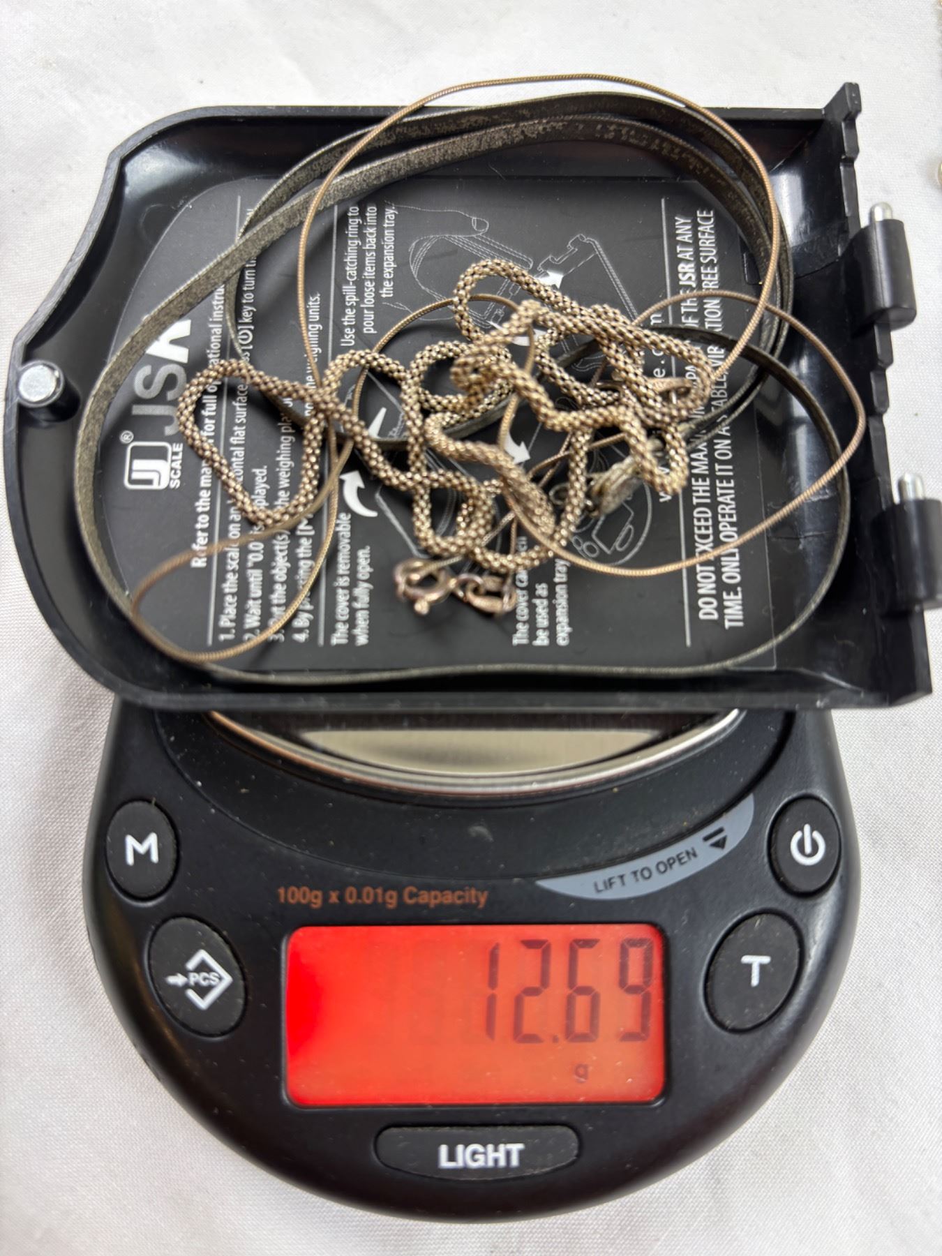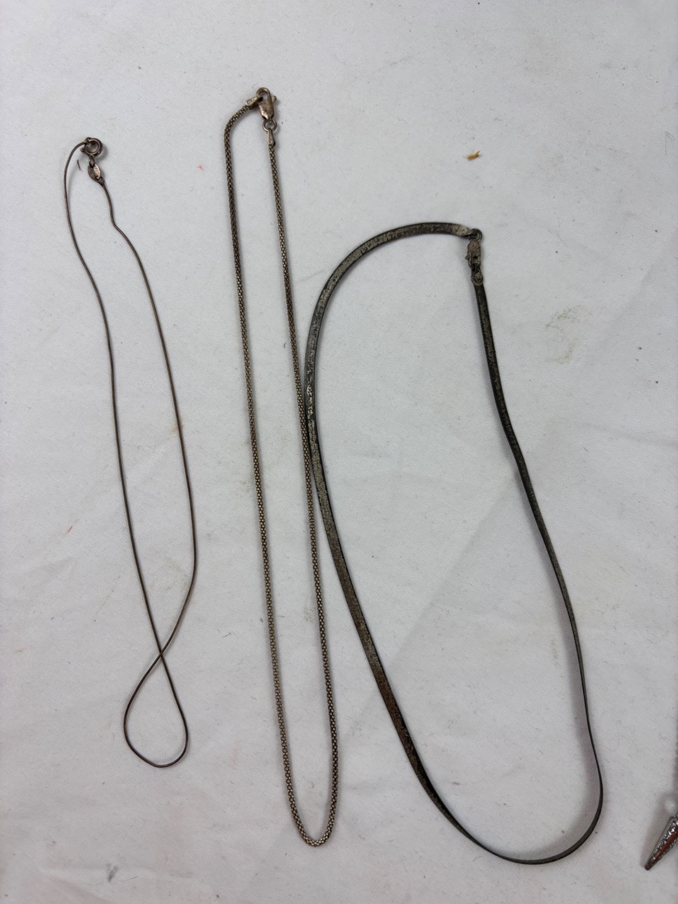 Includes three necklace chains stamped ".925" (all three have a total weight of 12.69g)
