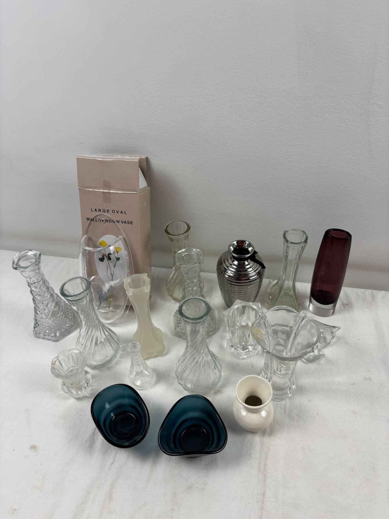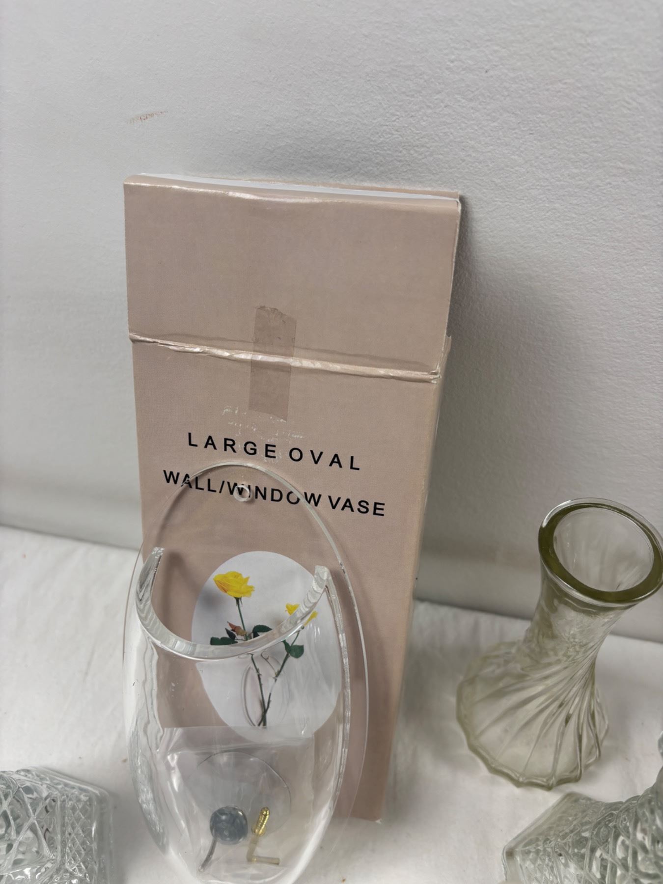 Includes a Large Oval Wall/Window Vase, Tallest vase is 7"H