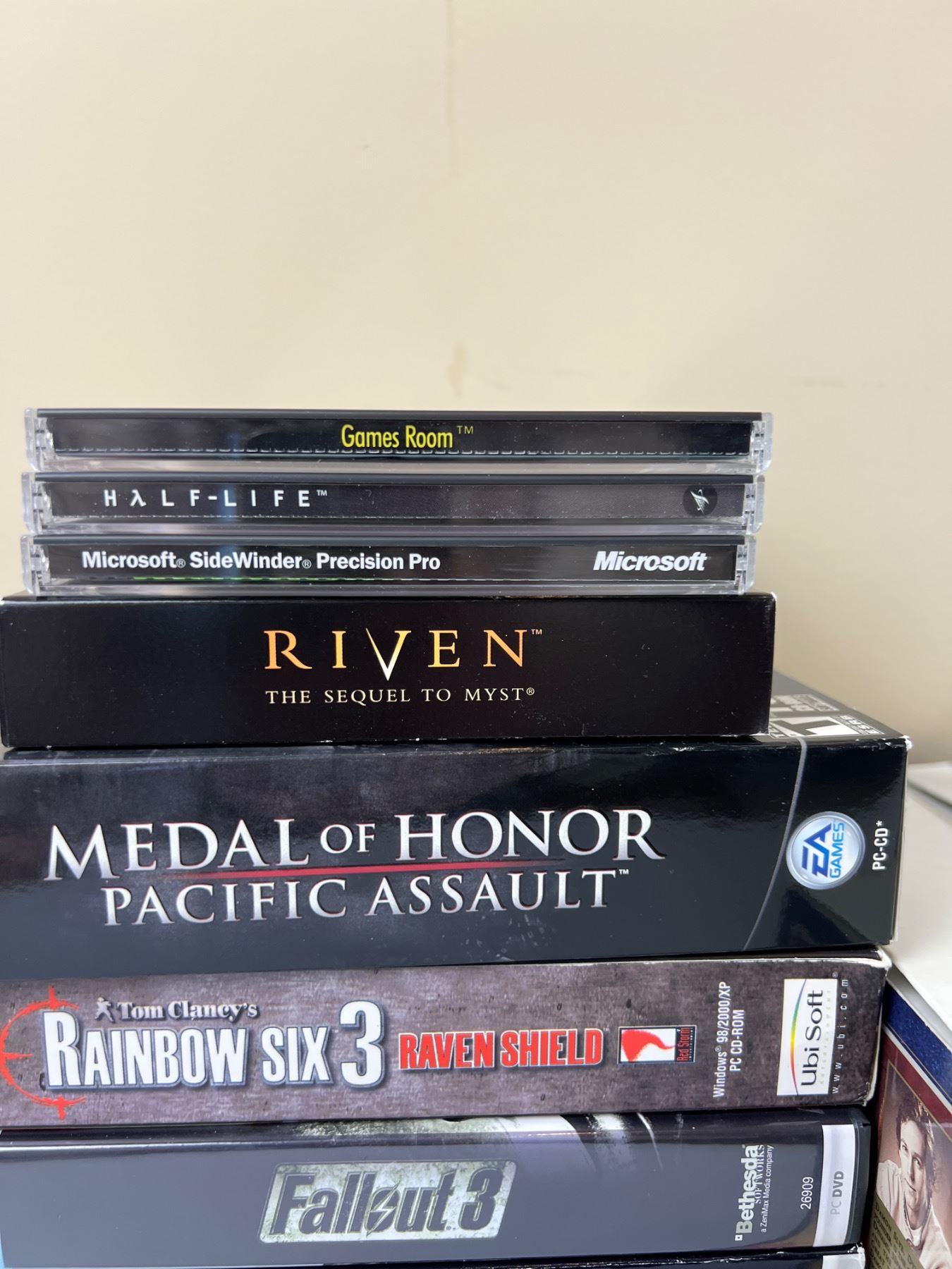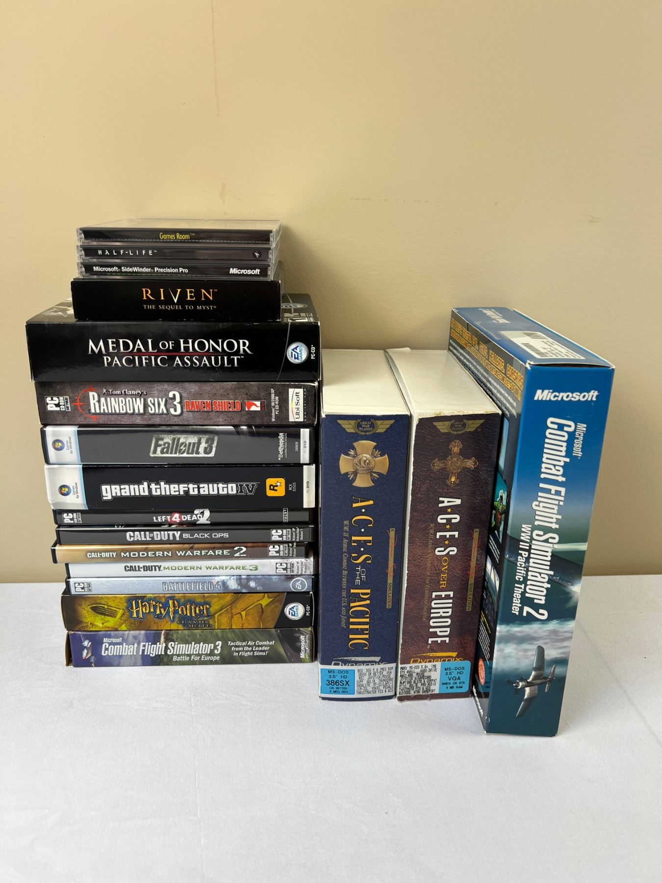 New and used, includes GTA IV, Call of Duty, Riven, and more