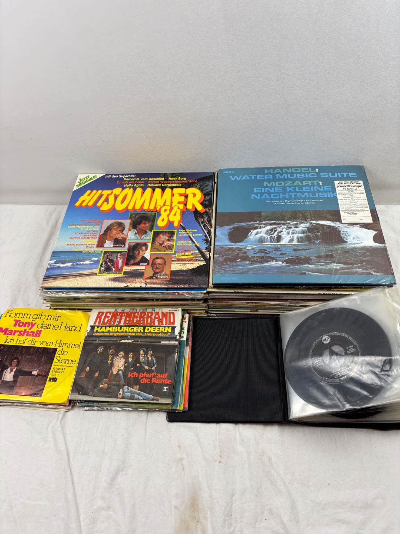 Includes a binder album of 48's, Kenny Rogers, The Kingston Trio, James Last