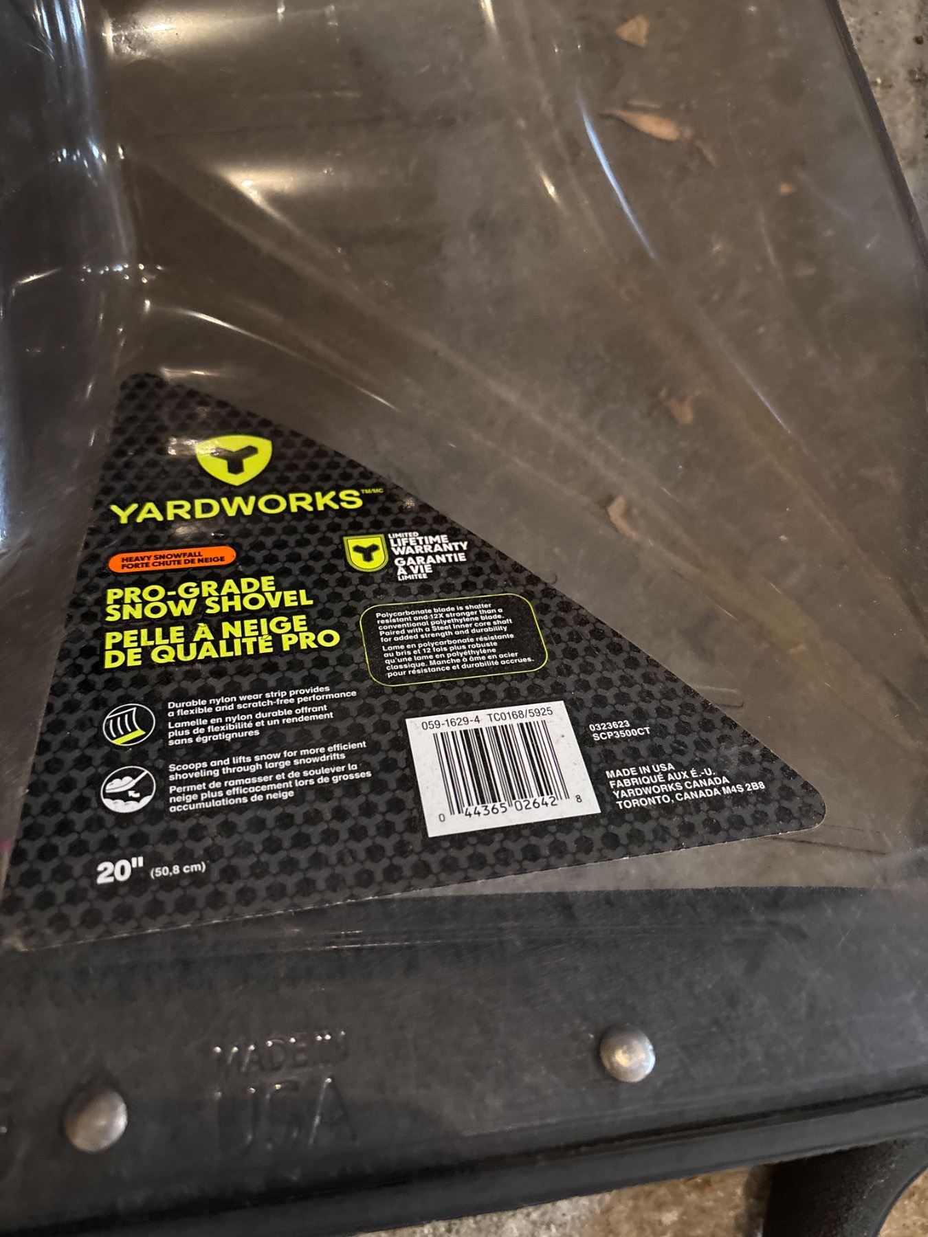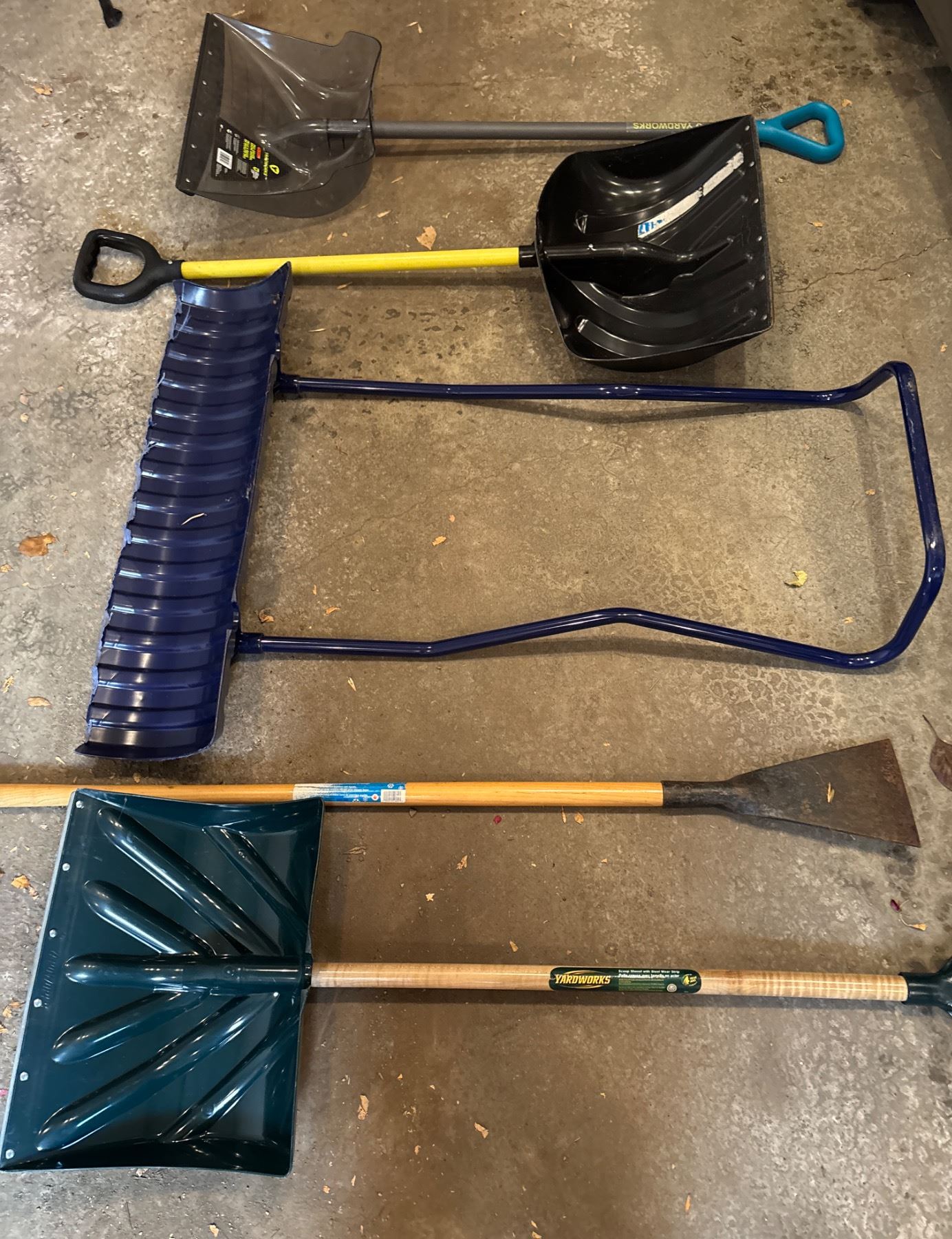 Includes Yardworks scoop shovel with steel wear strip, Yardworks pro grade snow shovel, and more