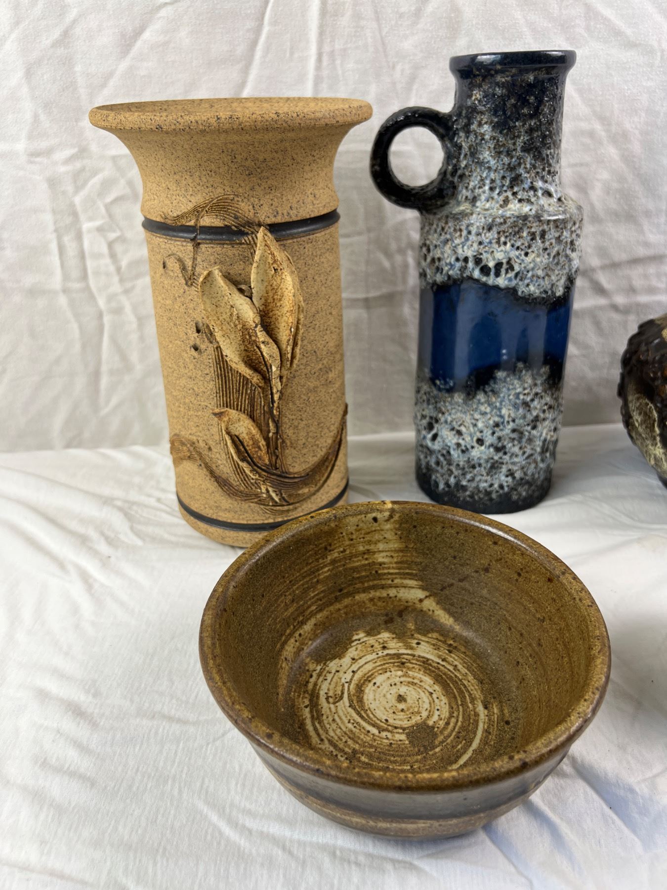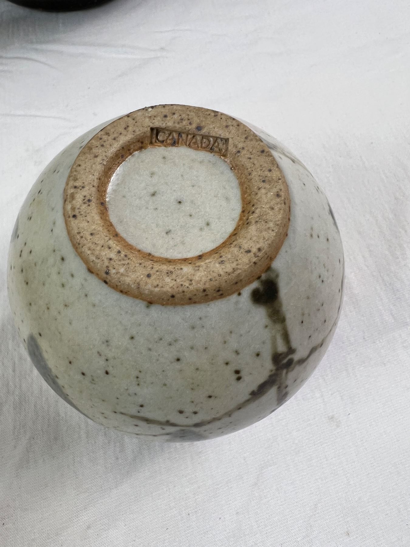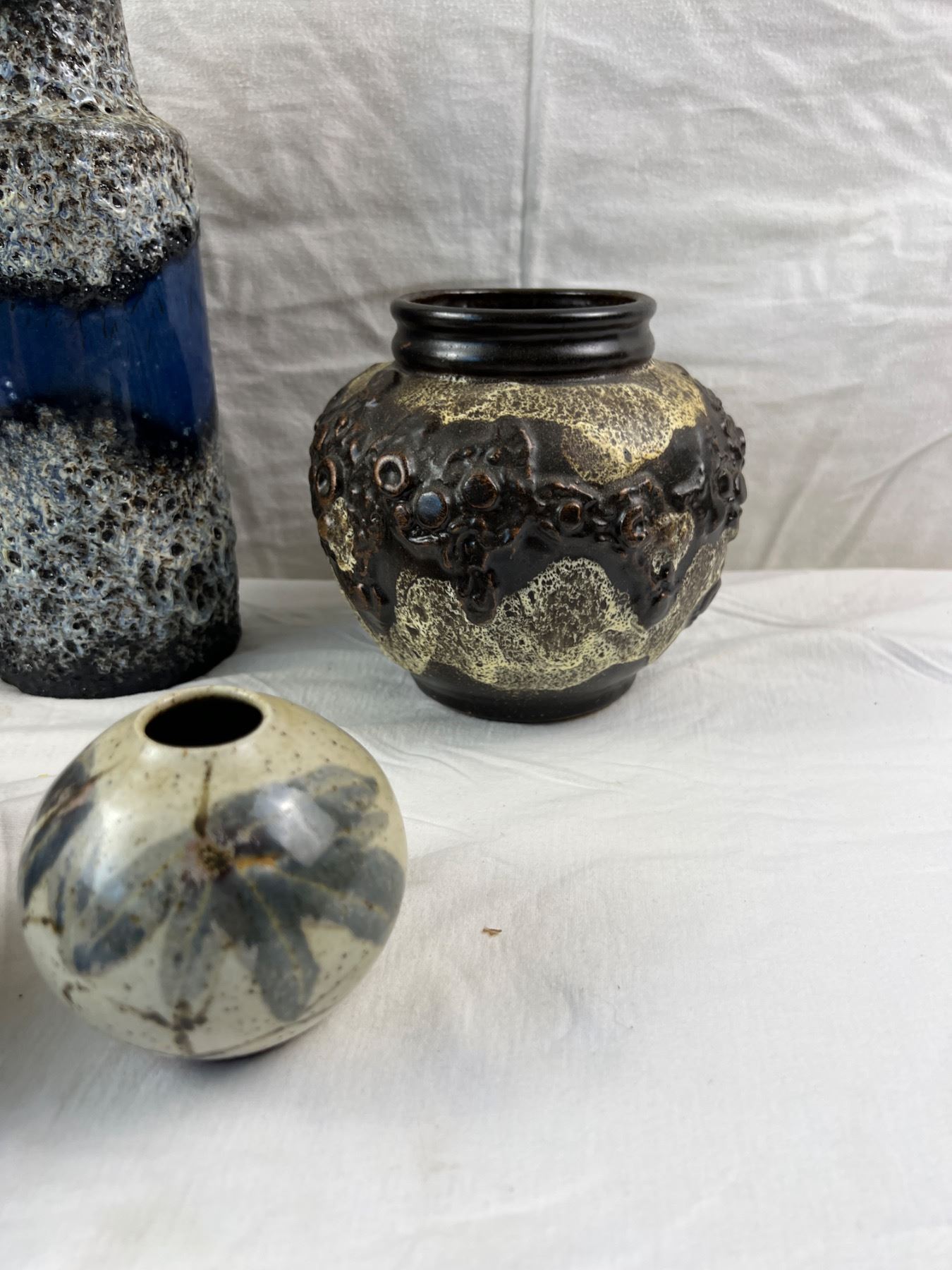 Some pieces are signed by the artist on the bottom, The large blue vase is 11"H