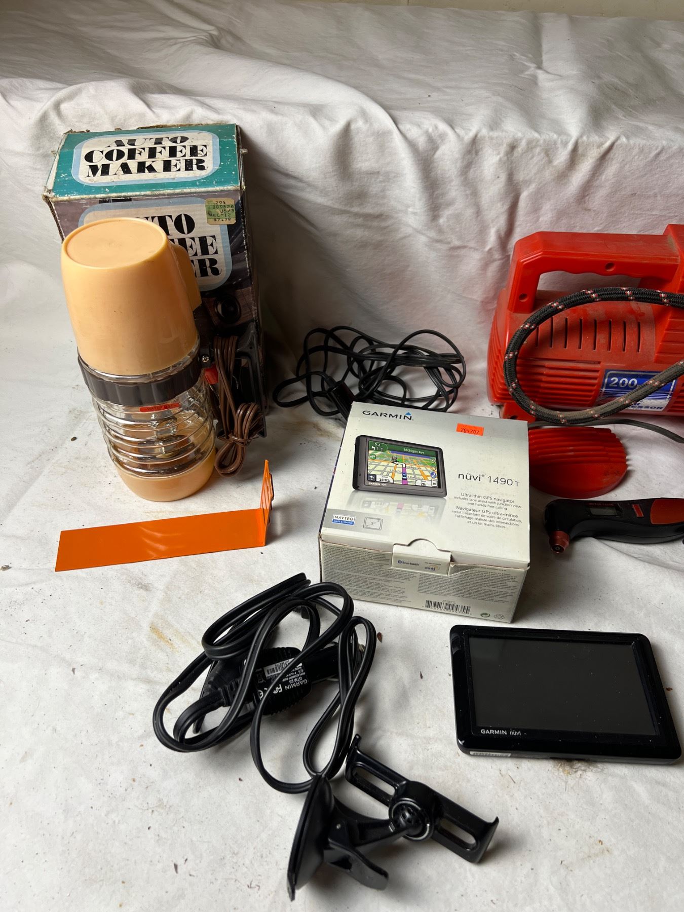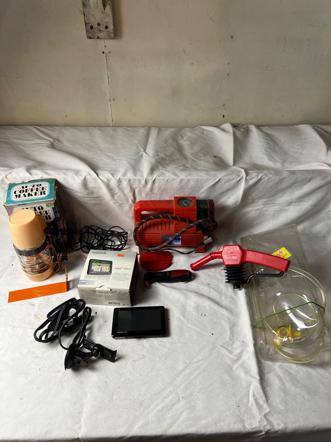 Unknown if air compressor and coffee maker are working, require 12v plug in. Garmin is working.