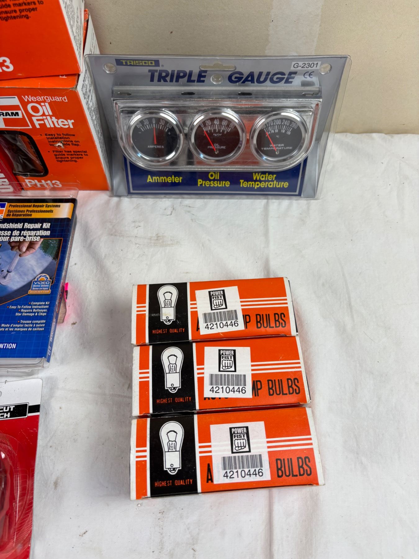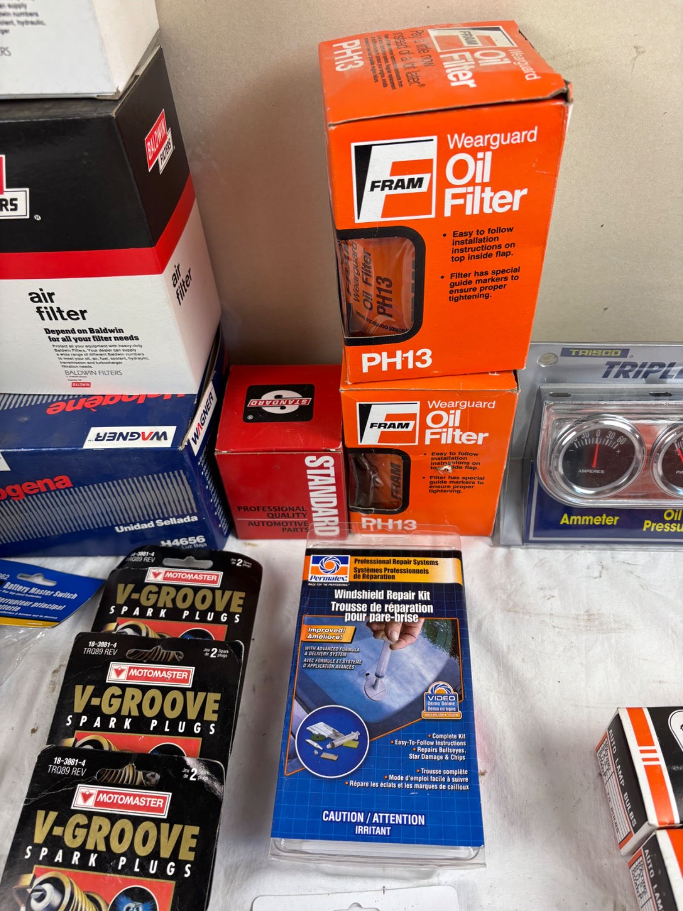 New and open boxes, includes s[park plugs, air filters, light bulbs, and more
