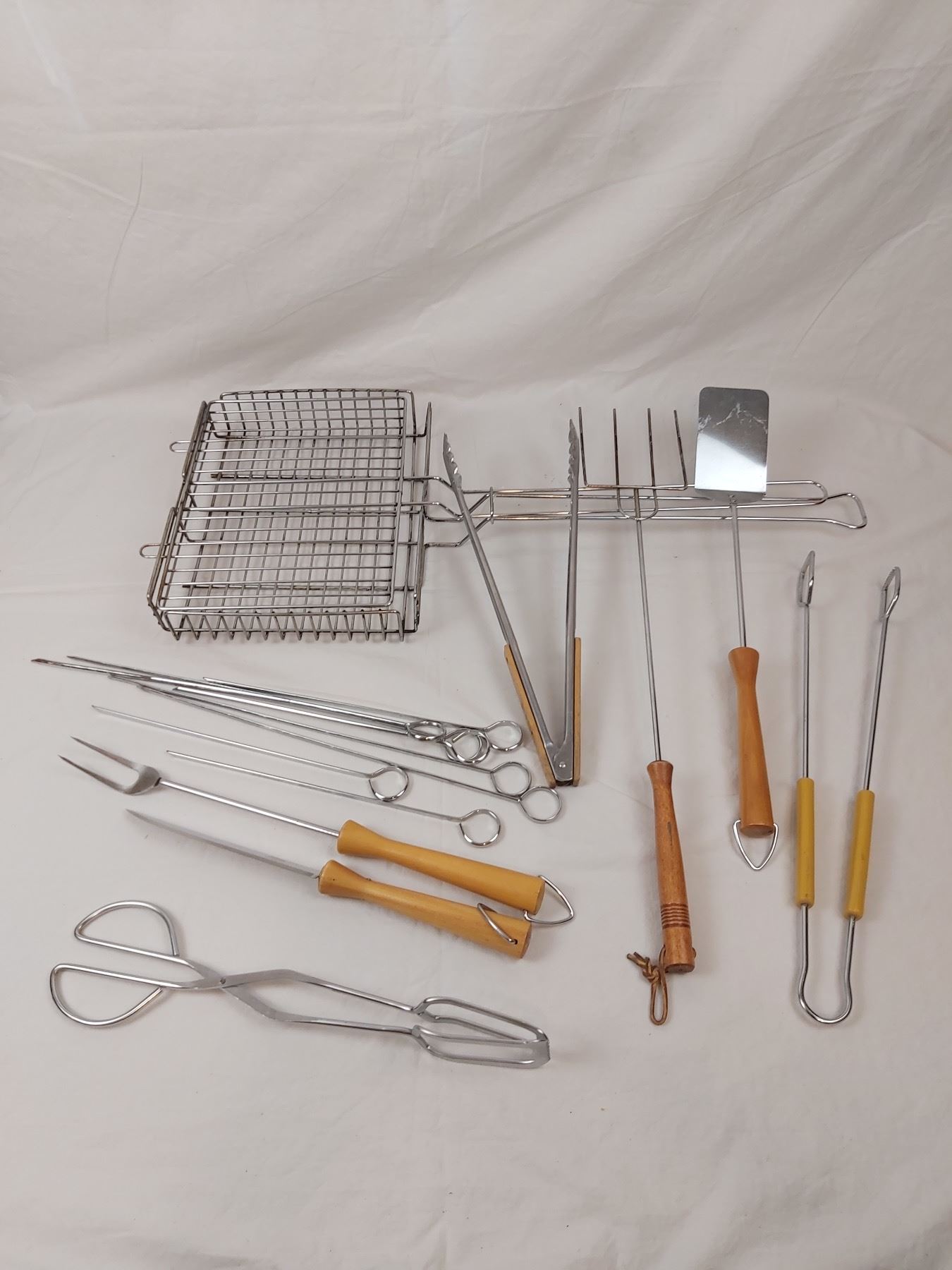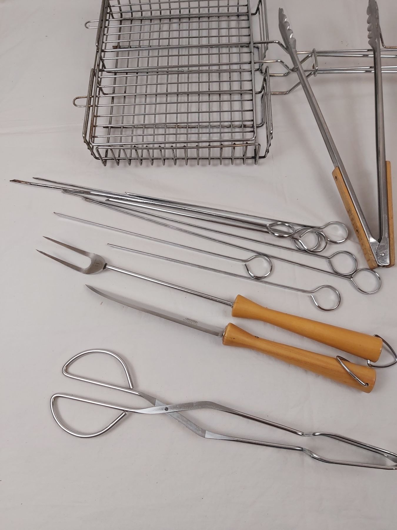 Includes, Tongs, Androck knife, Wire basket (12.5"L x 10"W)