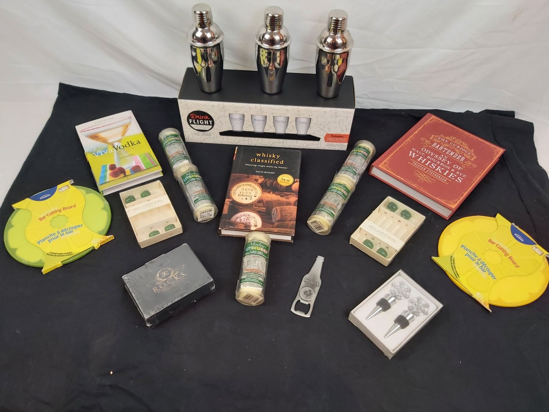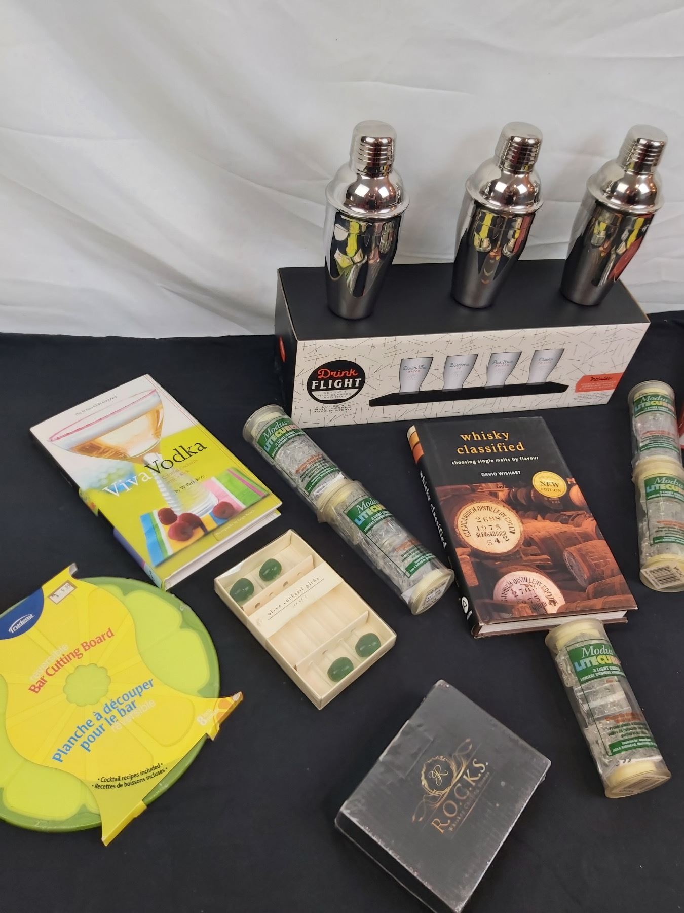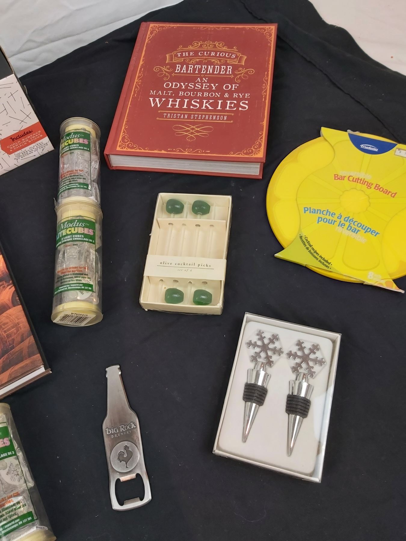 Includes, various shakers, bar books, whiskey rocks, etc.