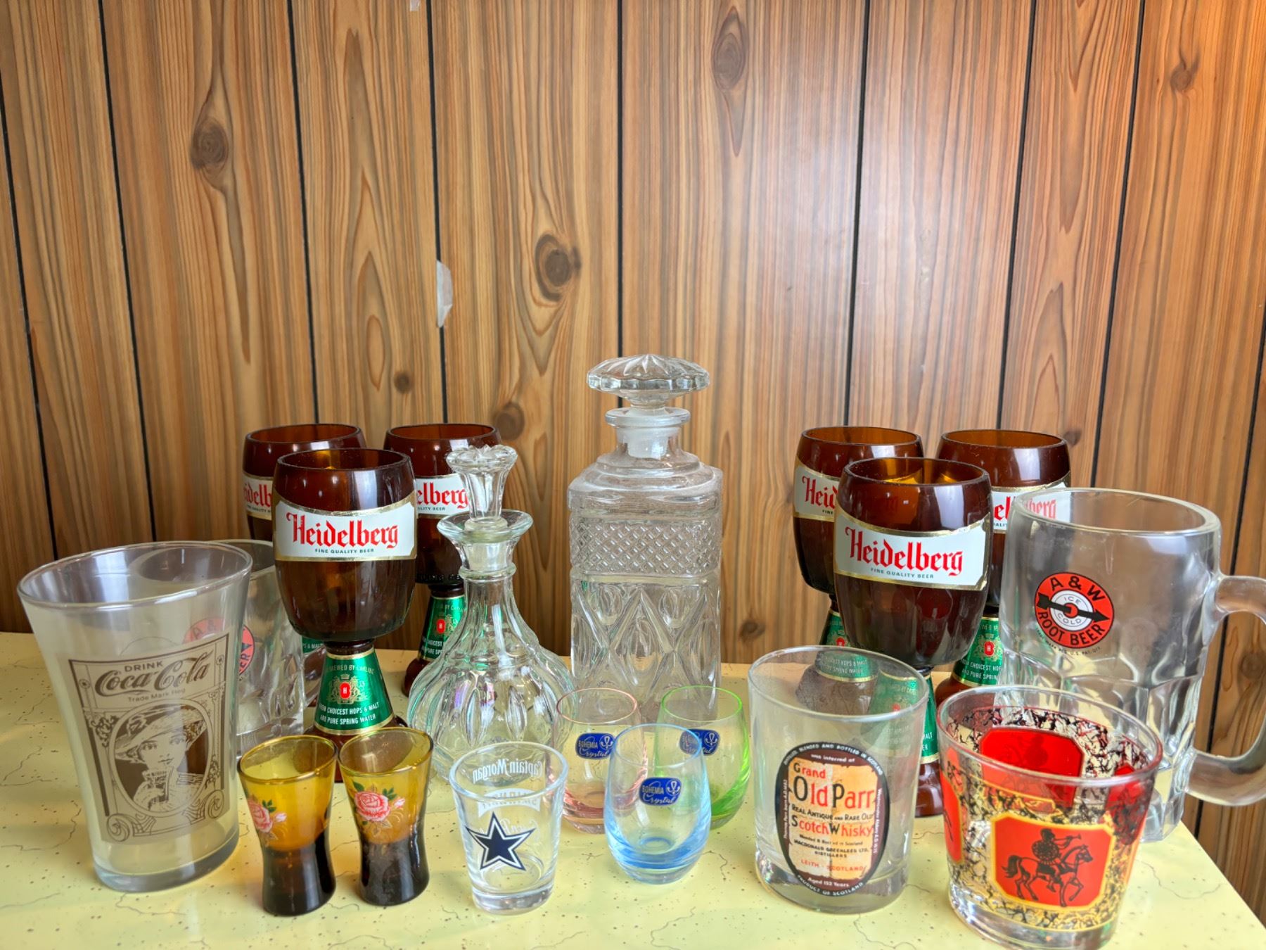 Includes, Heidelberg Glasses, Coca Cola, A&W Mug, etc.