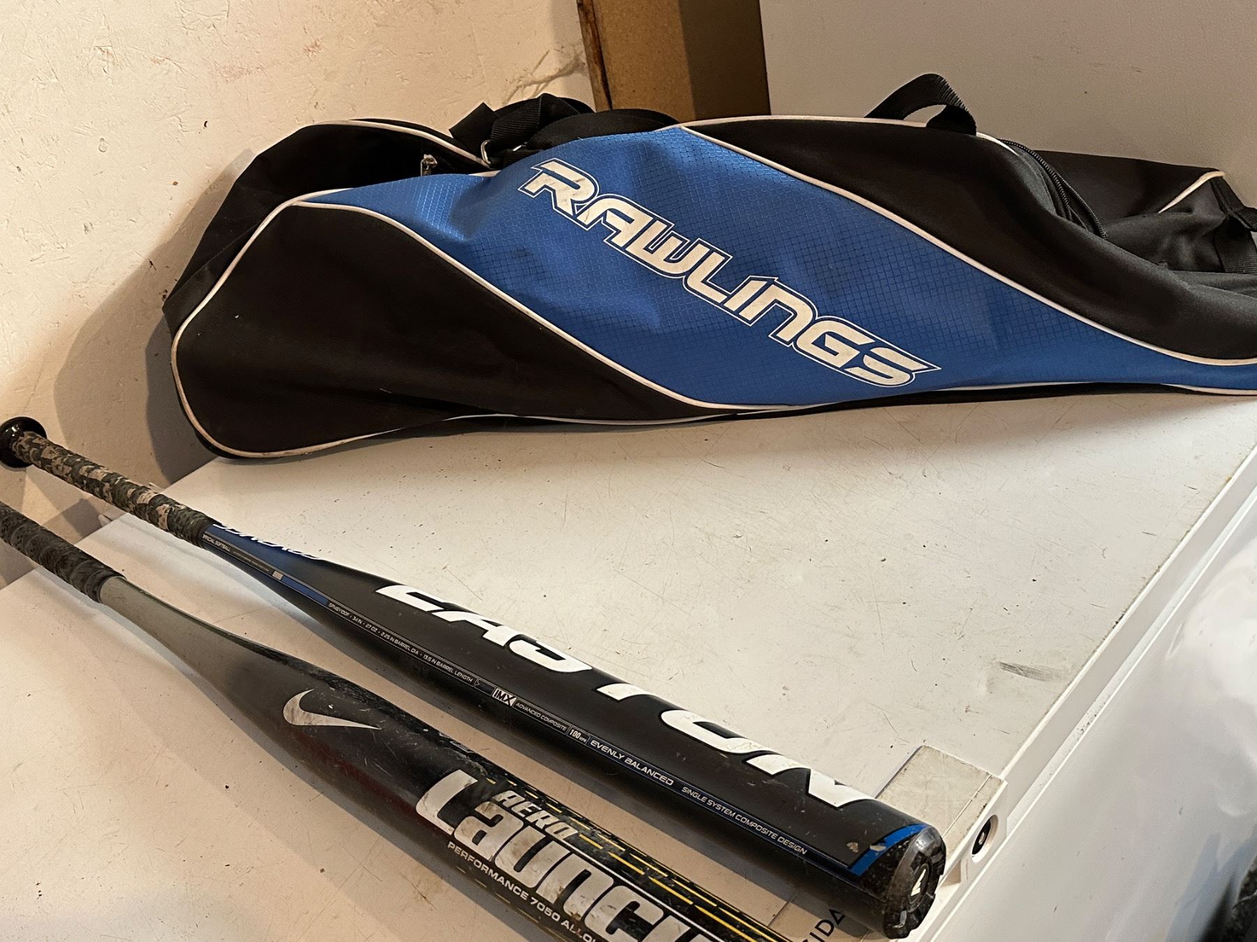 Includes Easton Synergy 27 ounce bat, Aero Launch Slopitch 34 28 bat and ball bag