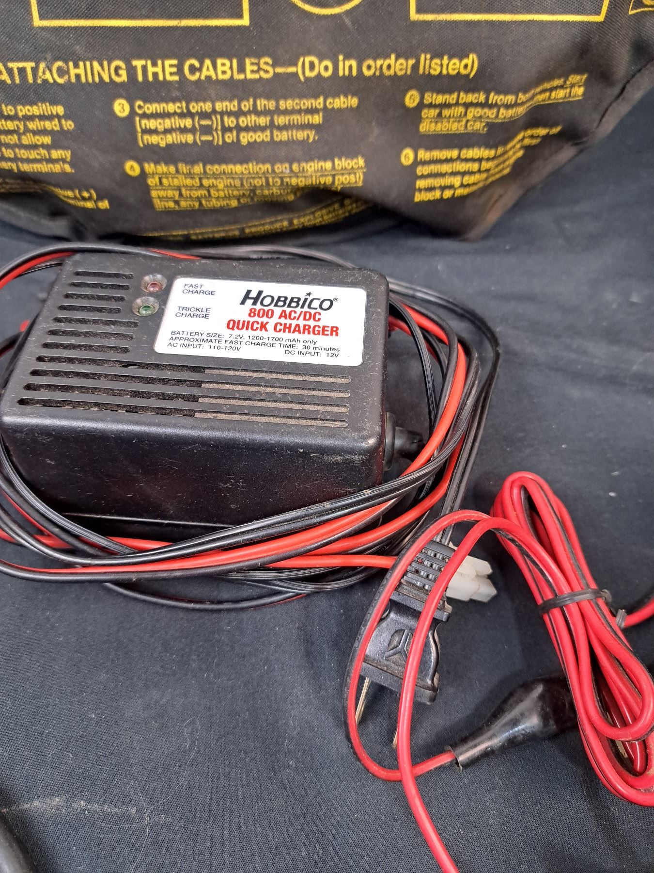 Includes, Motomaster, Eliminator, John Deere Booster Cable Bag with cables, Hobbico, Cteck, Etc. All turn on