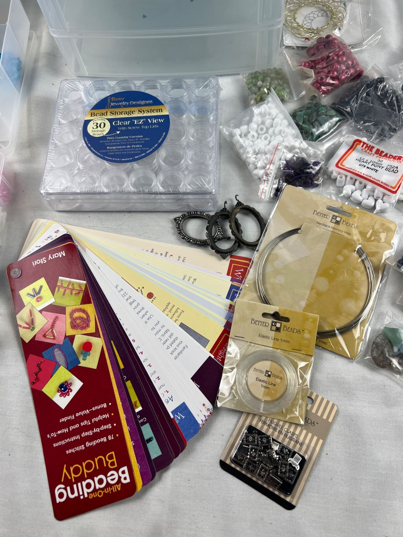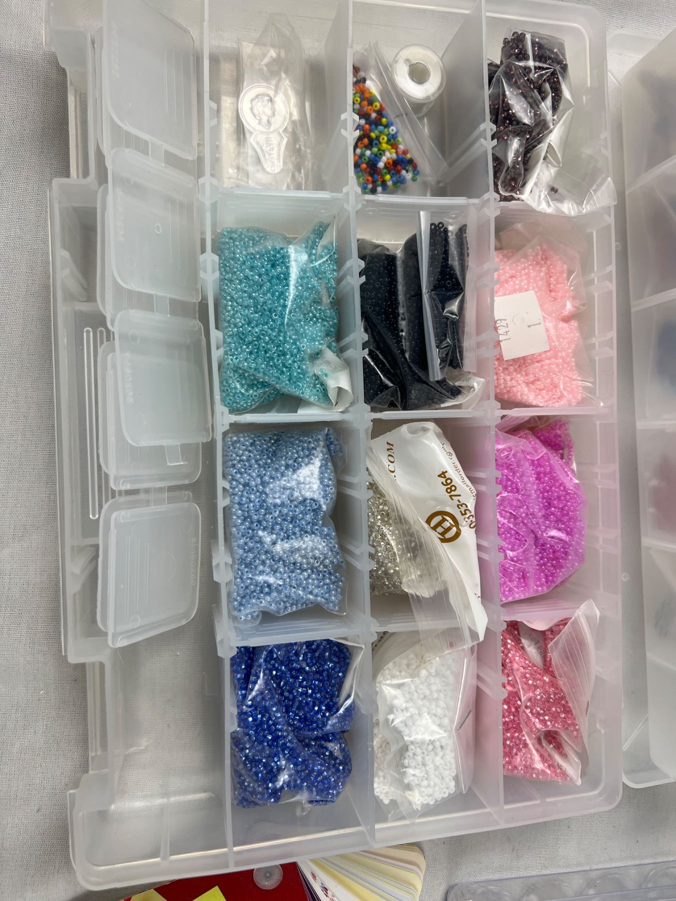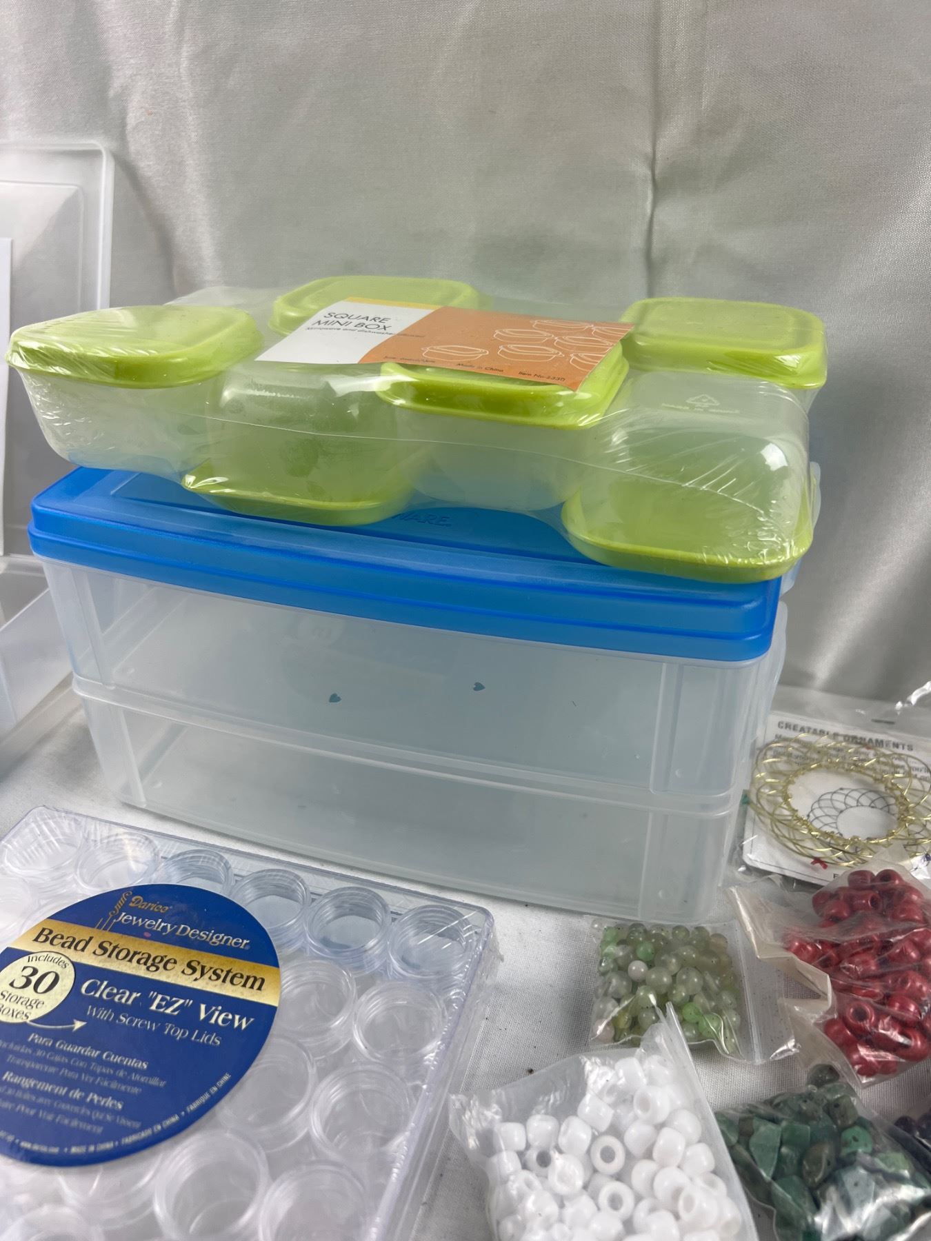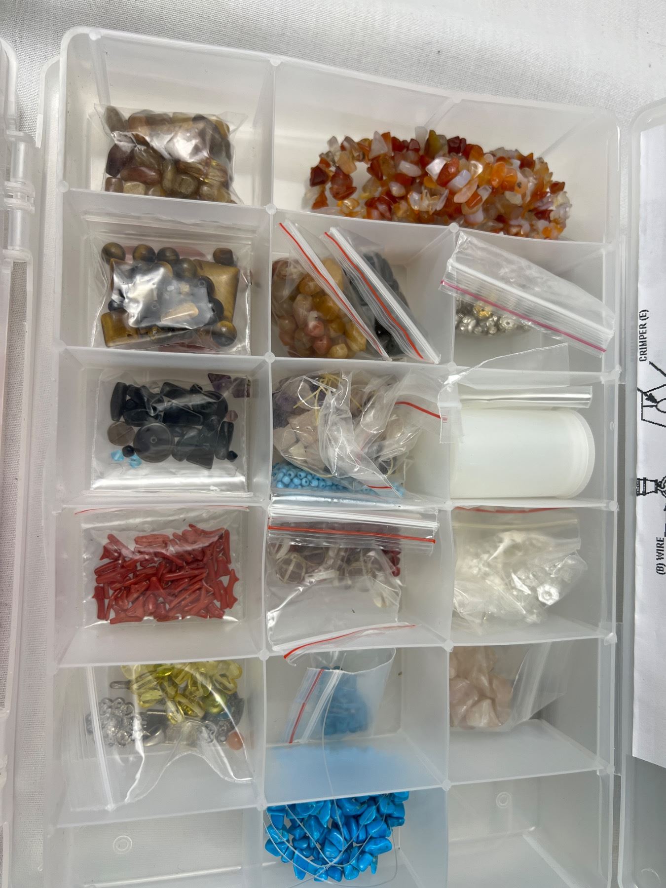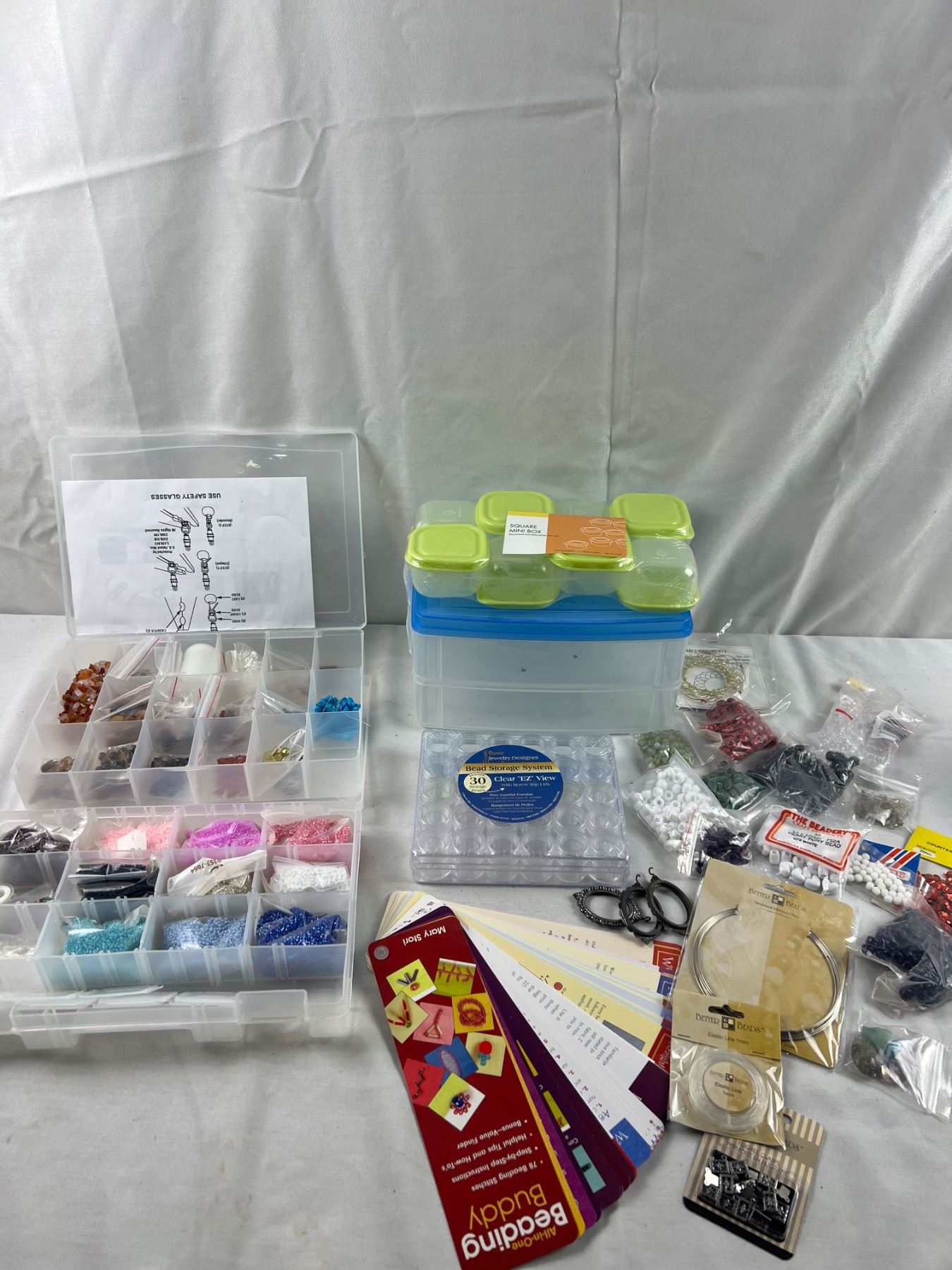 Includes an assortment of stone, glass, and plastic beads, various storage organizers, and more