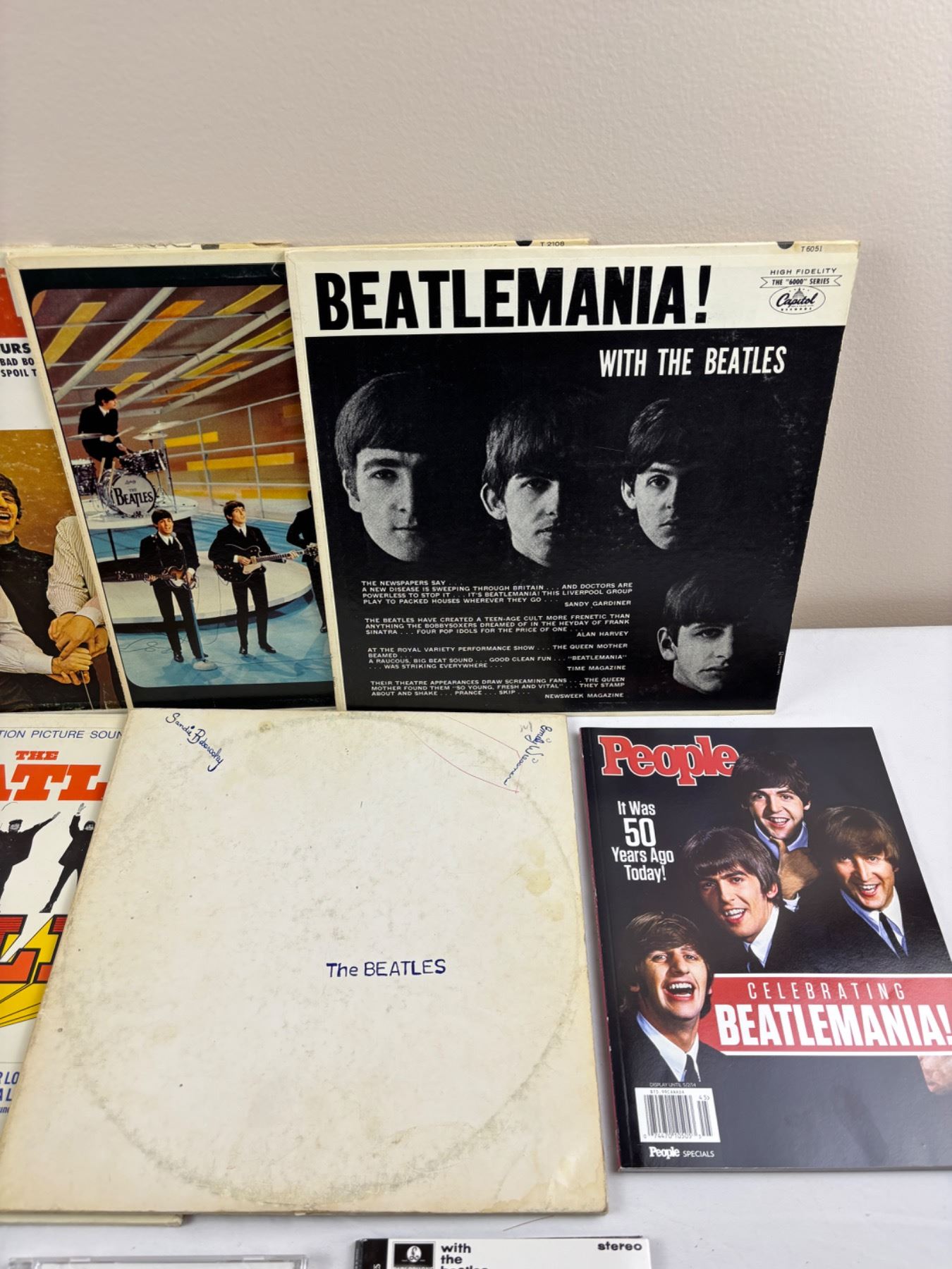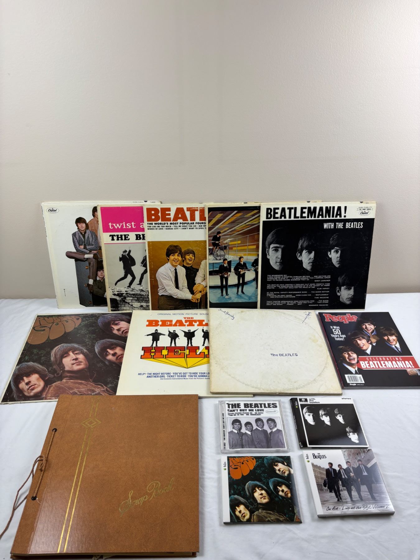 Includes a variety of records in unknown condition (writing on the white album), CD's, scrapbook album, and more