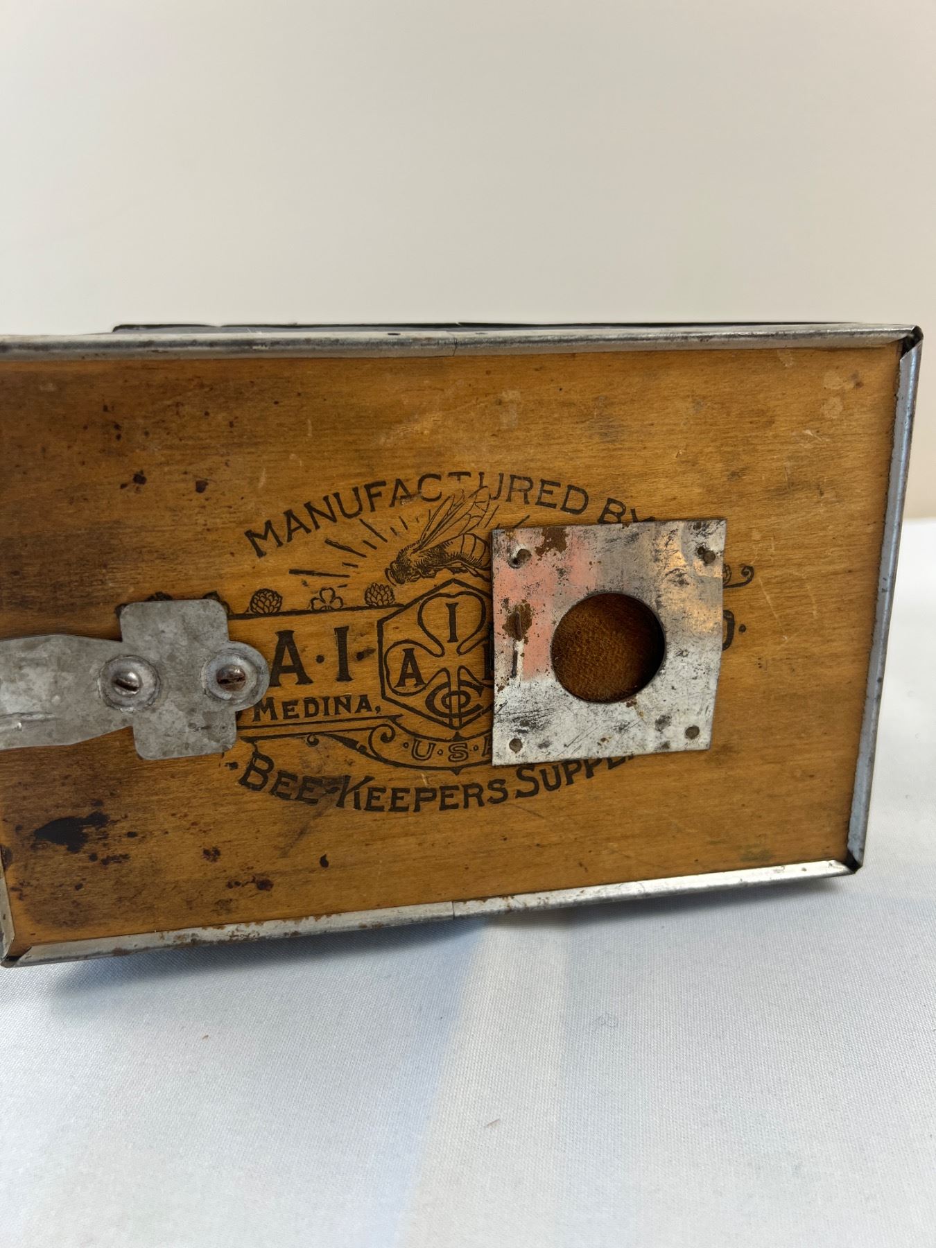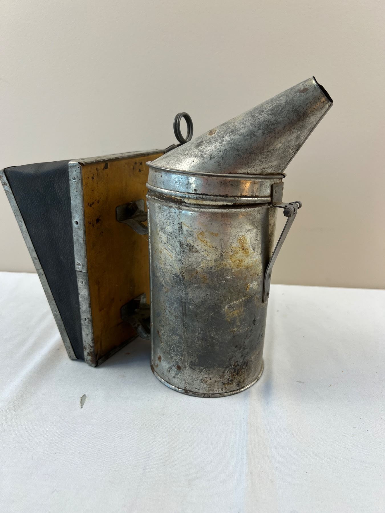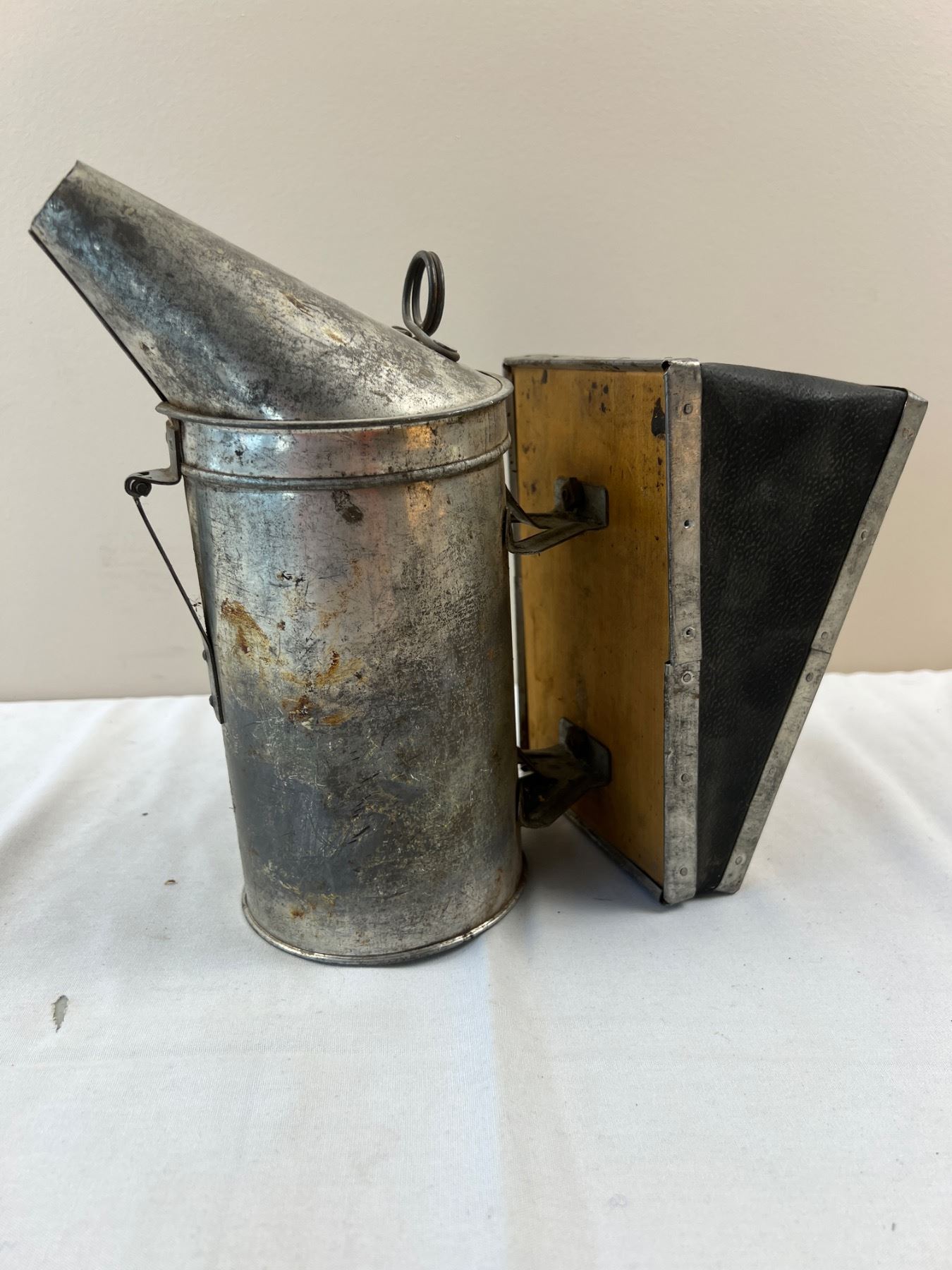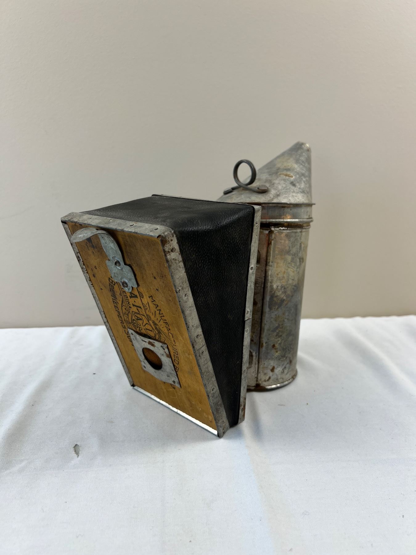 Corrosion and discolouration to metal from age. Stands 10" tall.