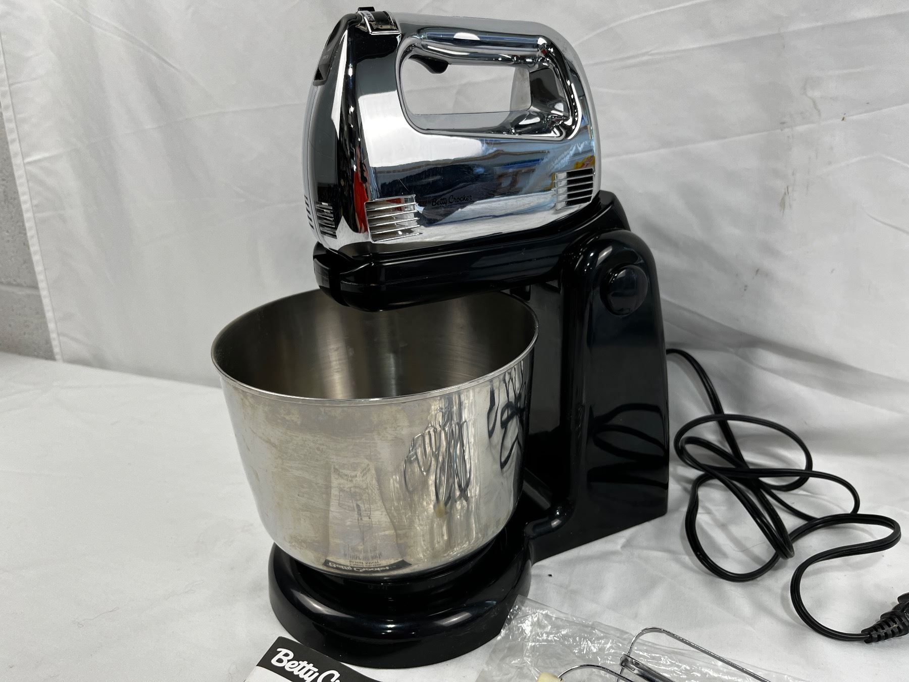Converts to hand mixer, works, good used condition, inc. 2 attatchments