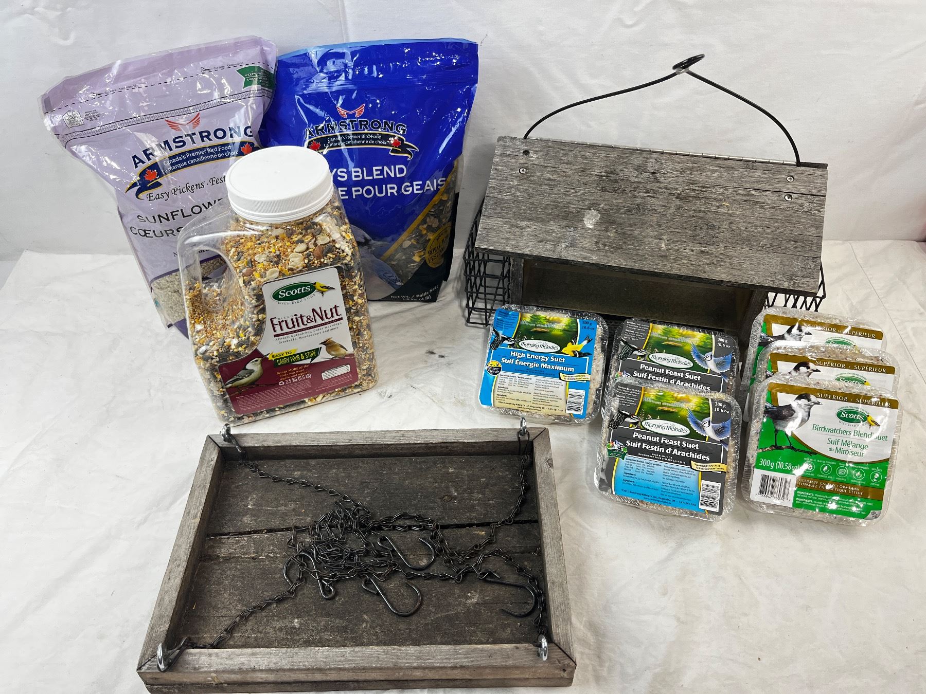 Includes bird seed, suet and 2 hanging feeders - 13" long x 9" wide and 15" long x 9" wide x 9" tall