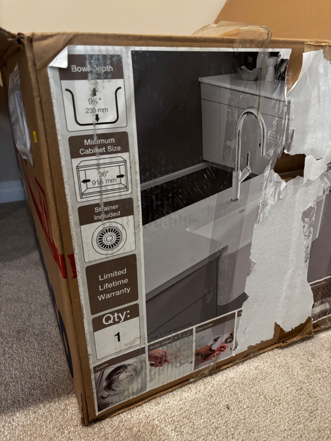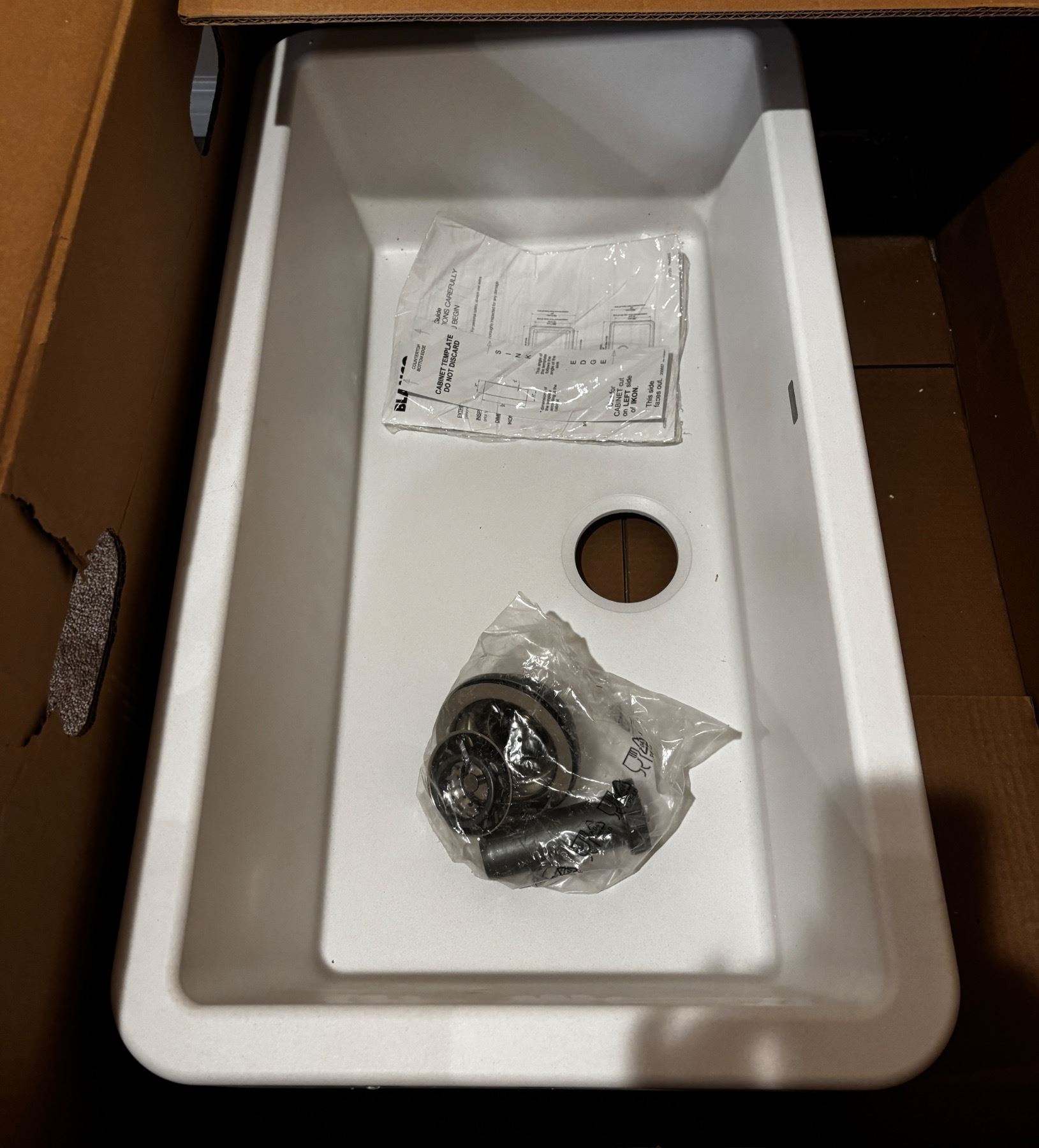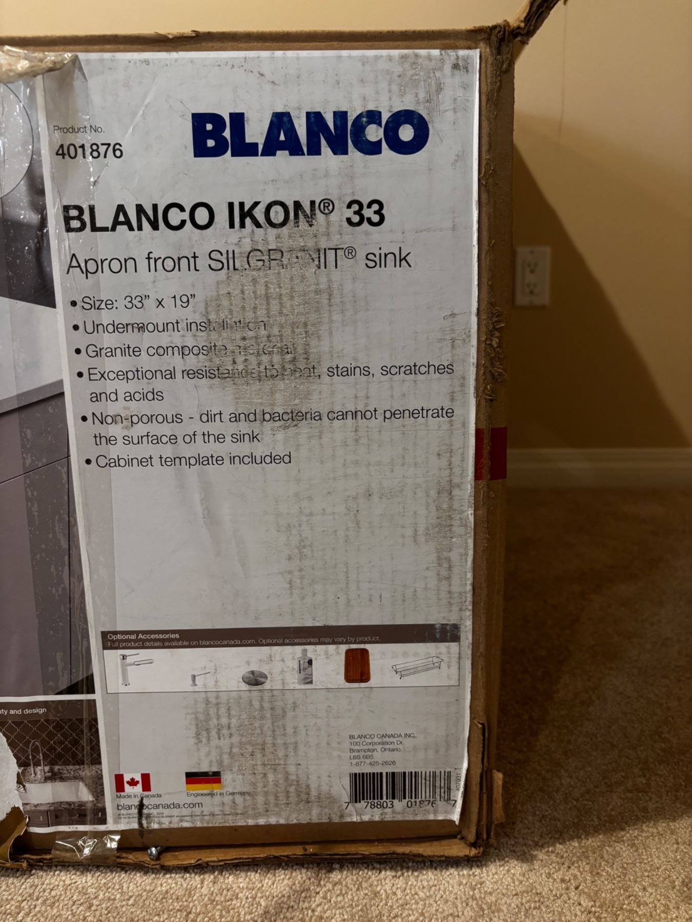 In open box, Apron front Silgranit Sink, Size 33x19", 9 1/4" Bowl Depth, Product No. 401876
