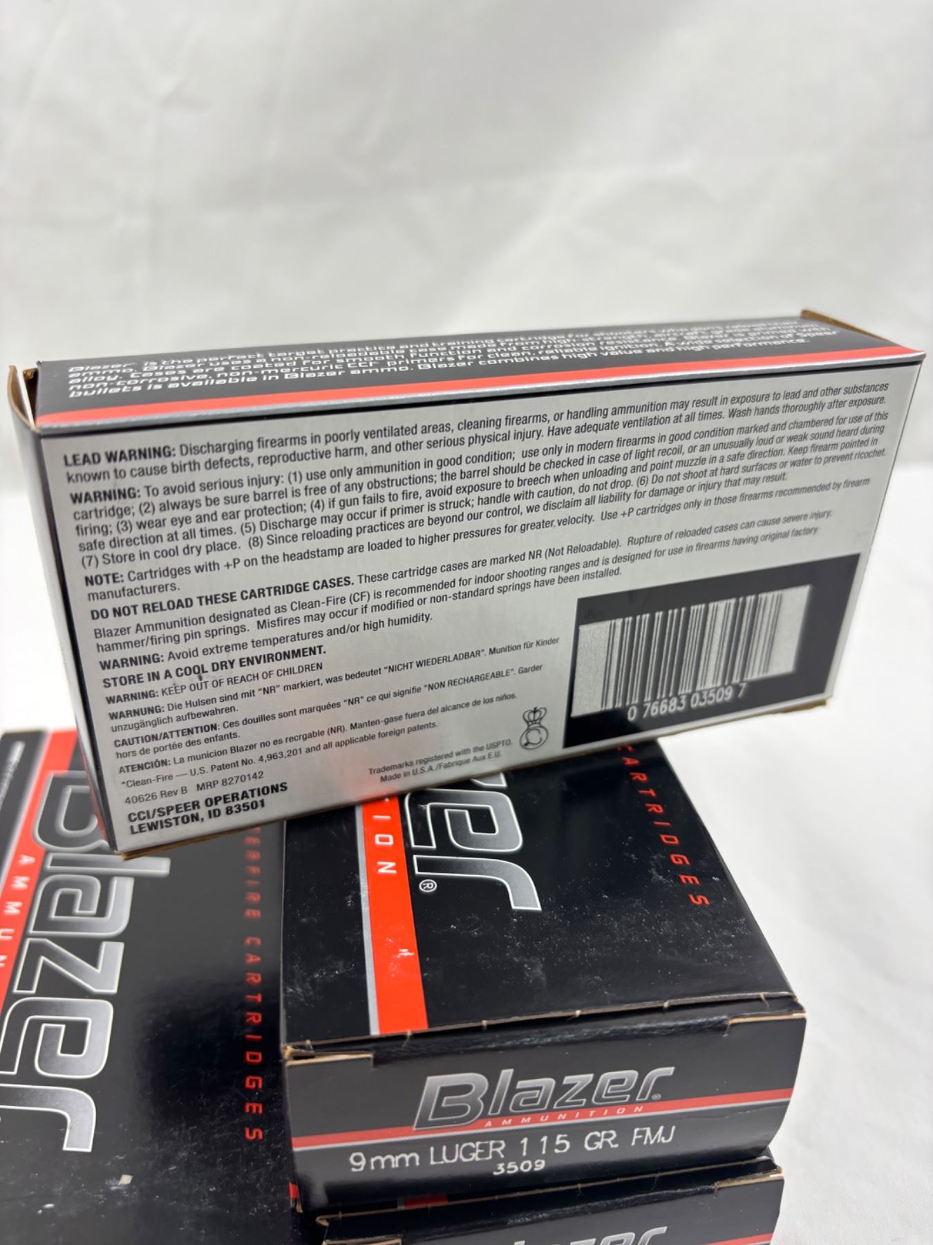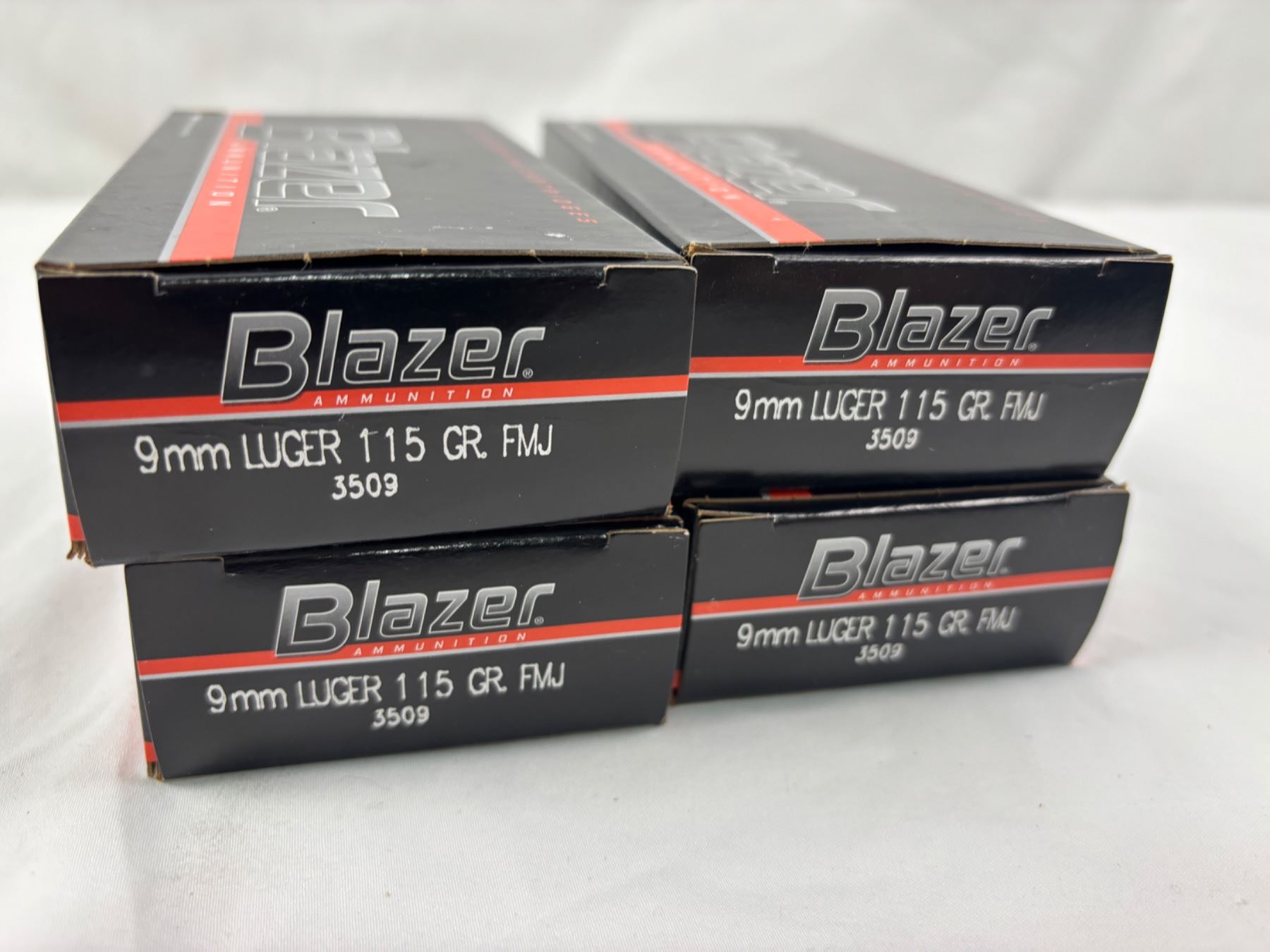 9mm Luger 115 Gr. FMJ, Includes four new boxes of 50 cartridges each