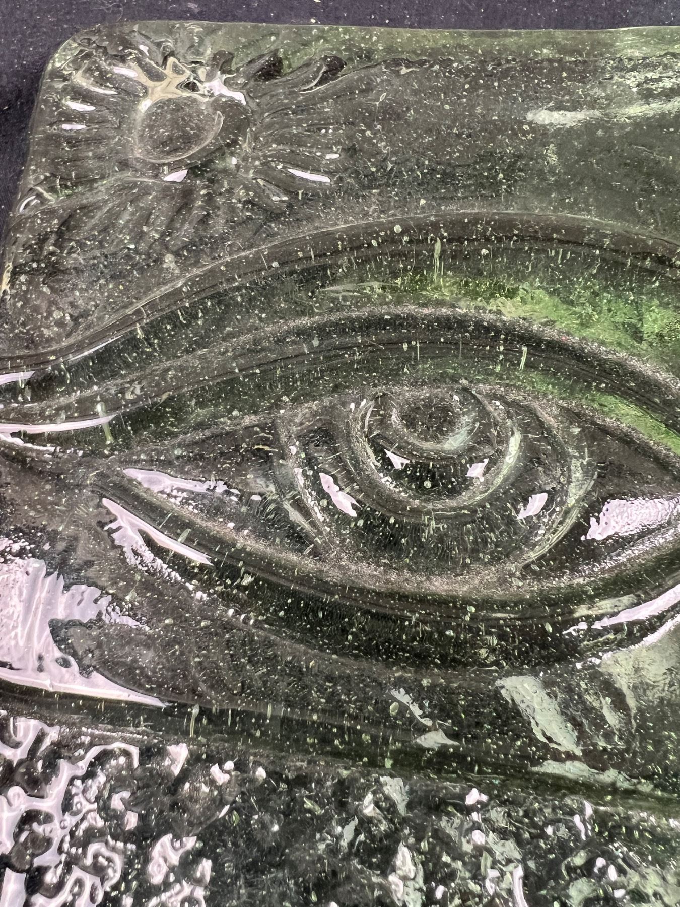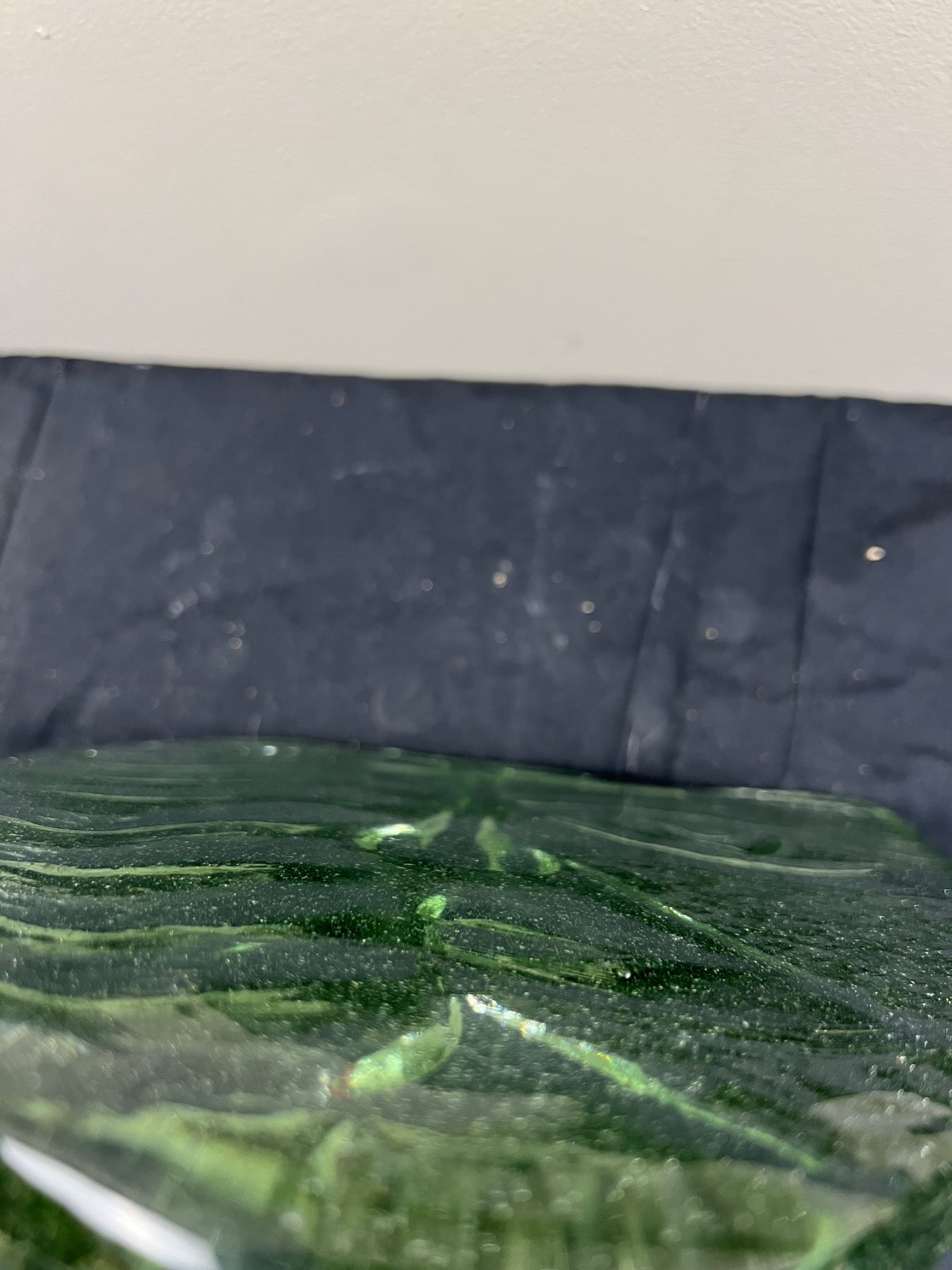 Pontil marks on rear that are hard to see in images. Measures 10" by 11"