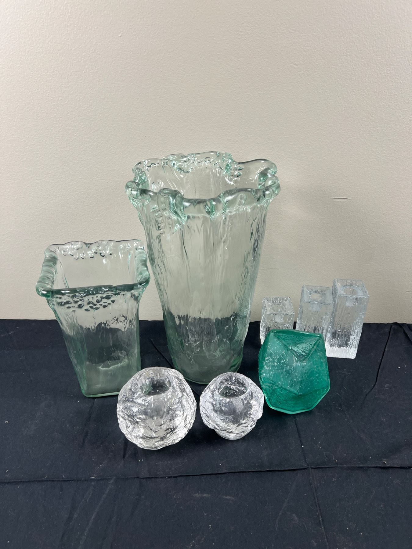 Largest vase is 14" tall and approximately 8" in diameter