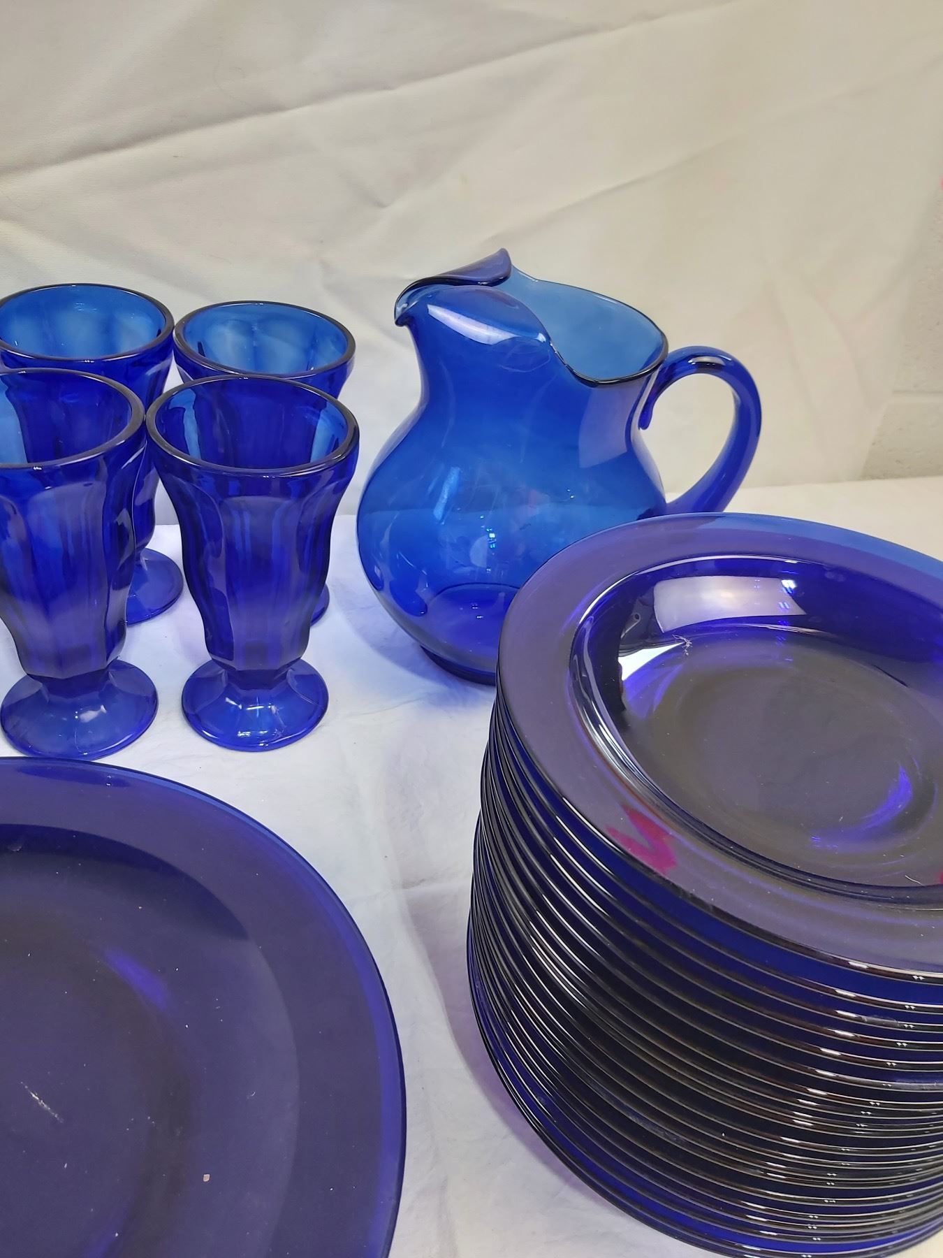 Includes, 4 Cups, pitcher (9"H), plates, bowls, etc.