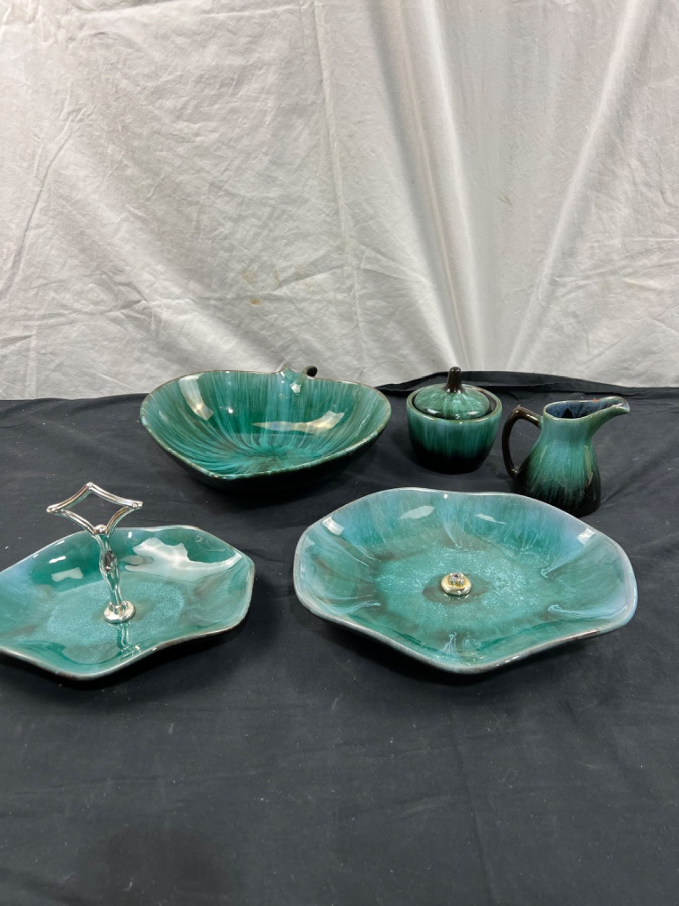 Includes Sugar & Creamer Pots, Bowl, & Tiered Serving Plate ( 1 Metal Support Missing)