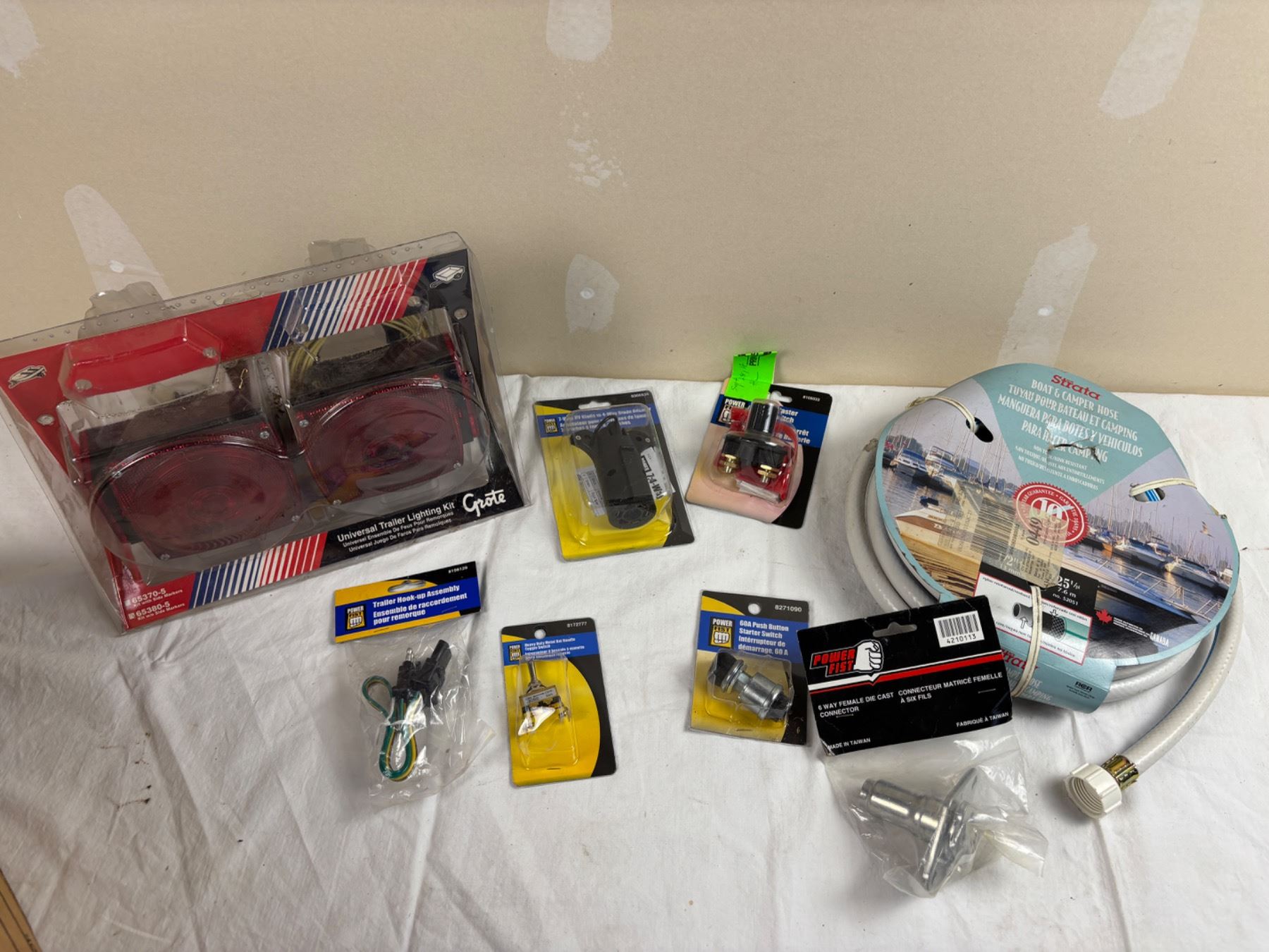 Includes, Universal Trailer Lighting Kit, Boat & Camper Hose, and more, new in packaging