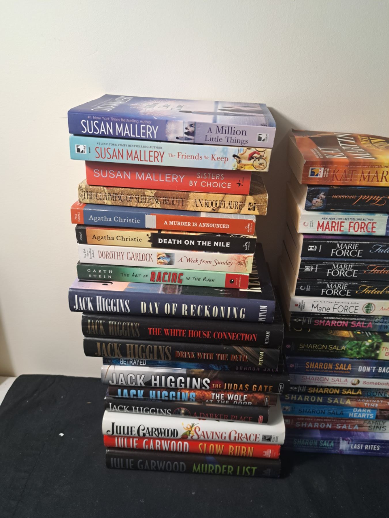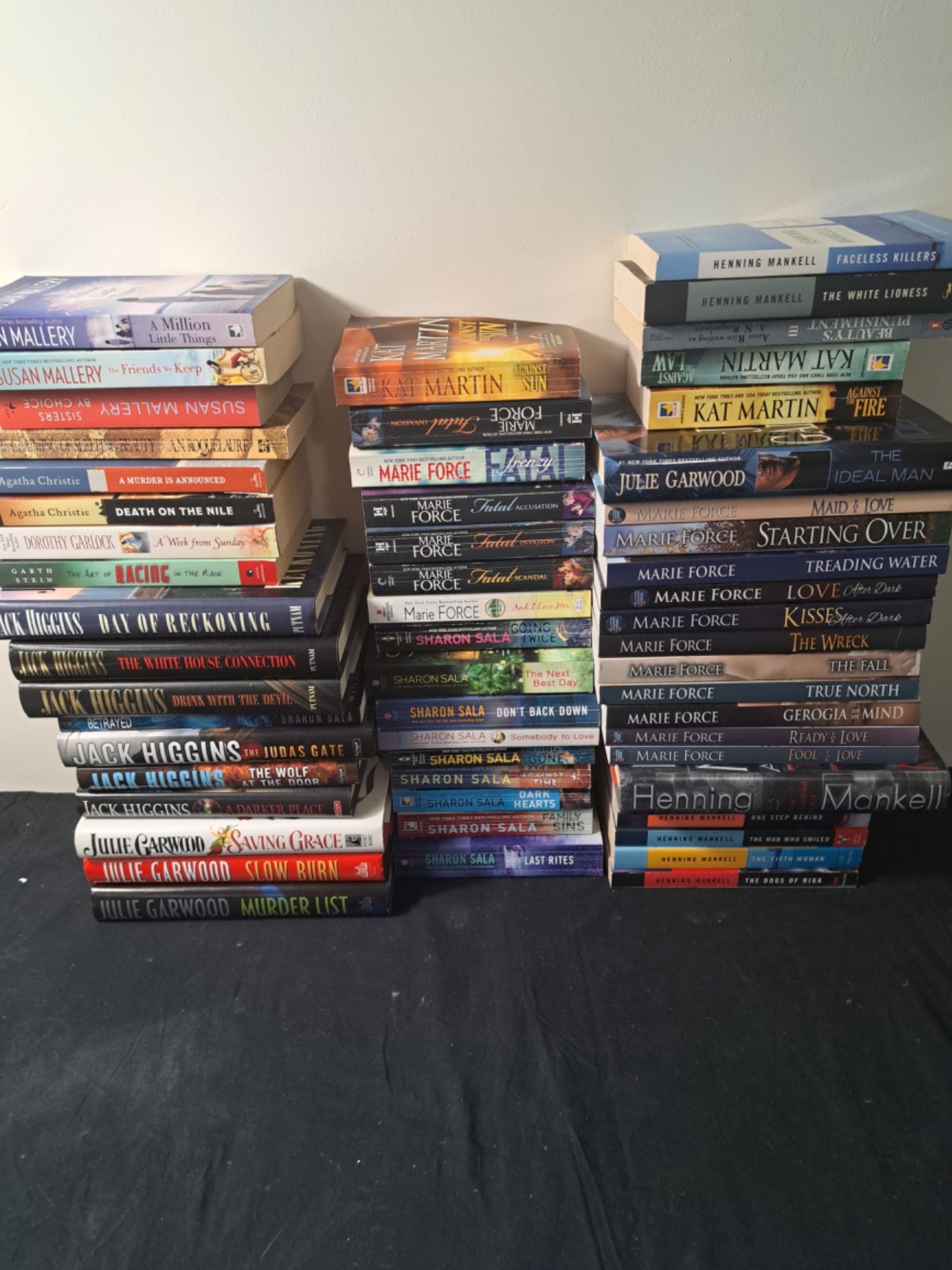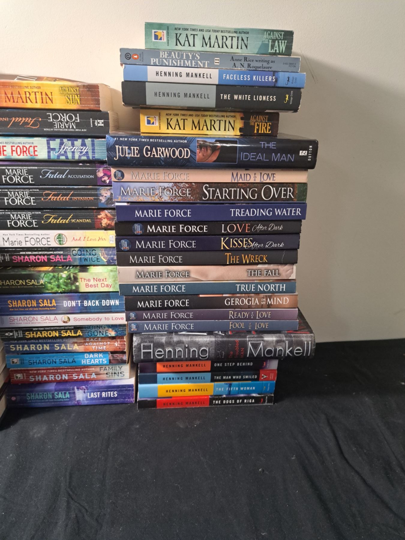 Authors include Marie force, Henning Mankell, Sharon Sala, Julie hardwood and more