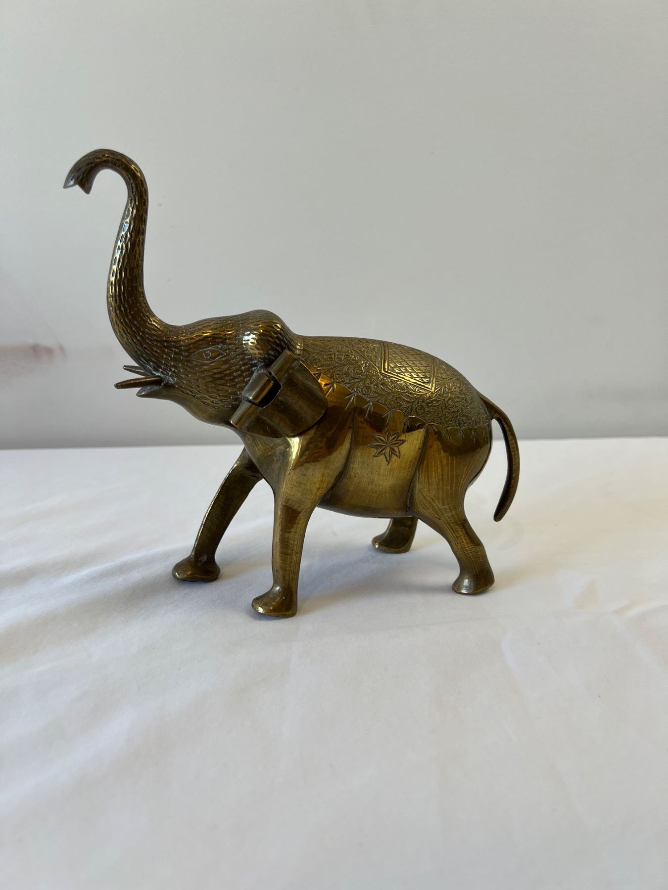 Has ears that move. 7" tall and 9.5" long. Some marks on surface.