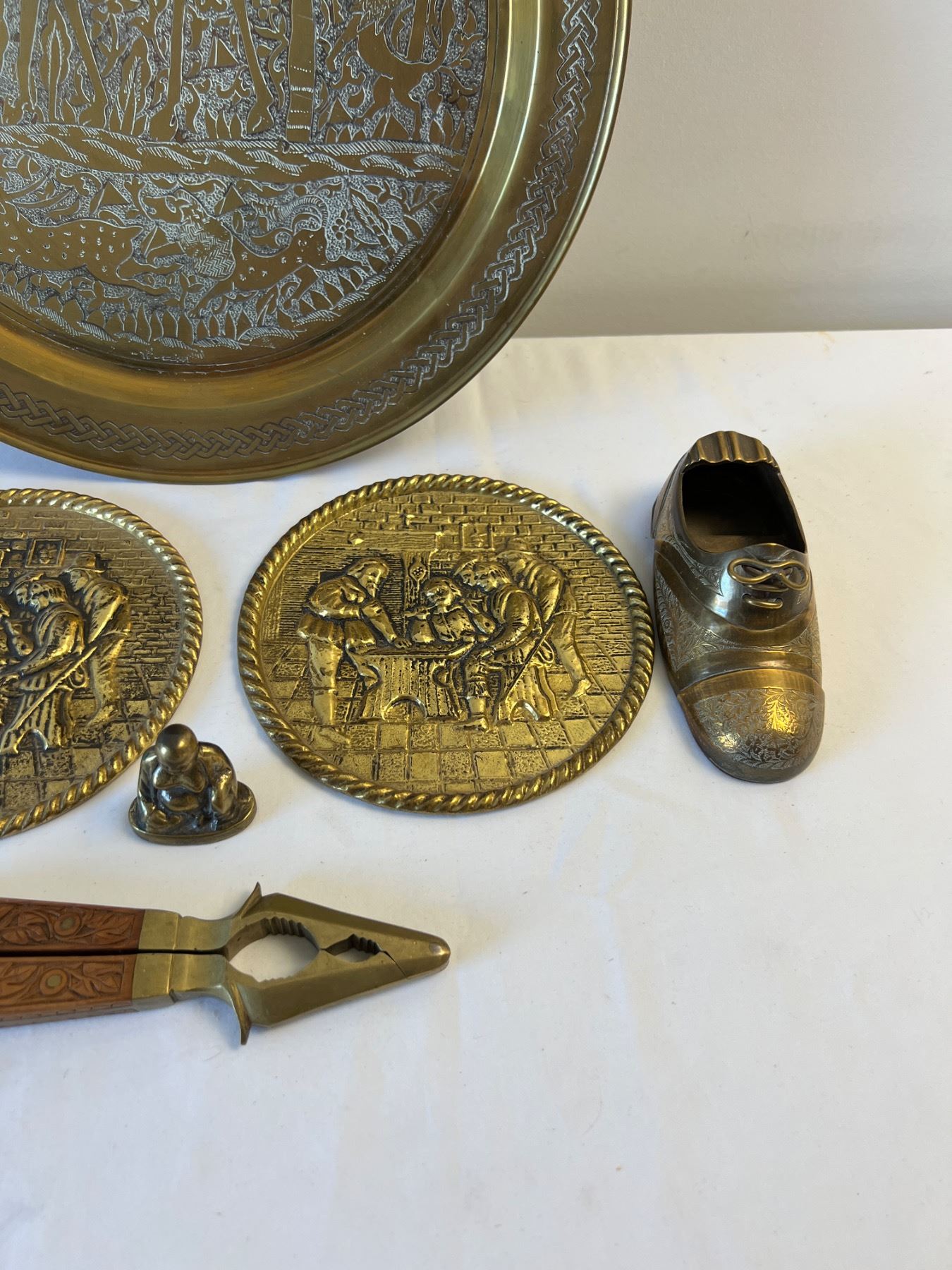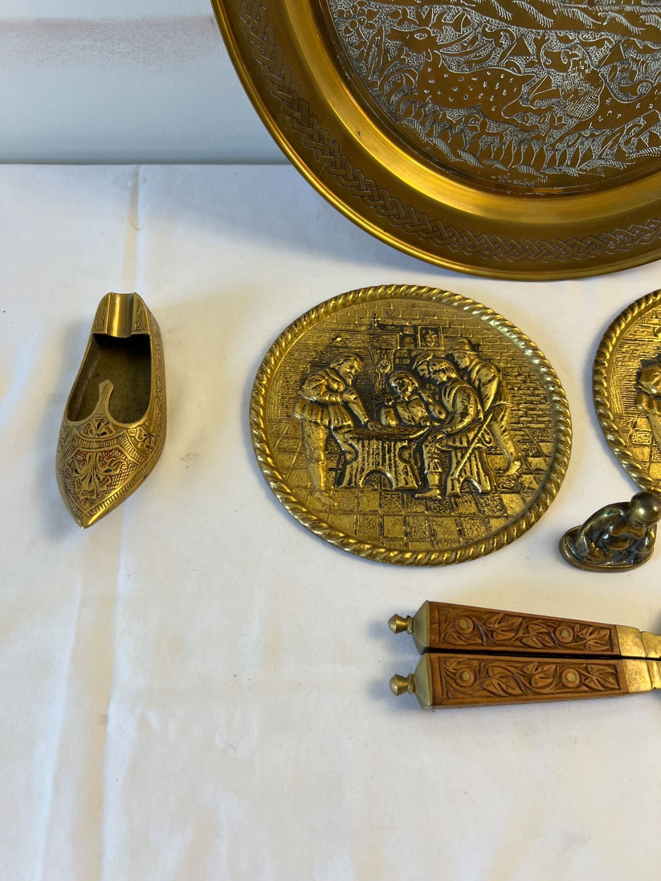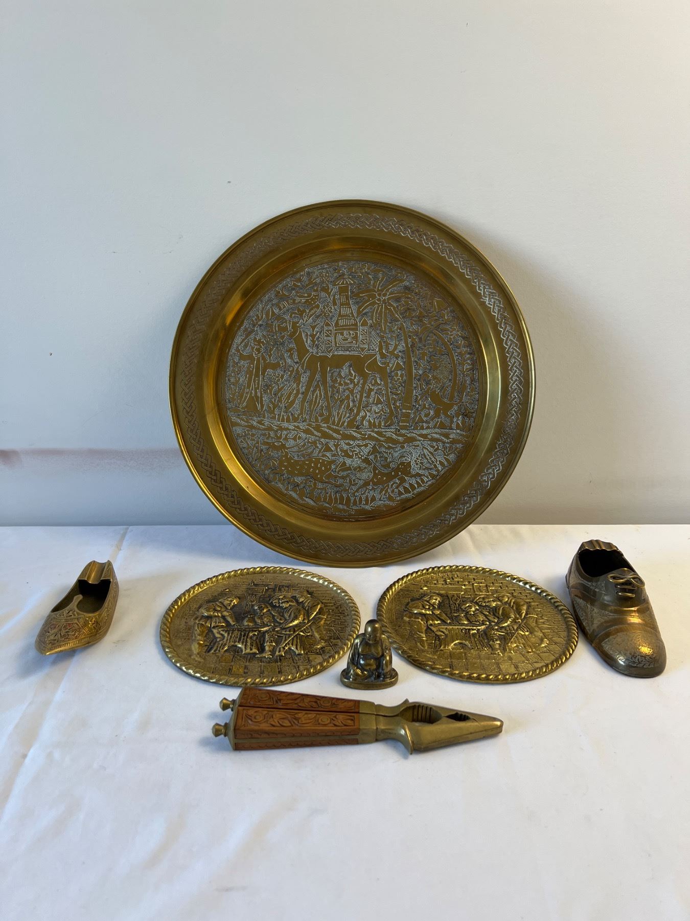 Large plate is 14" in diameter. Some corrosion marks to pieces.