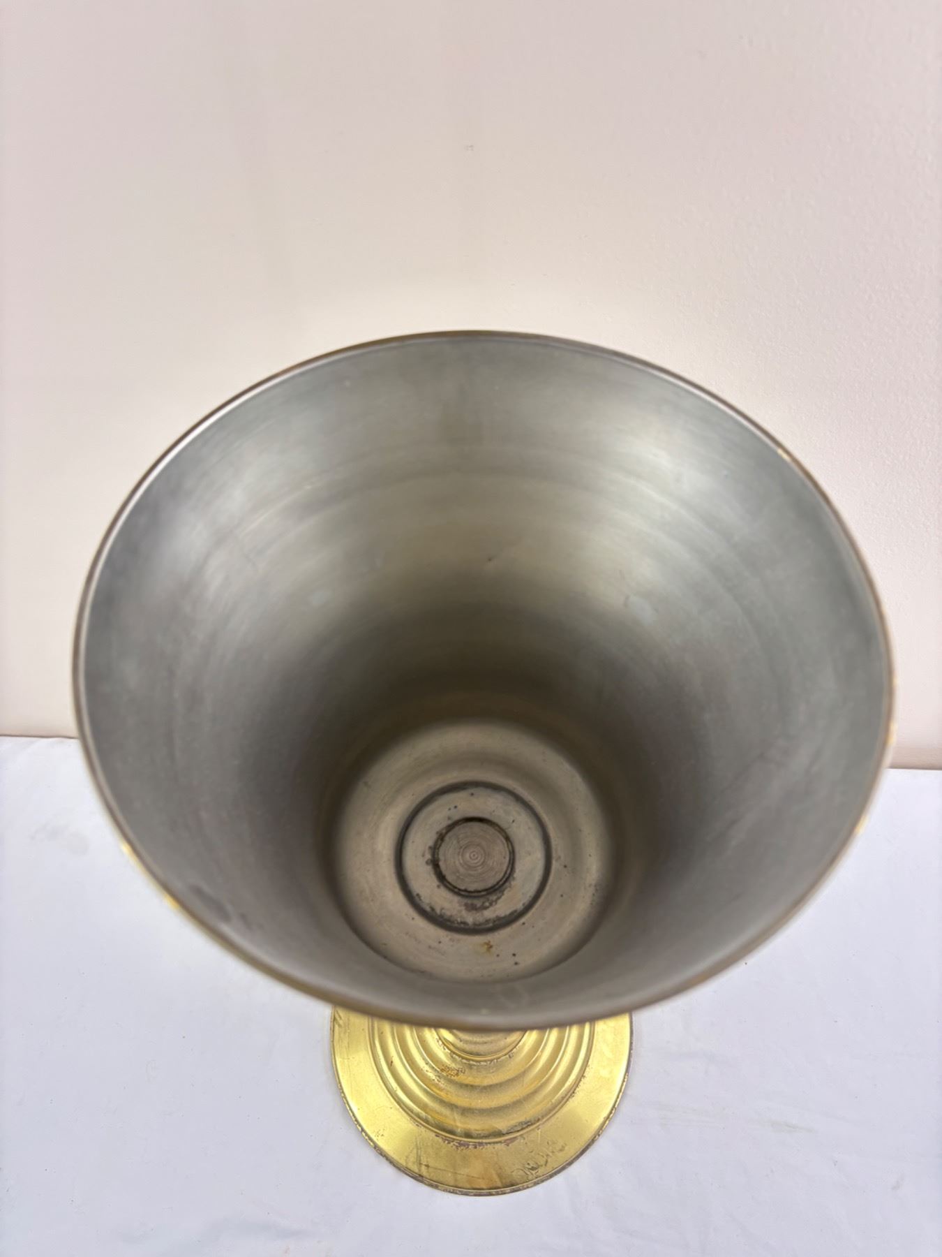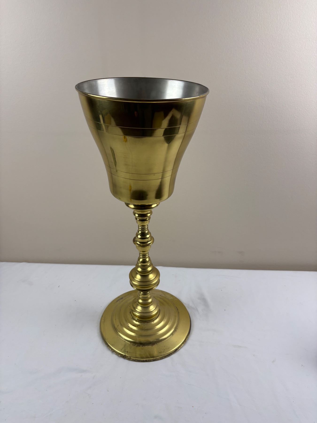 22"H x 8.5"diameter, some tarnishing and wear on the base, Made in Britain U.K